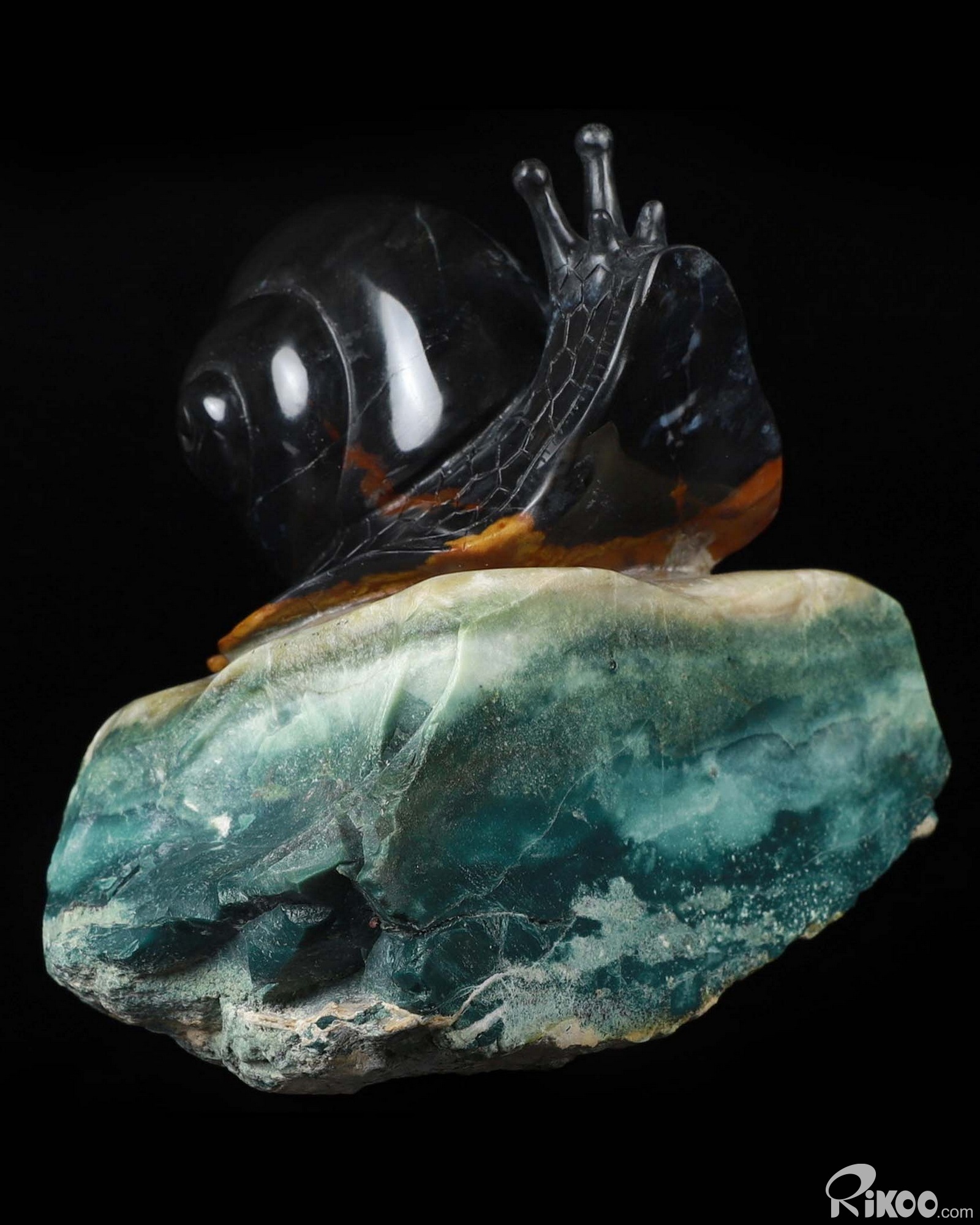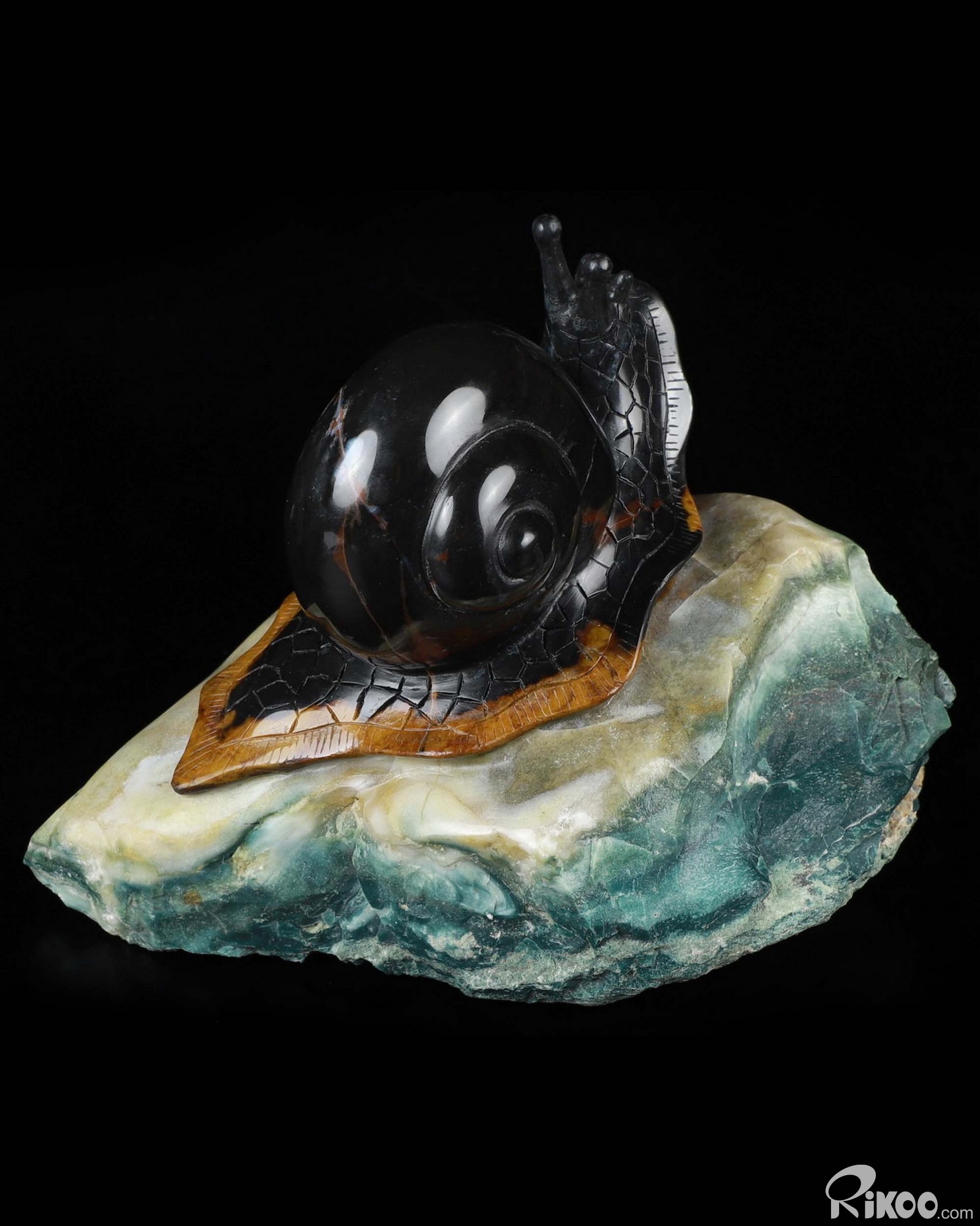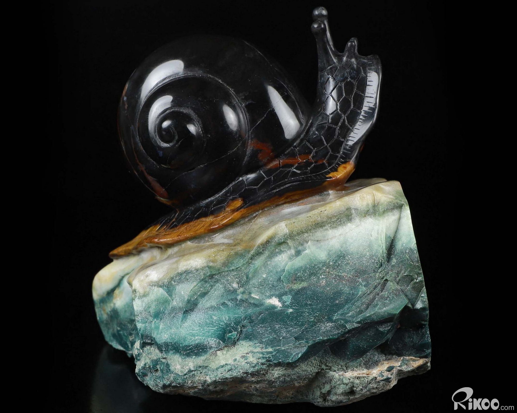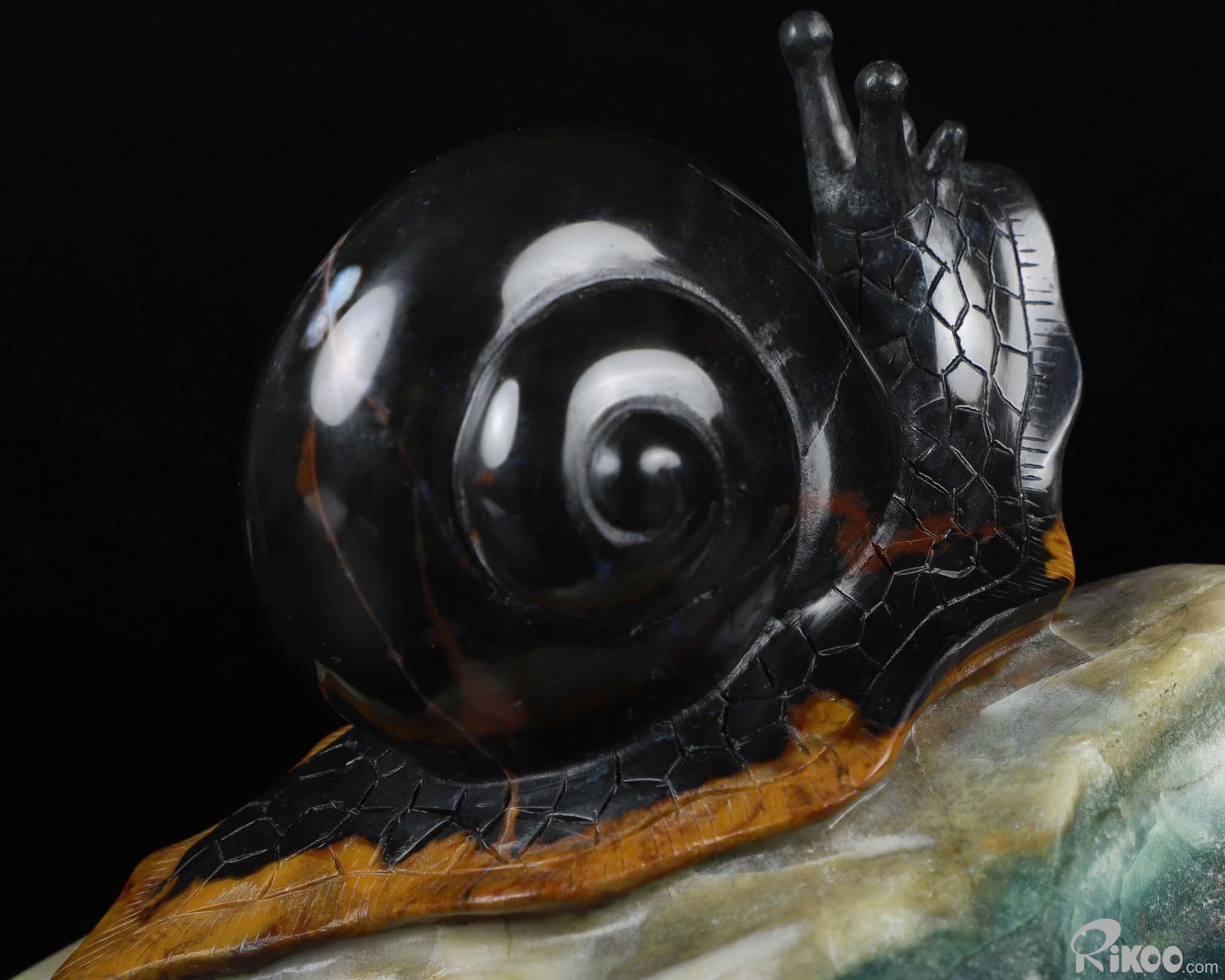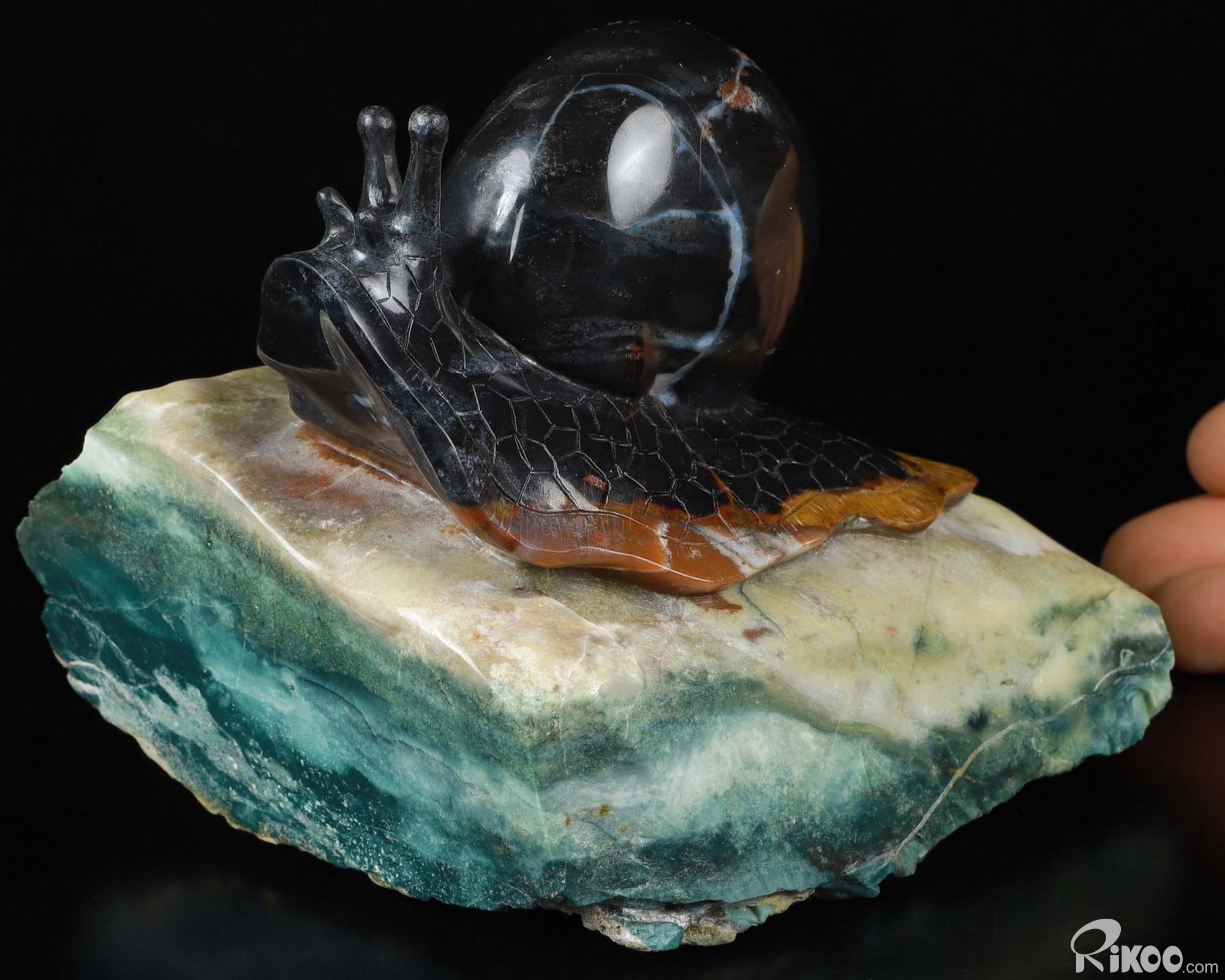 5.7" Black Zebra Agate Carved Crystal Snail Sculpture, Crystal Healing