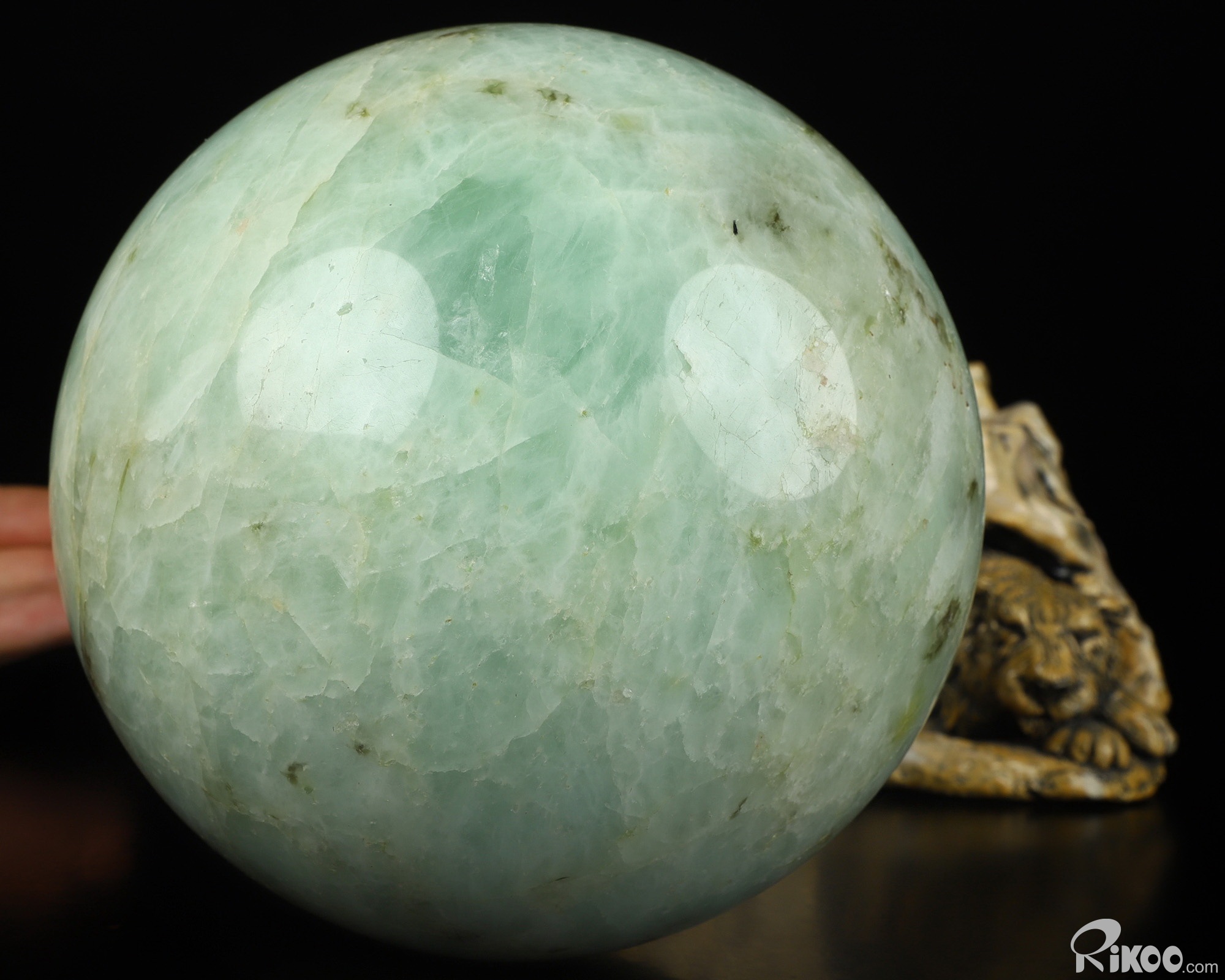 You are looking at a Fluorite Ball. The Ball is 5.7 inches long from front to back.The ball stand is not included.