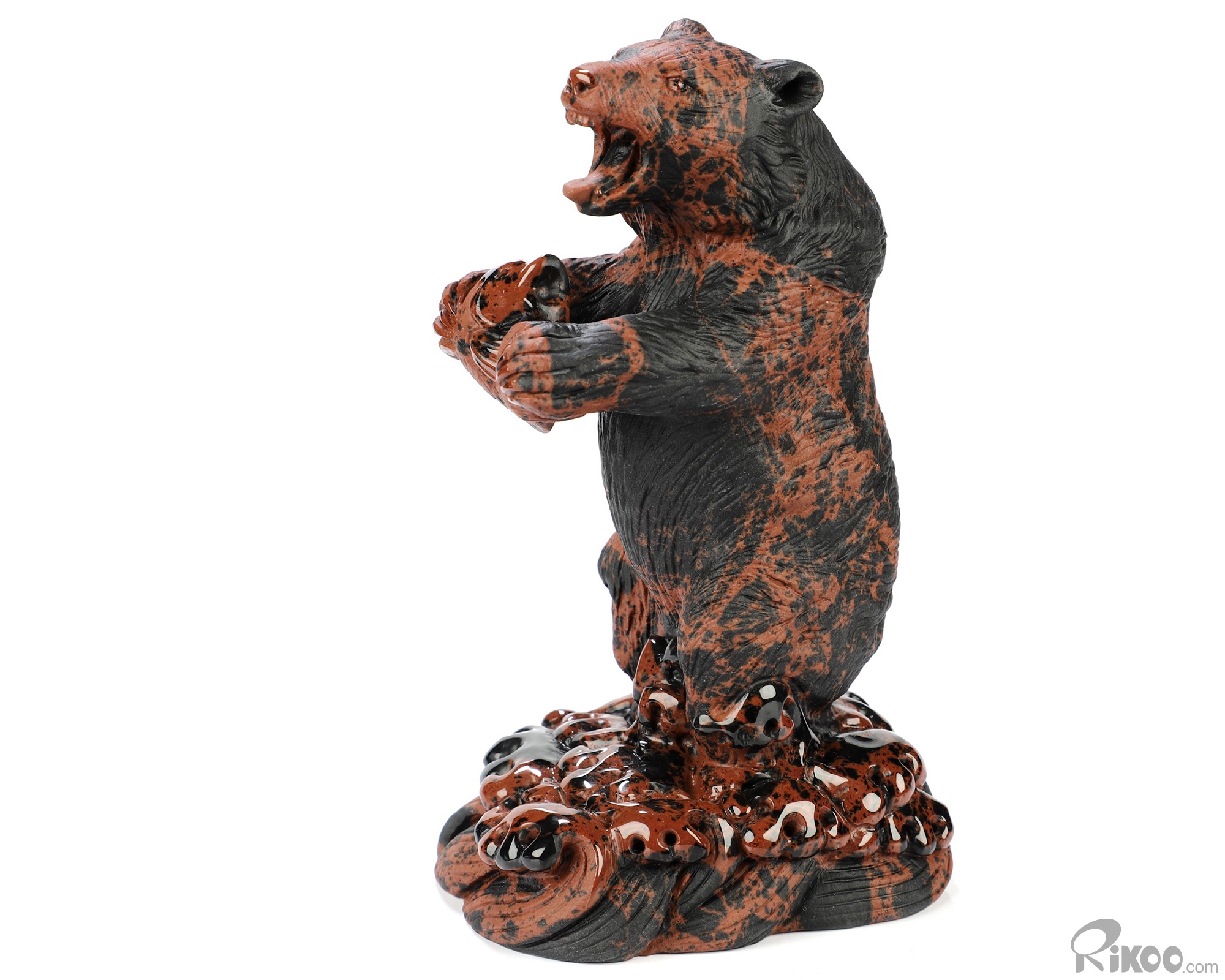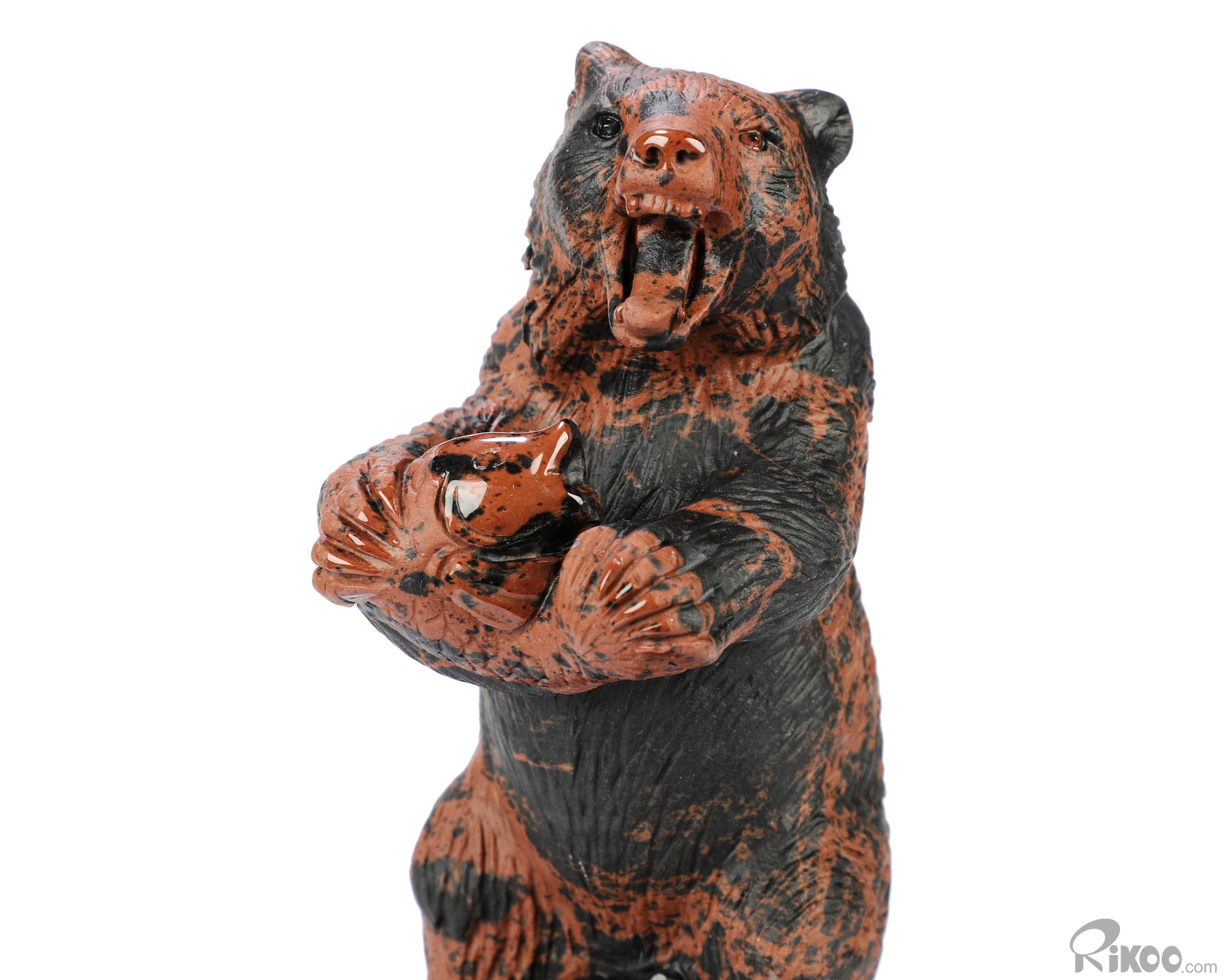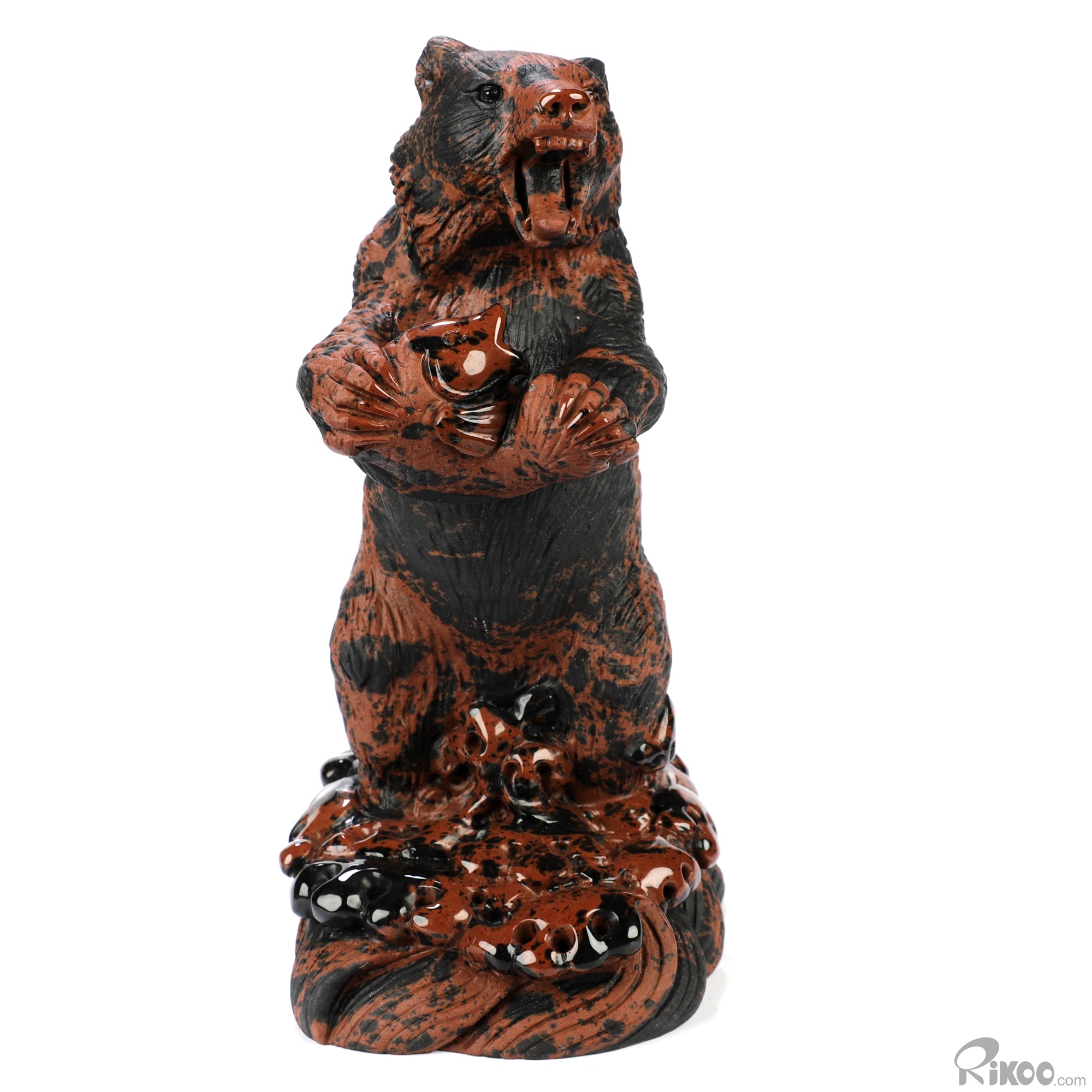 5.7" Mahogany Obsidian Hand Carved Crystal Bear Sculpture, Crystal Healing