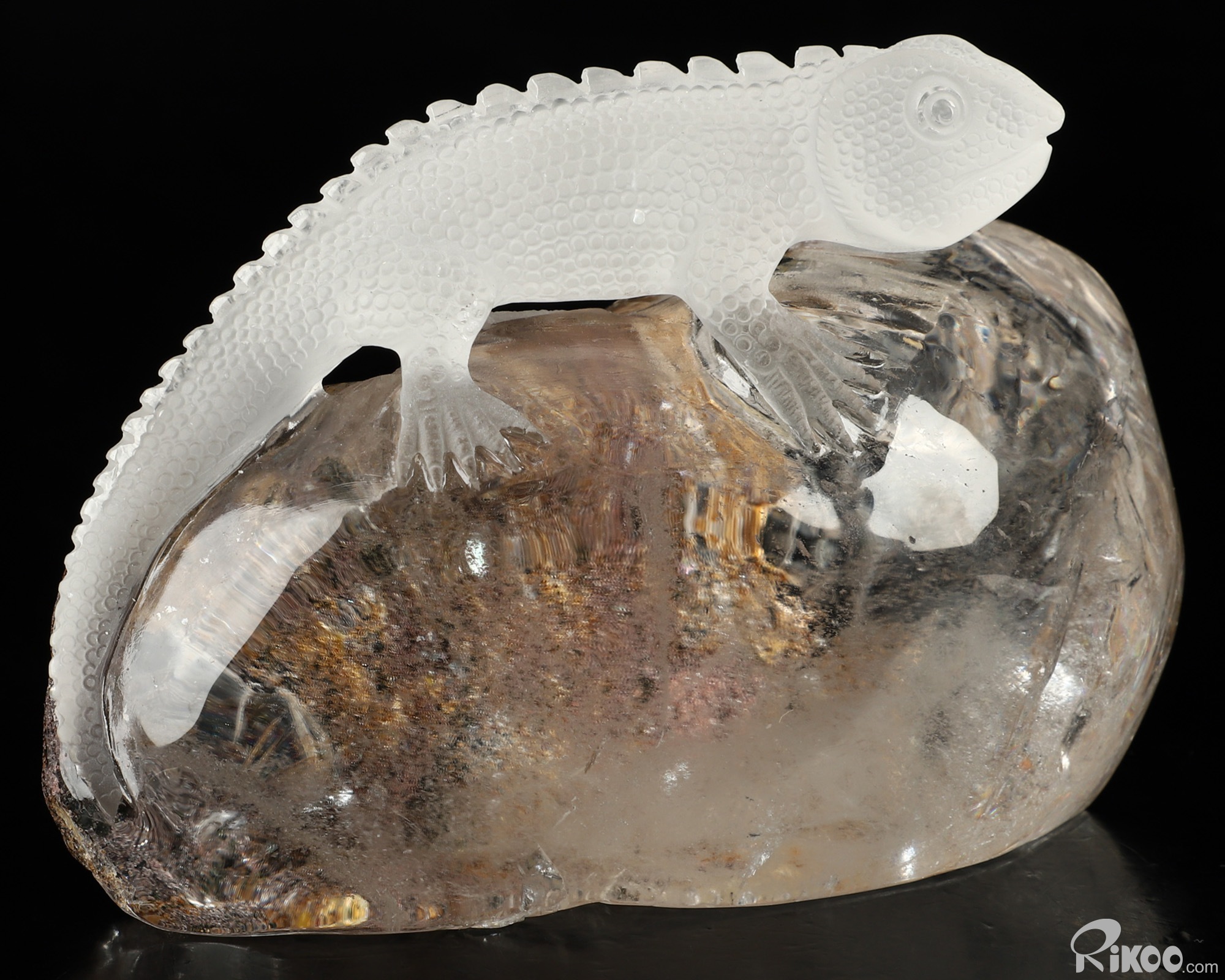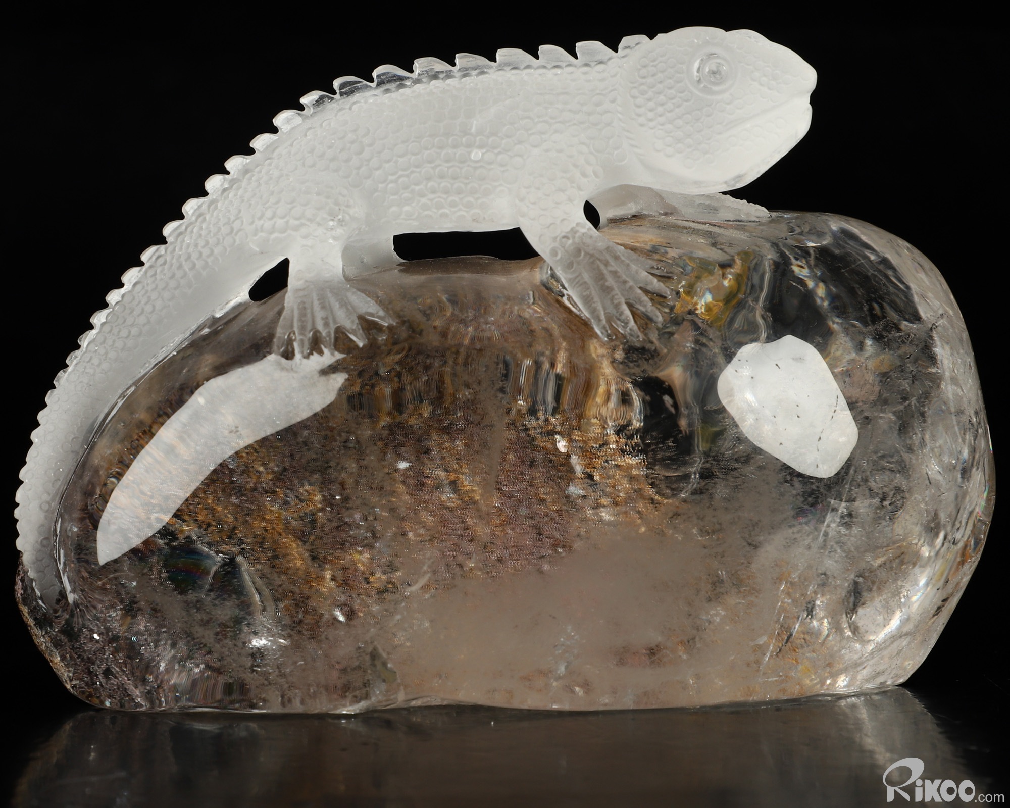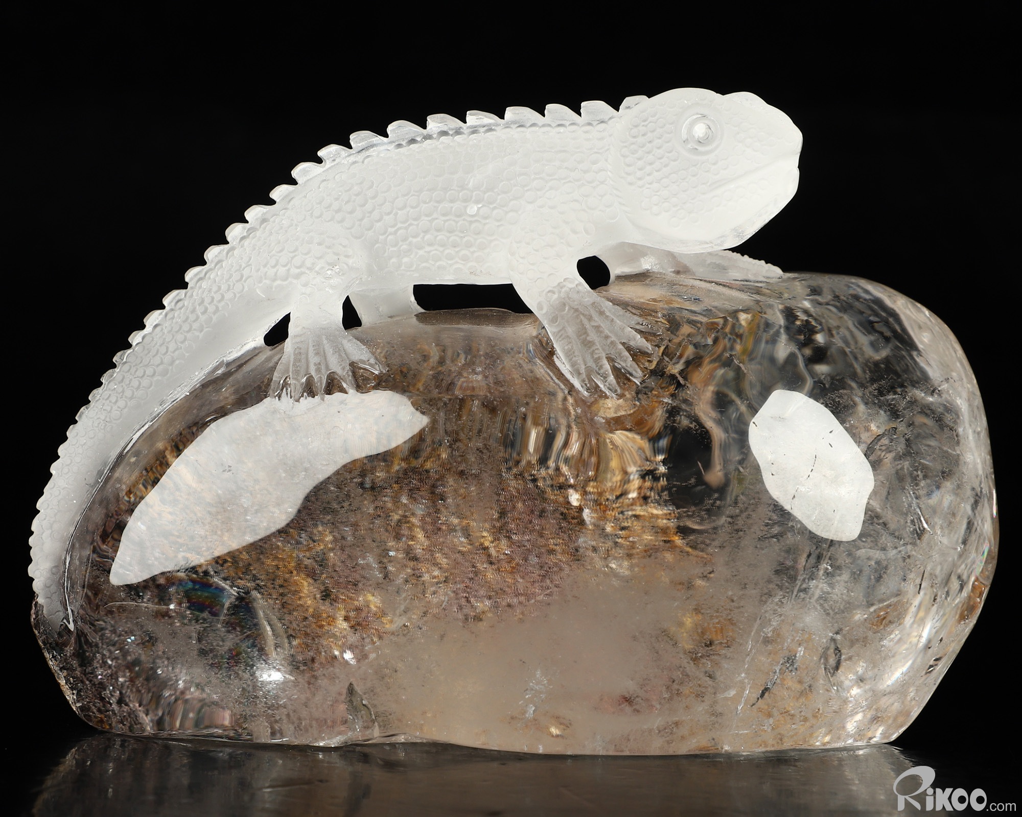 5.7" Phantom Quartz Rock Crystal Hand Carved Crystal Lizard Sculpture, Crystal Healing