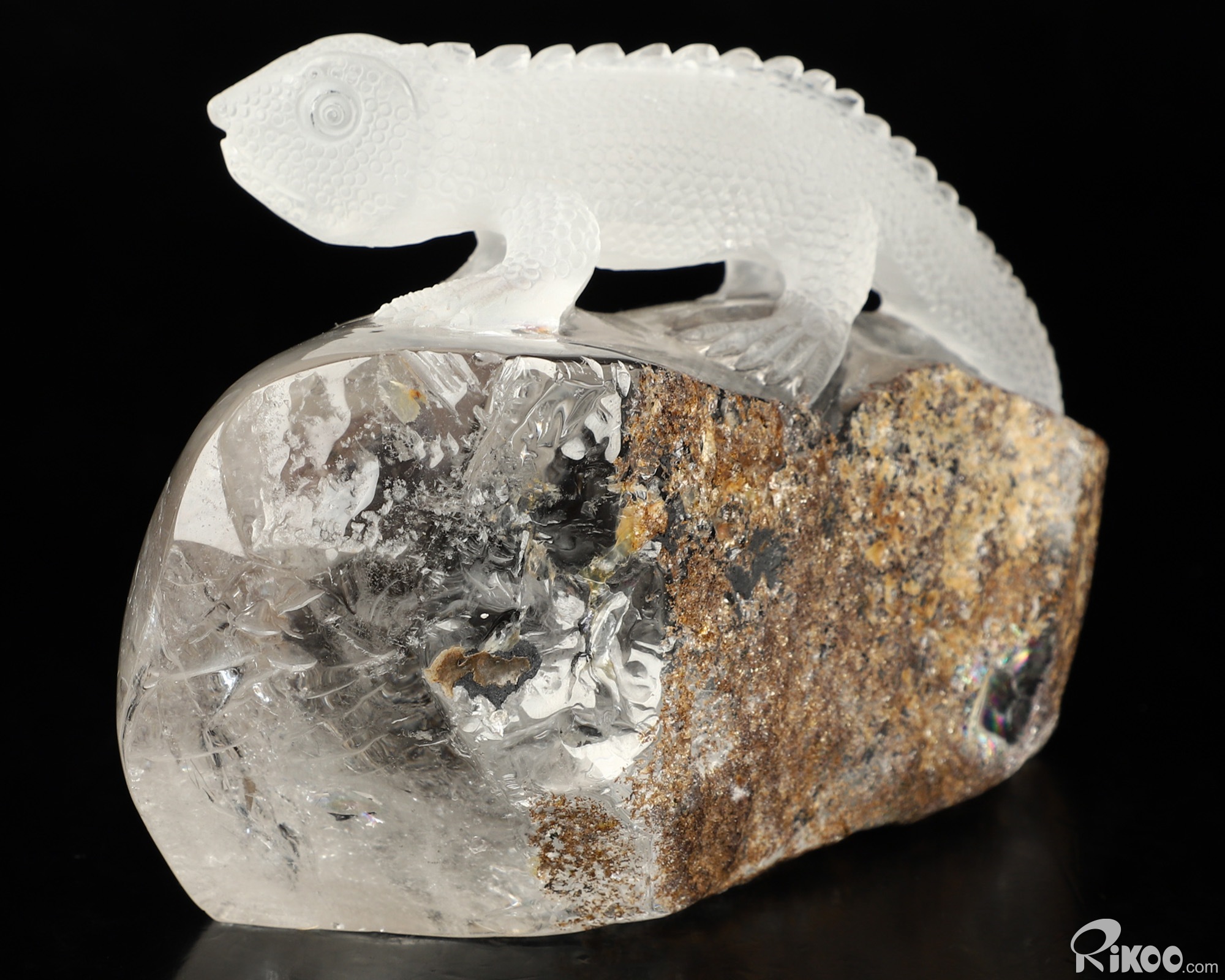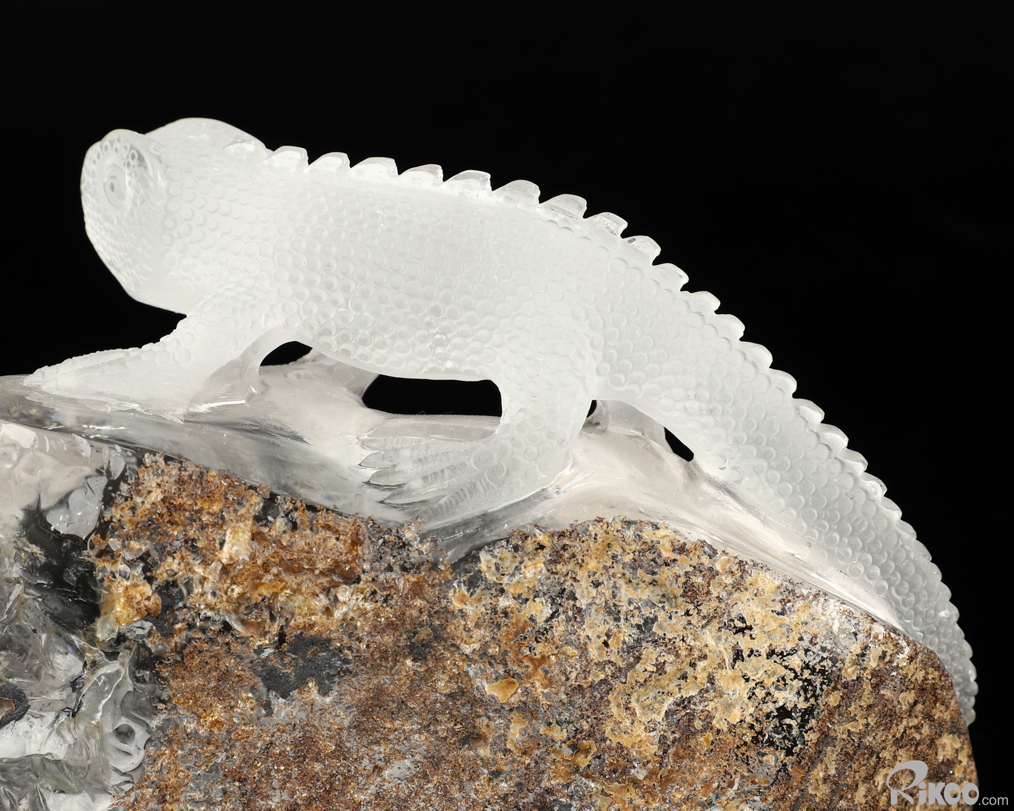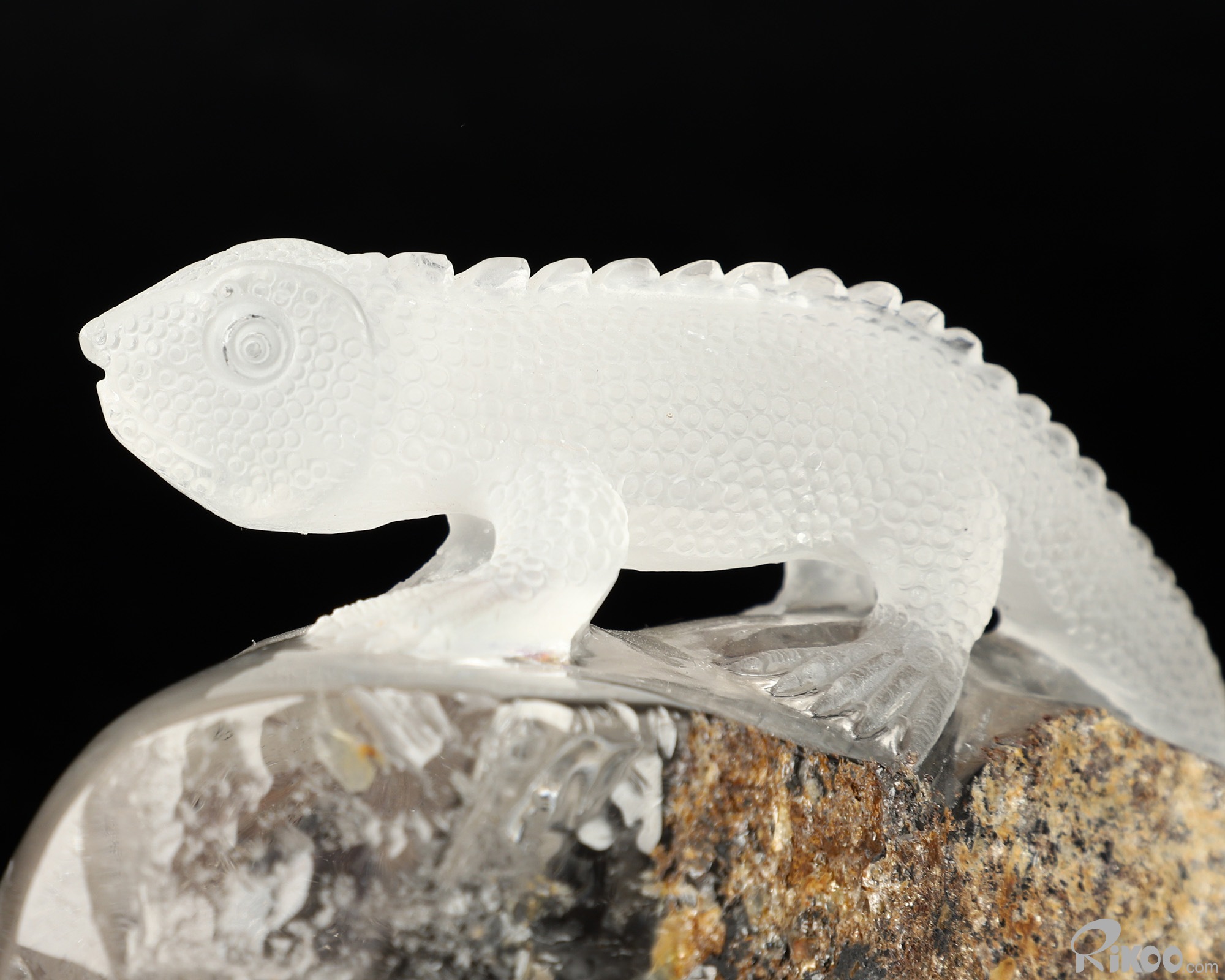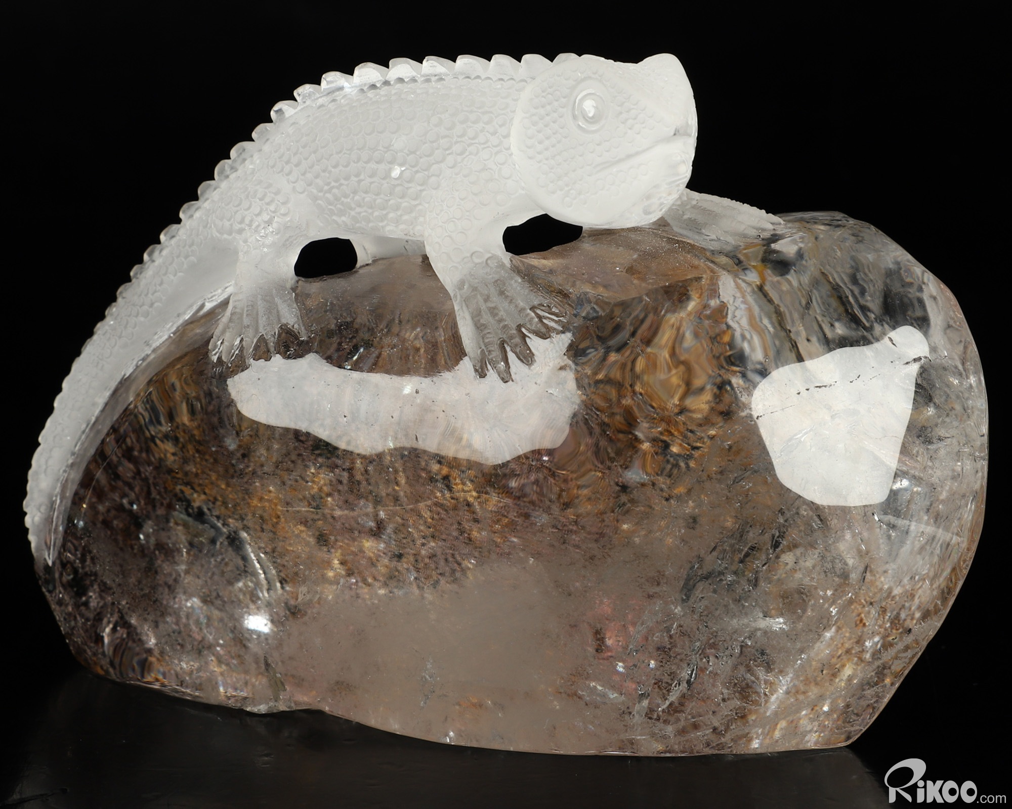 5.7" Phantom Quartz Rock Crystal Hand Carved Crystal Lizard Sculpture, Crystal Healing
