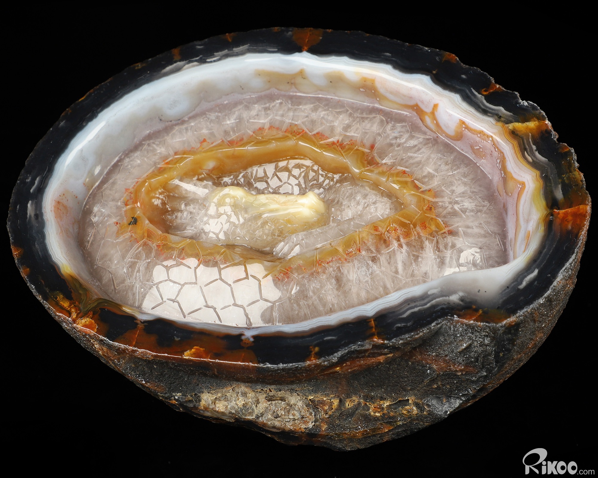Composed of microscopic crystals of Quartz laid down in colorful bands or ribbons. The appearance of the stone is waxy and soft. Almost always translucent and occasionally transparent. Agates are grounding stones. Agates are one of the oldest good luck stones. They help obtain a better physical/emotional balance. They work to raise consciousness. Builds self-confidence. Agate enables the person wearing it to choose their friends carefully. Used to avert from lighting and stormy weather (physically and metaphysically), agate brings prosperity. It is a protector of children. This stone helps us to have patience, and allows for inner peace. Use agate as a gazing tool for divination and meditation. Agate balances emotions and brings insight to any situation.