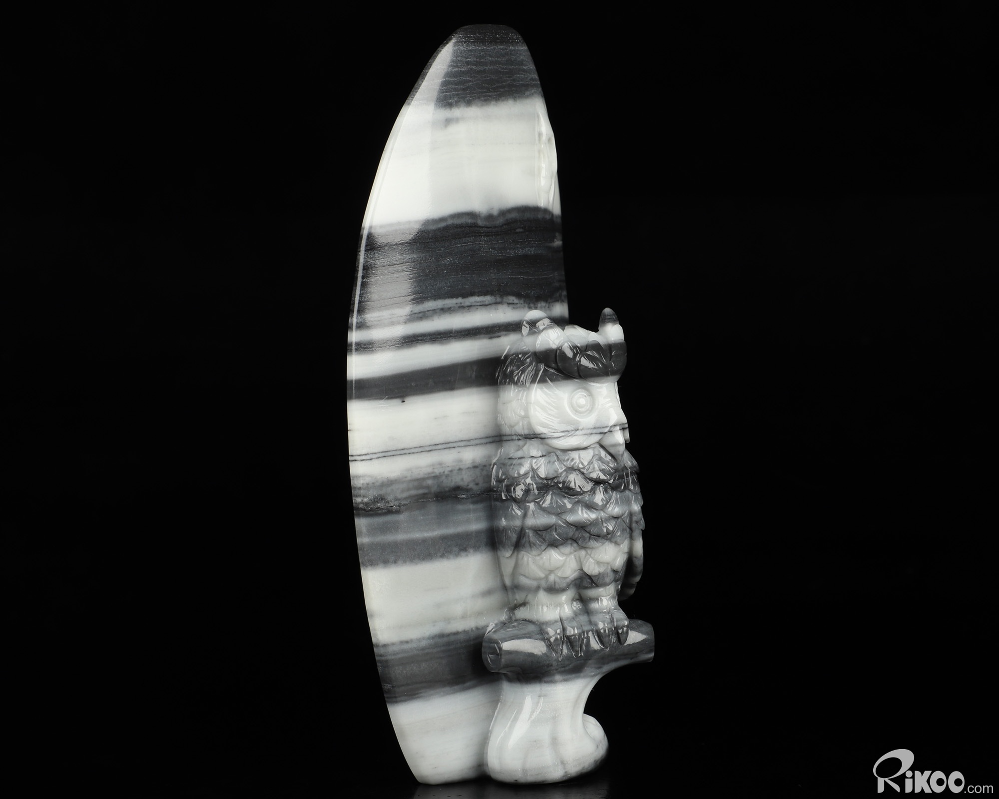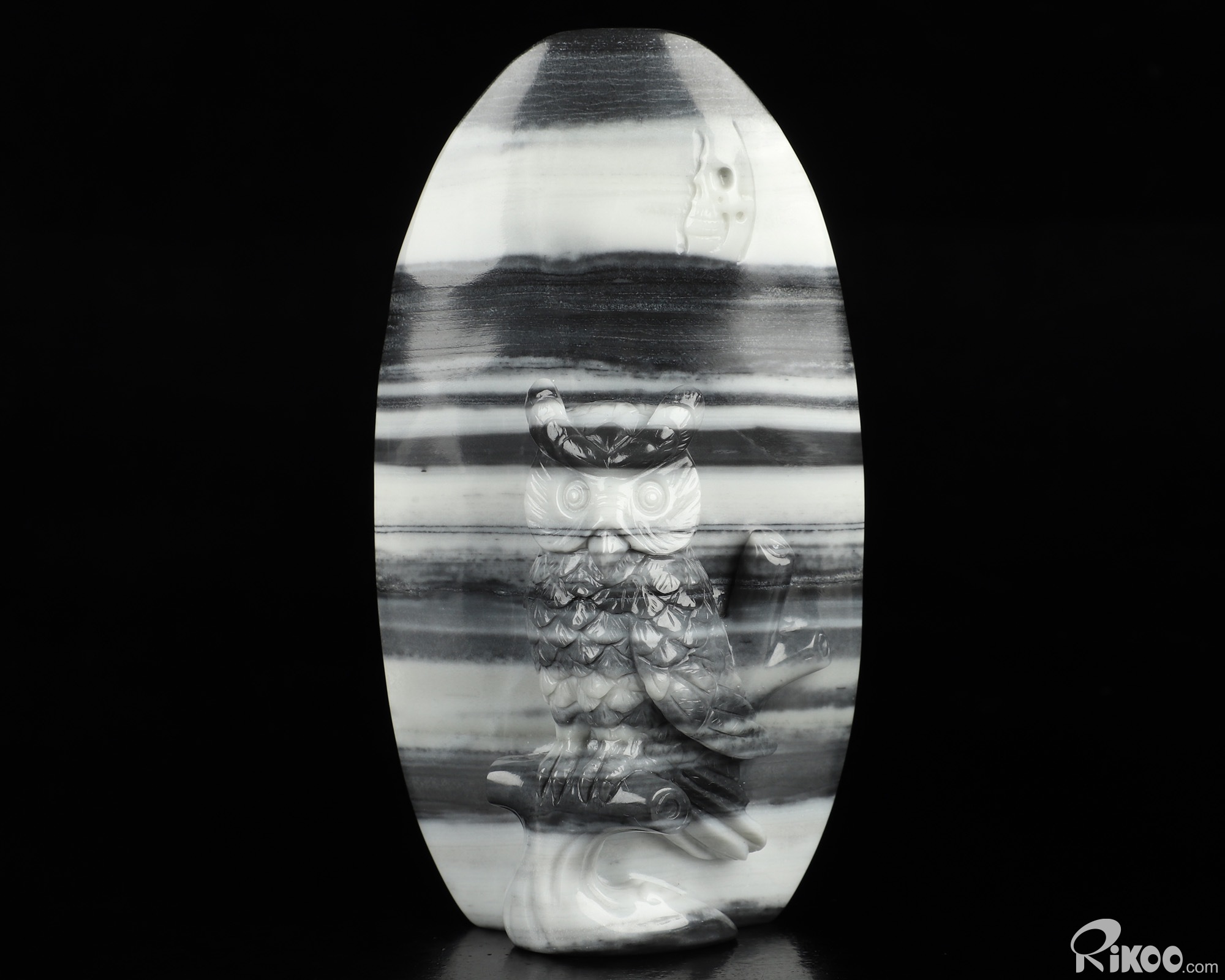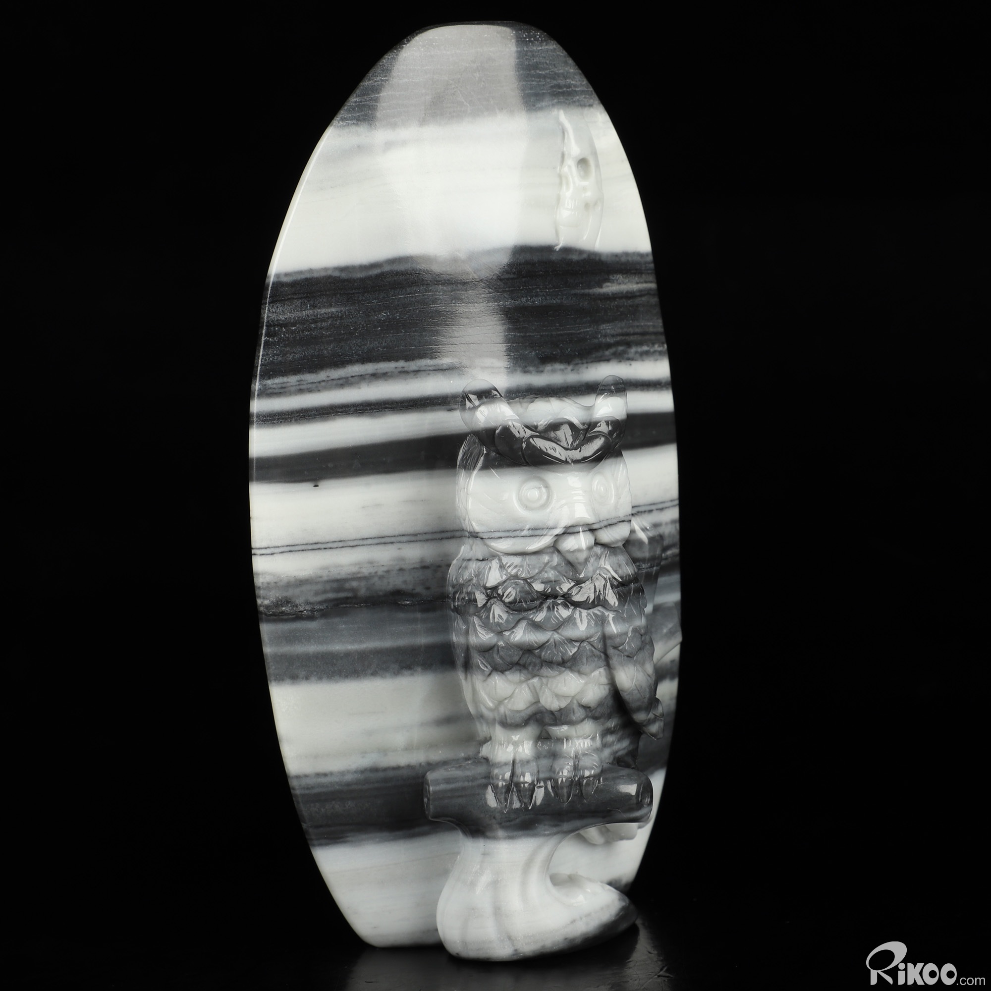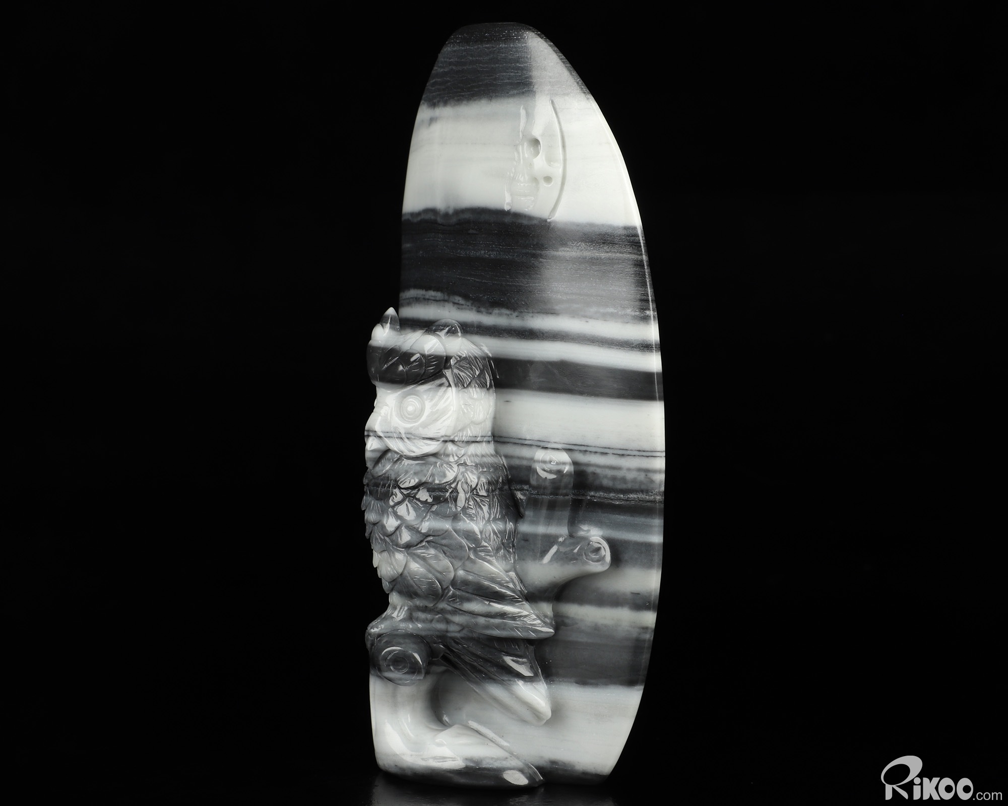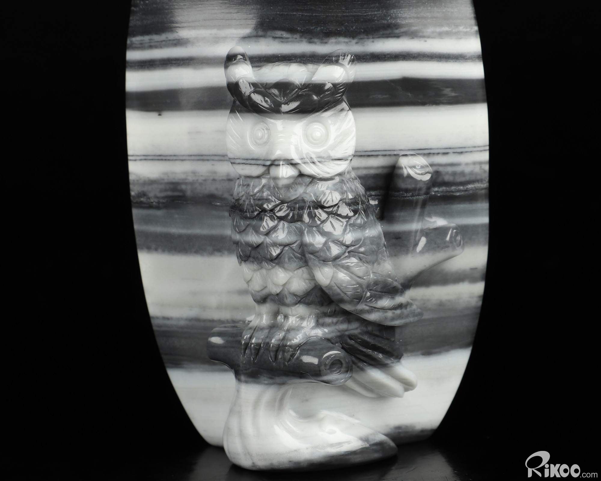 5.8" Yinyang Stone Hand Carved Crystal Owl Sculpture, Crystal Healing