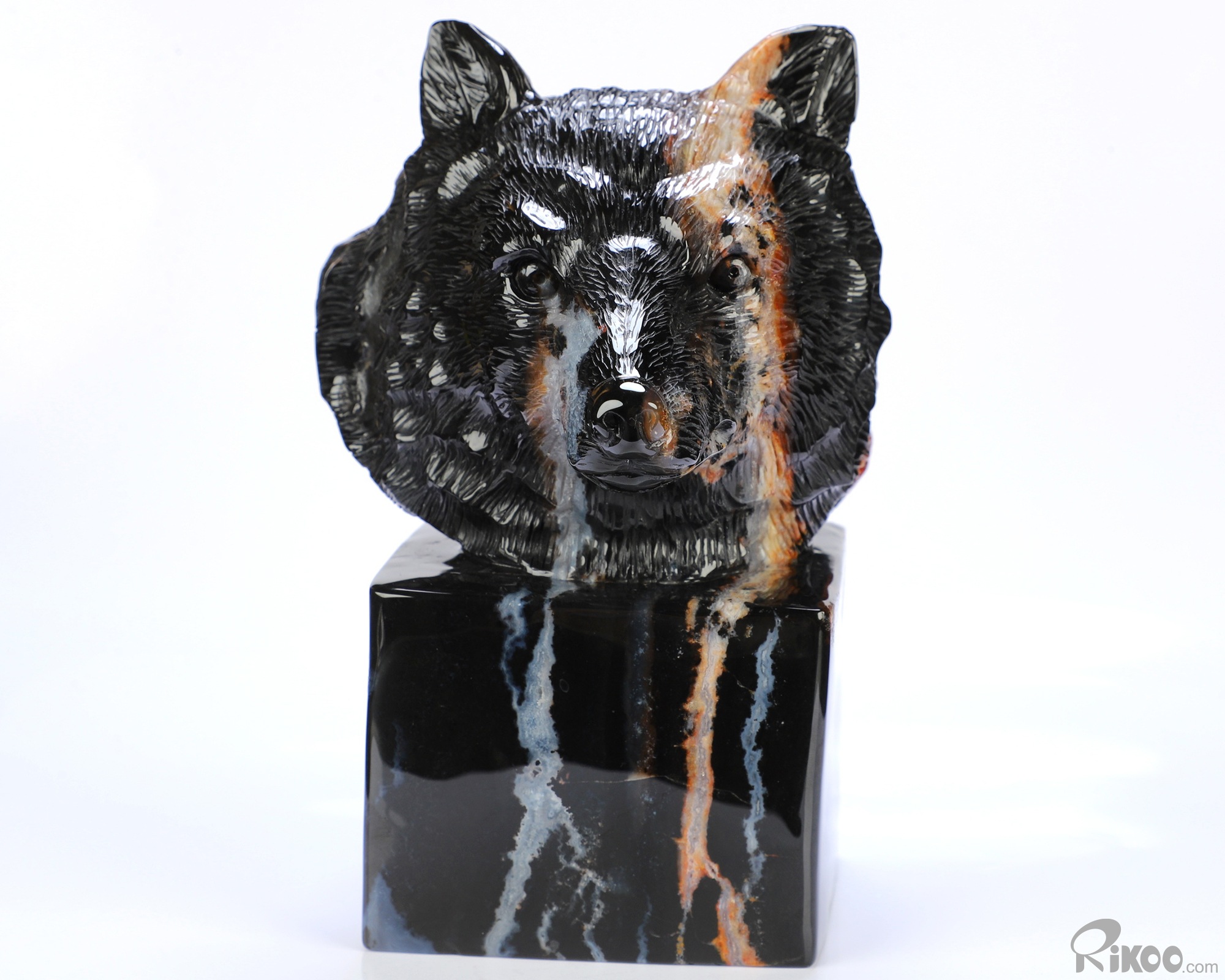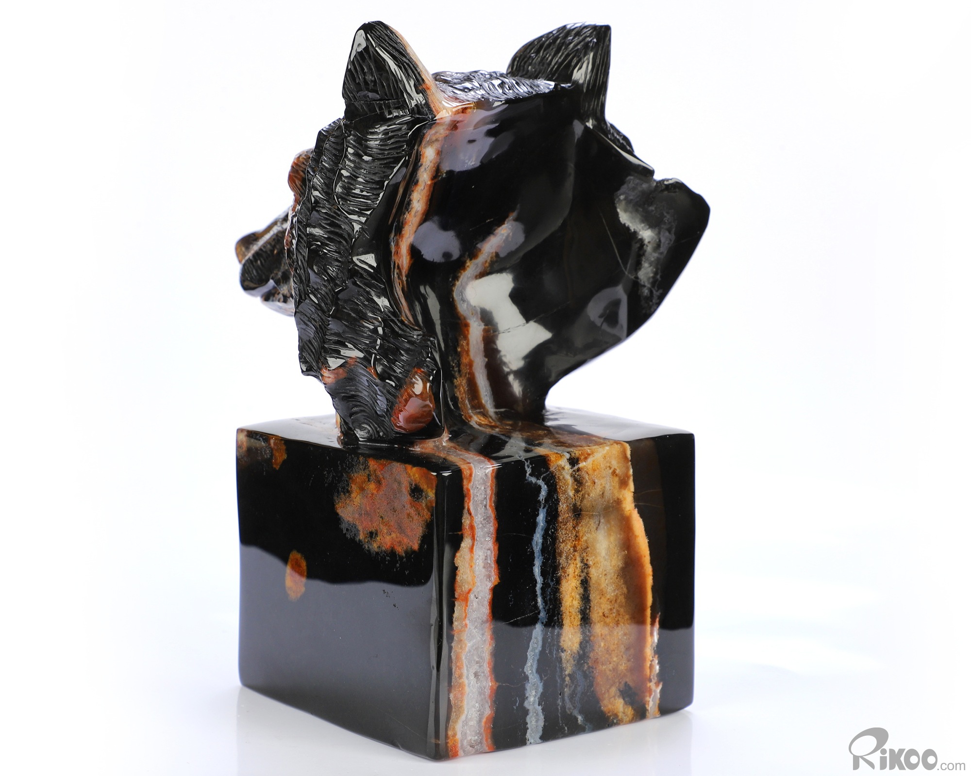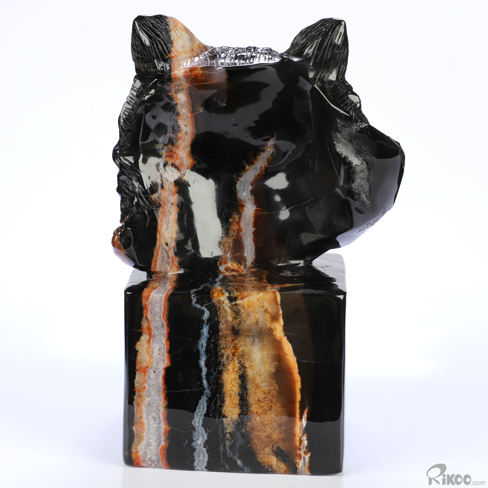 You are looking at a Black Zebra Agate sculpture. The sculpture is 5.8 inches long.