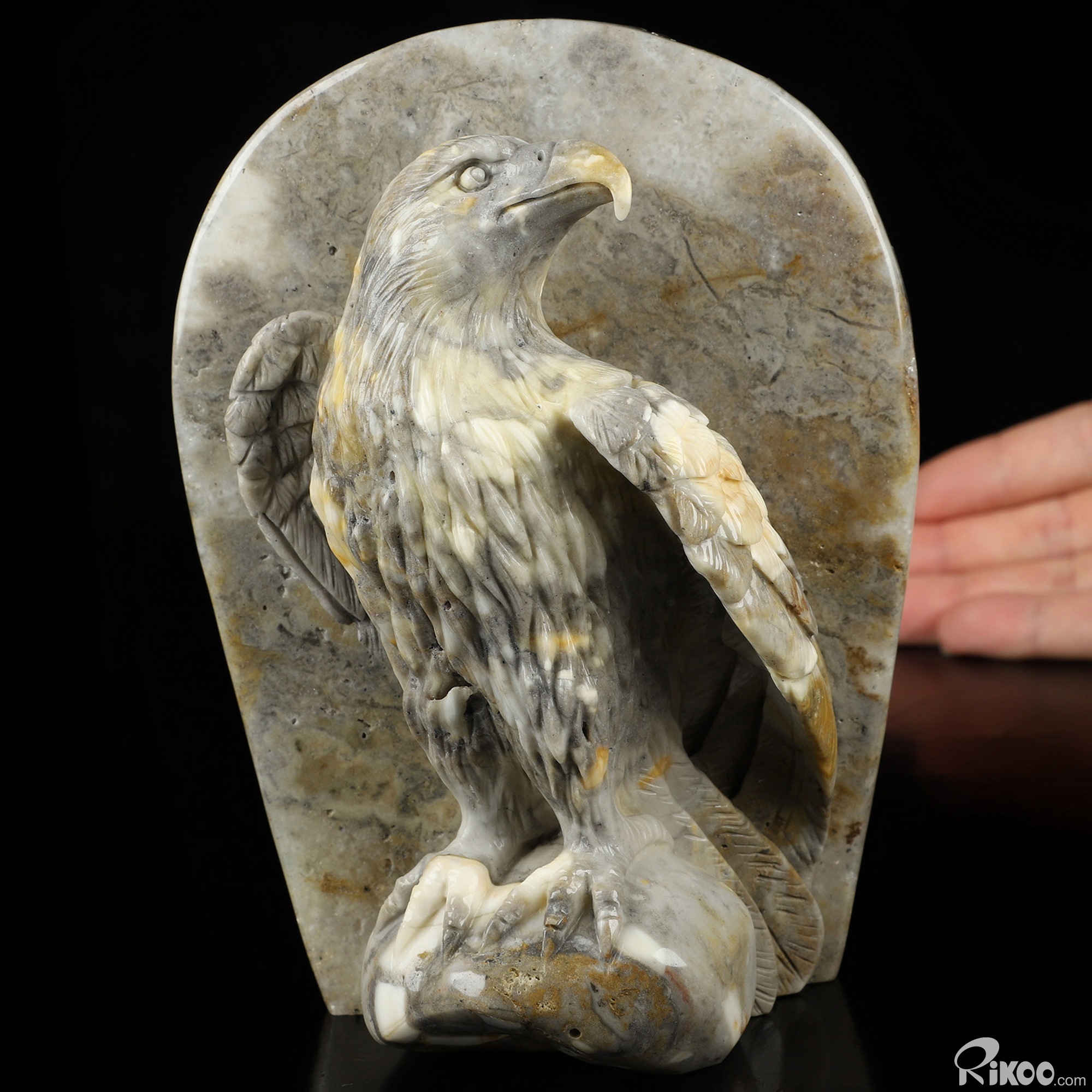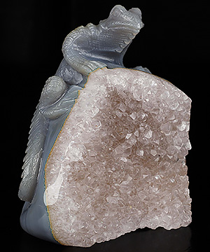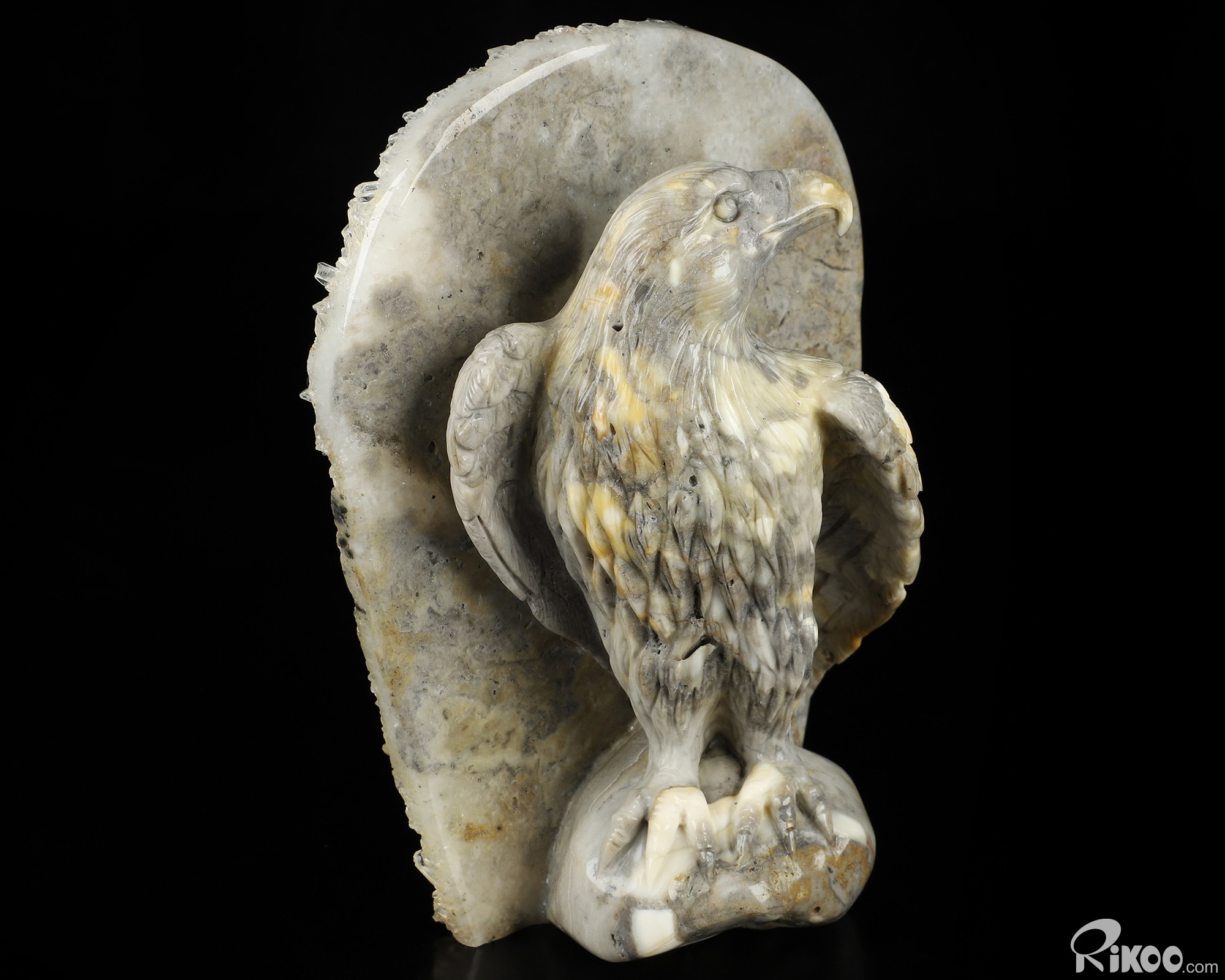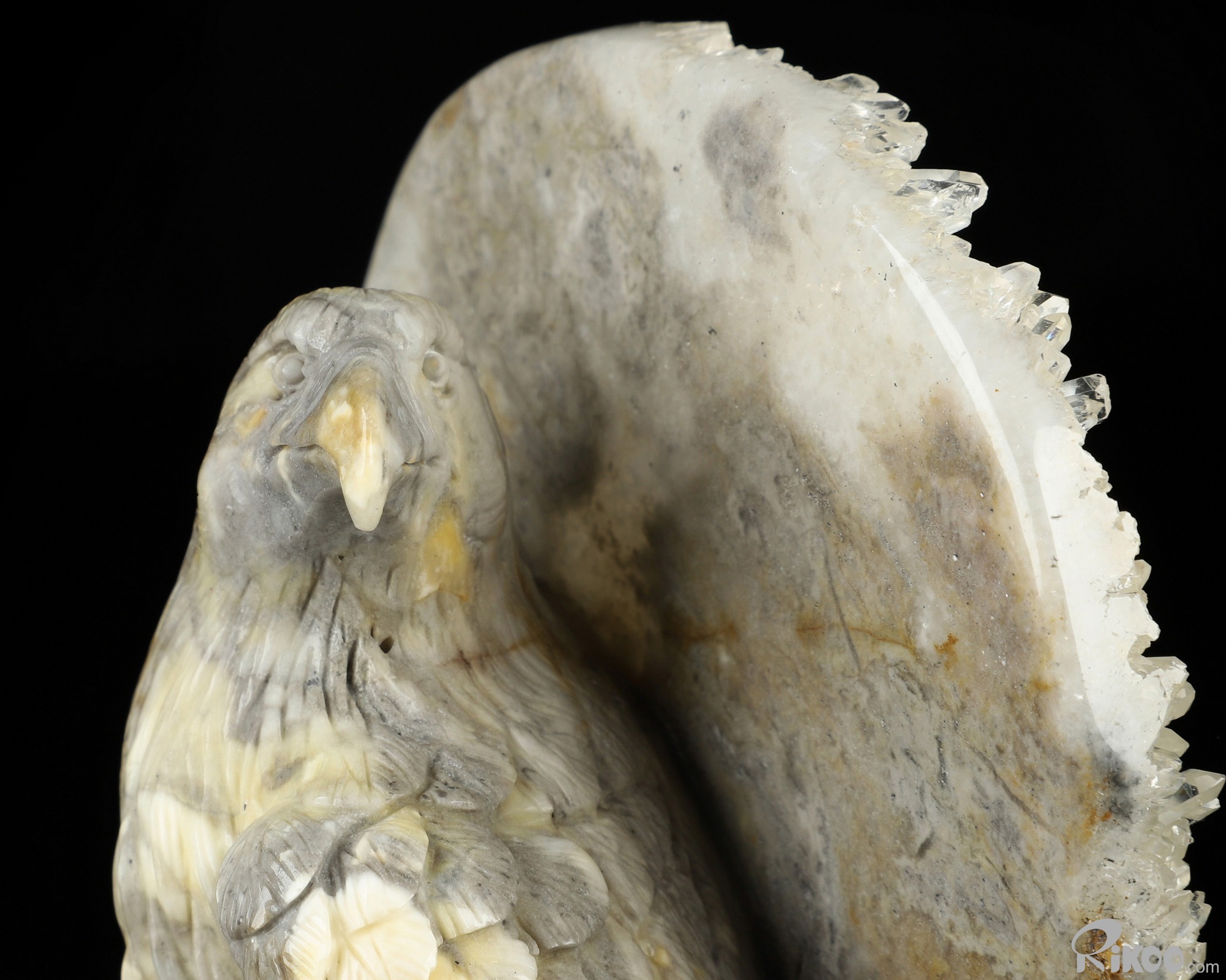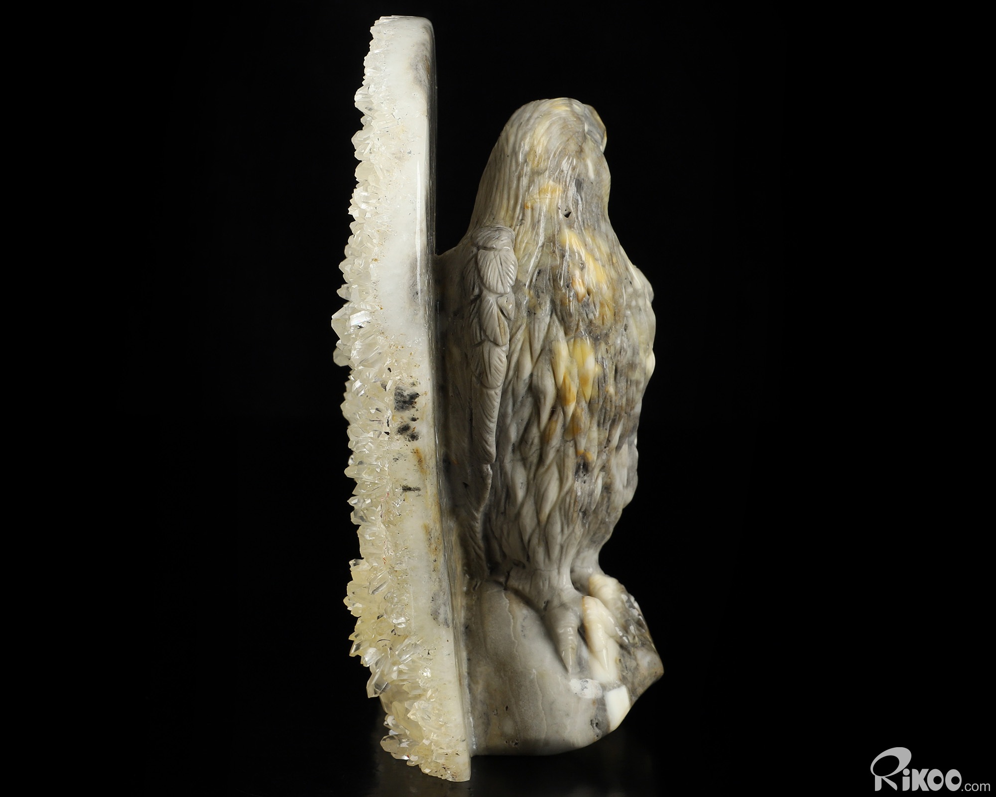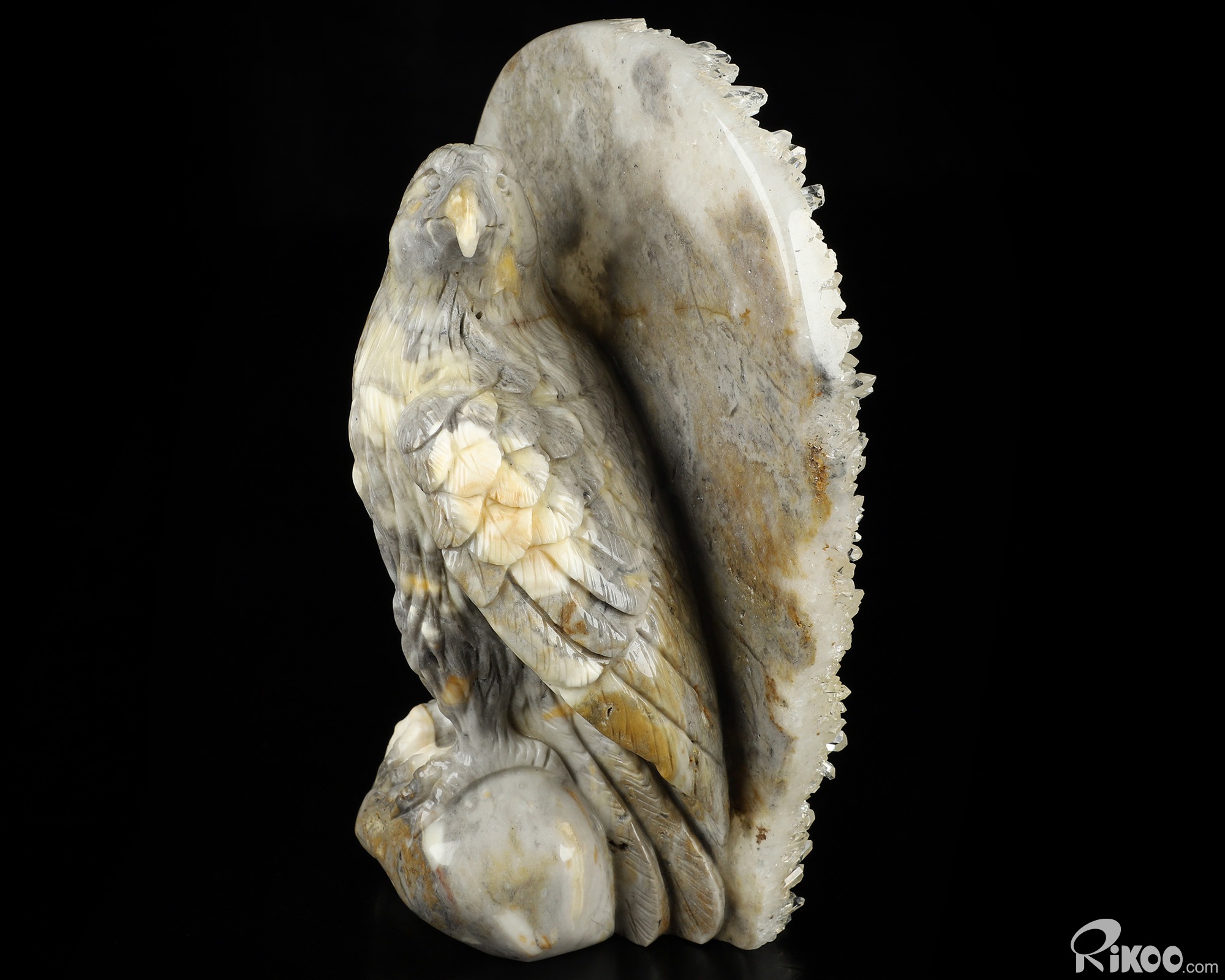 5.8" Quartz Rock Druse Hand Carved Crystal Eagle Sculpture, Crystal Healing