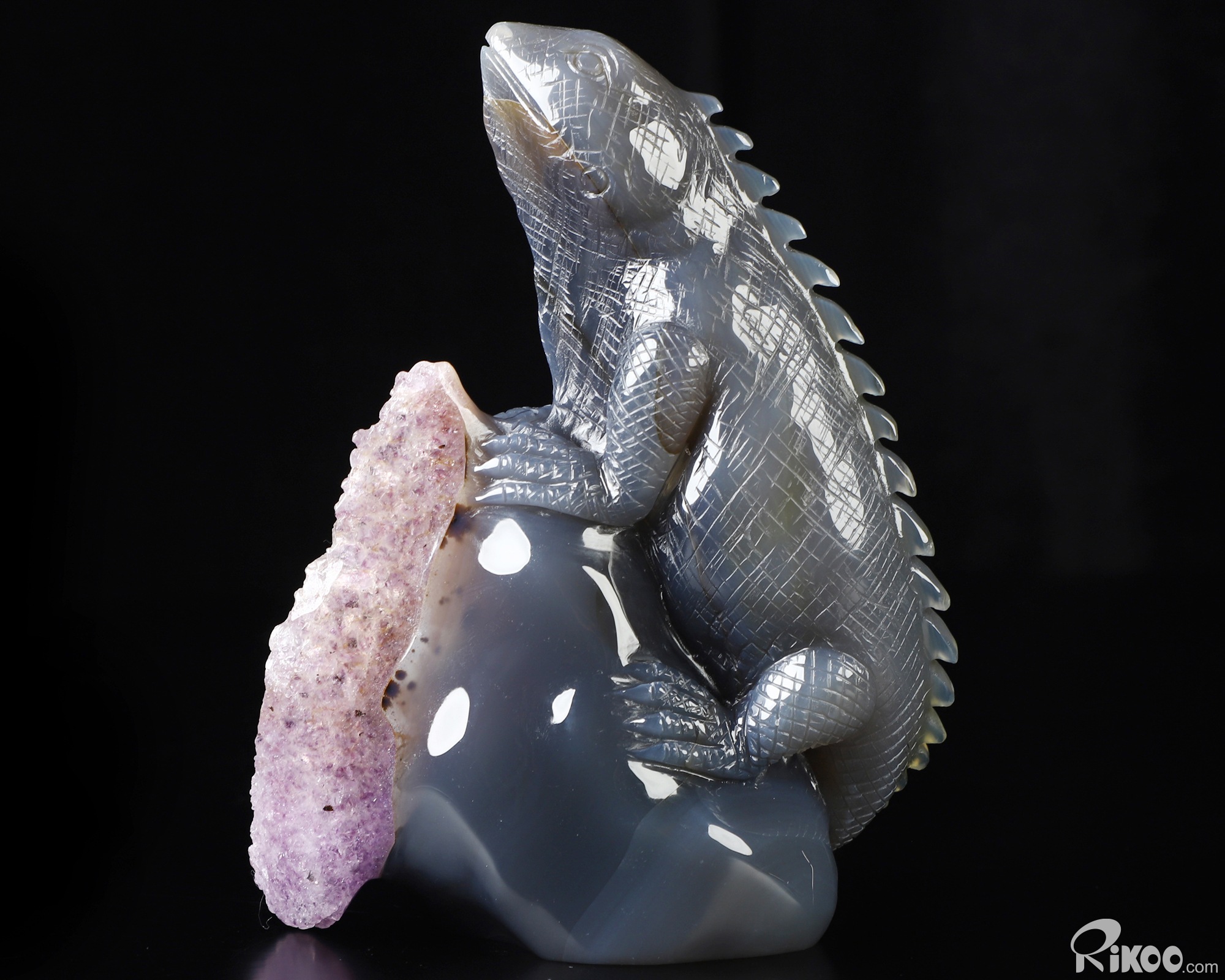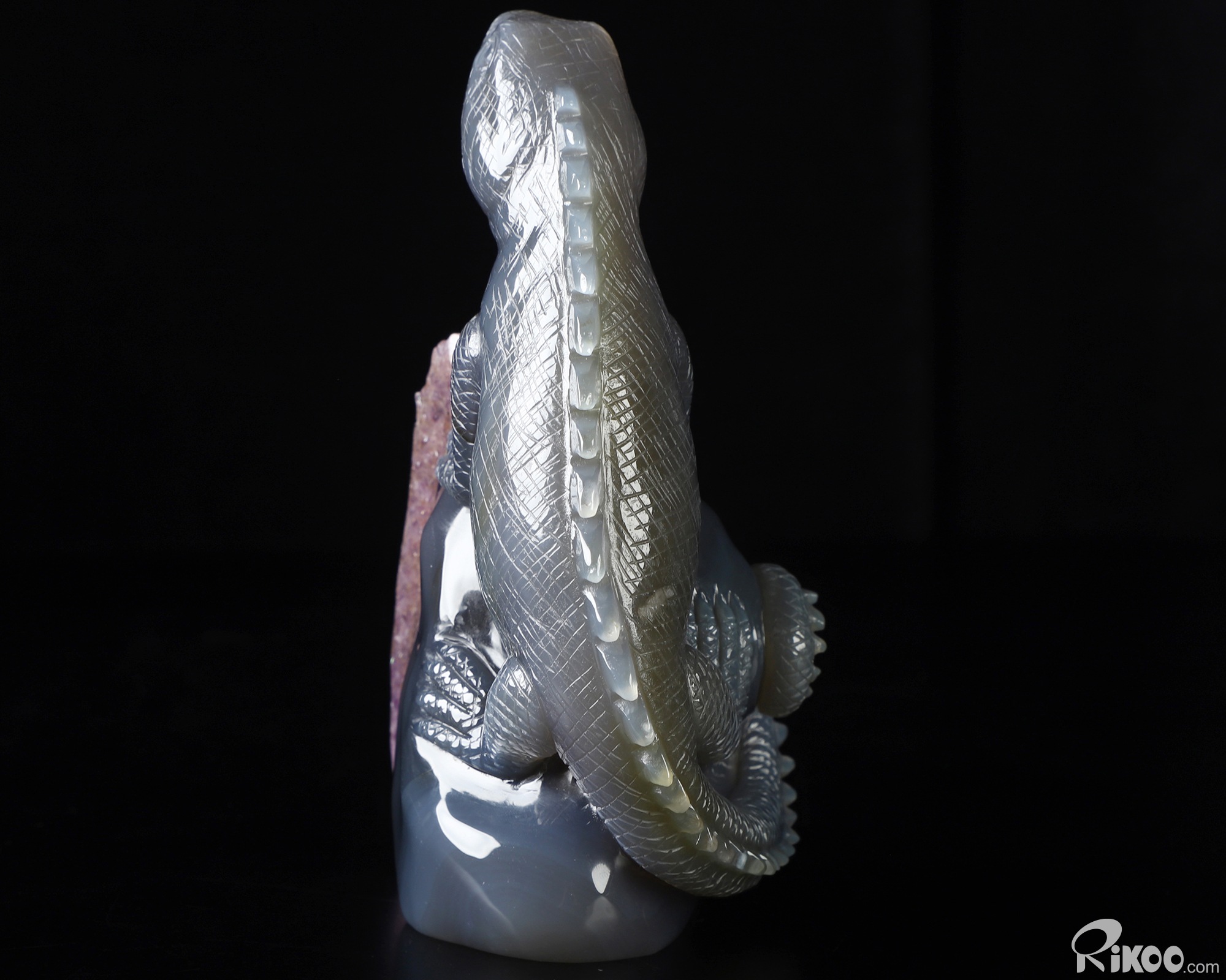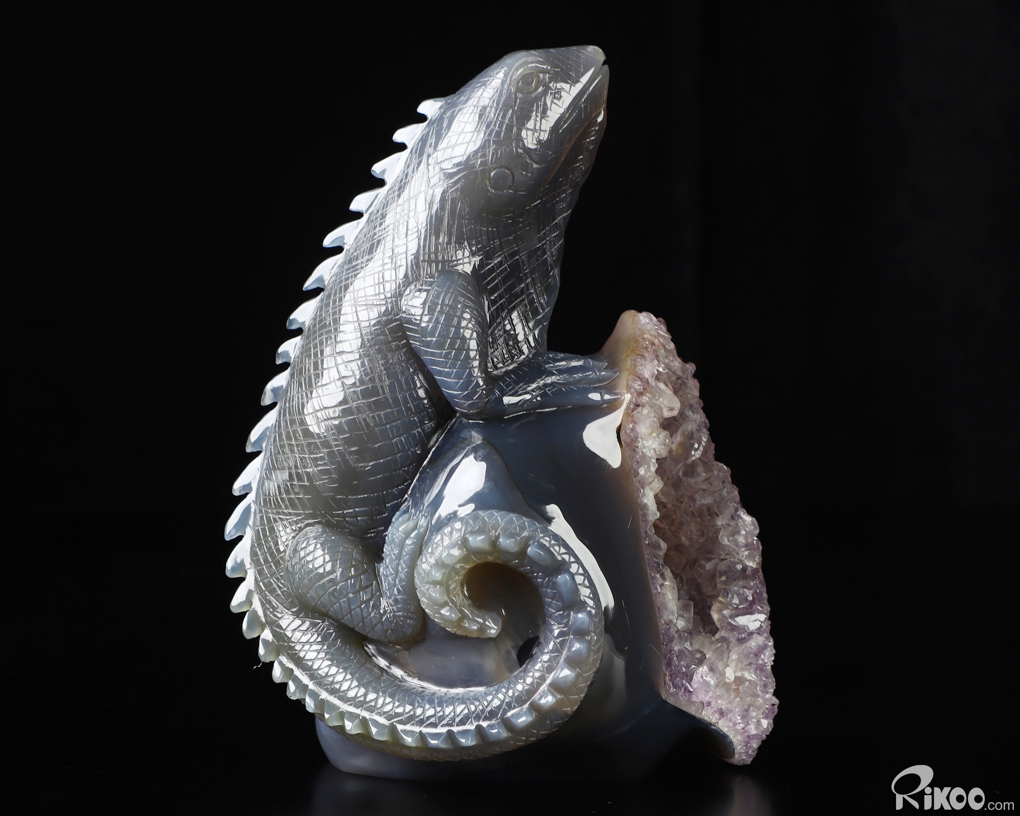 5.9" Agate Amethyst Geode Hand Carved Crystal Lizard Sculpture, Crystal Healing