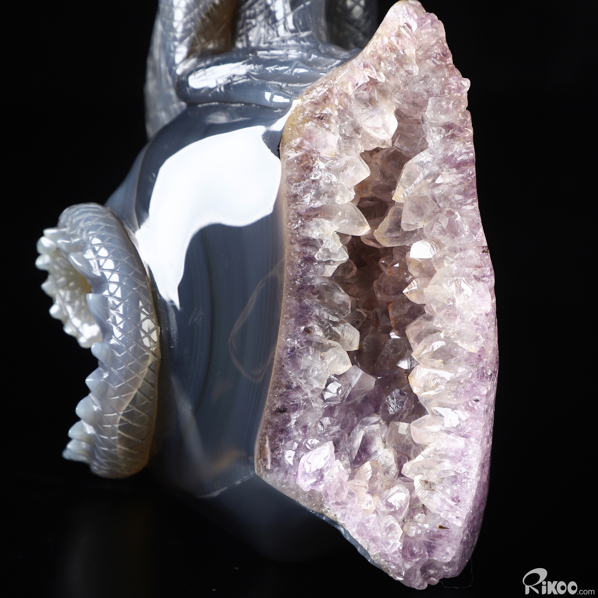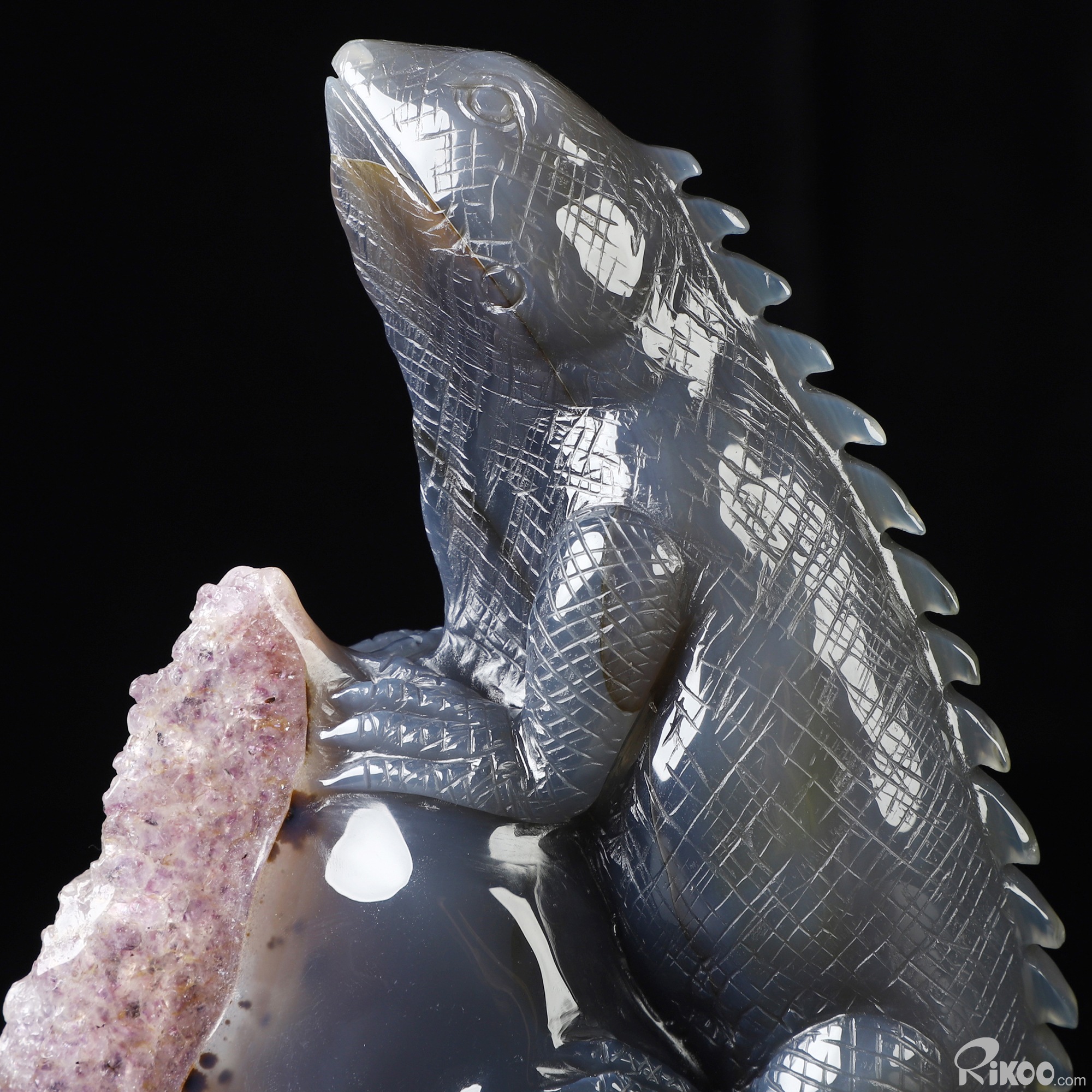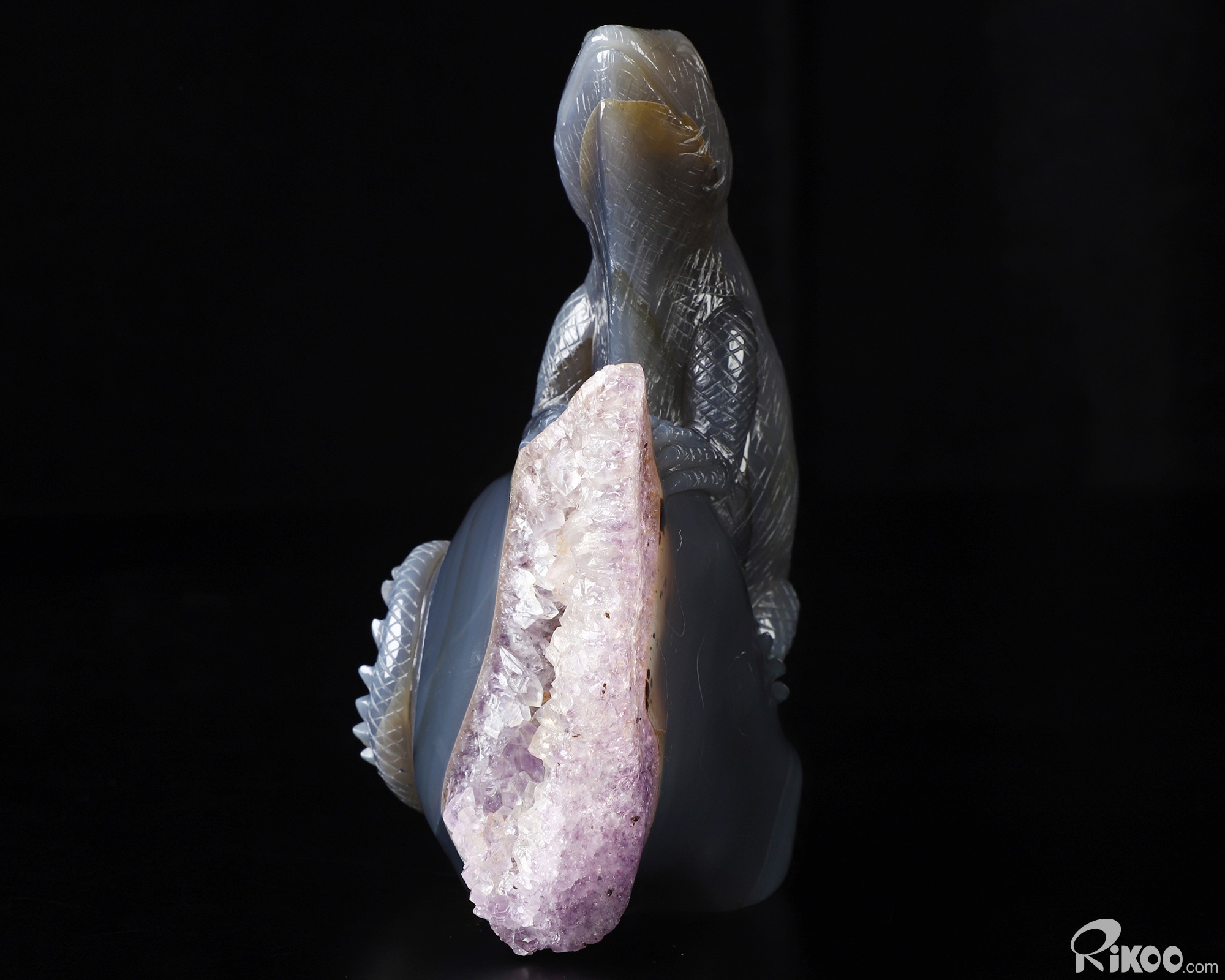 5.9" Agate Amethyst Geode Hand Carved Crystal Lizard Sculpture, Crystal Healing