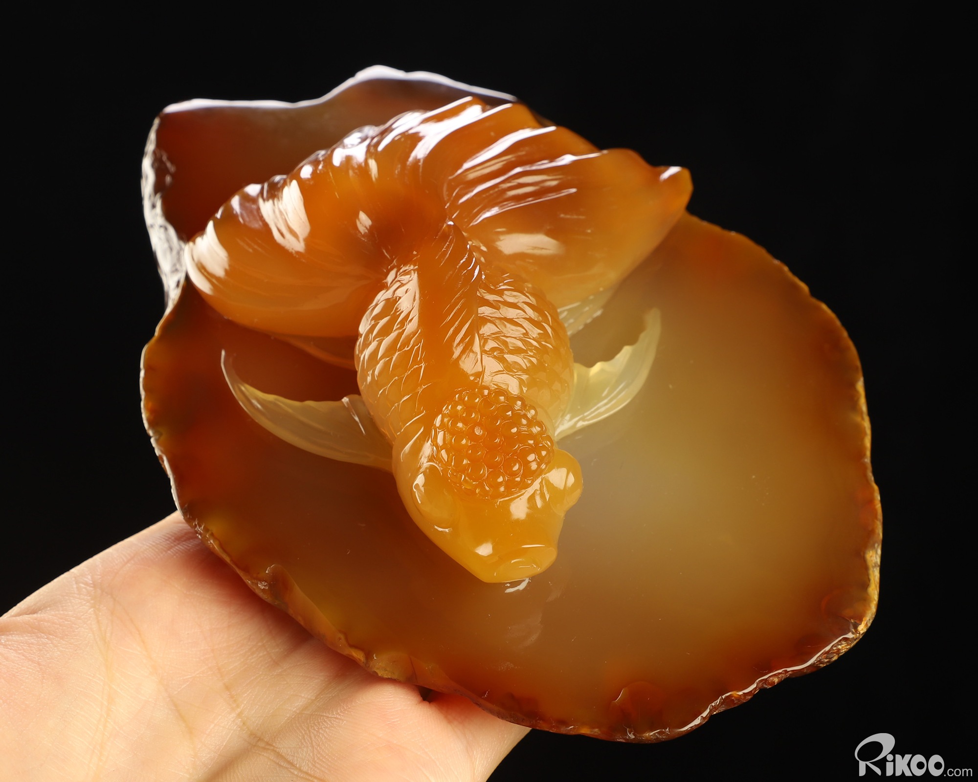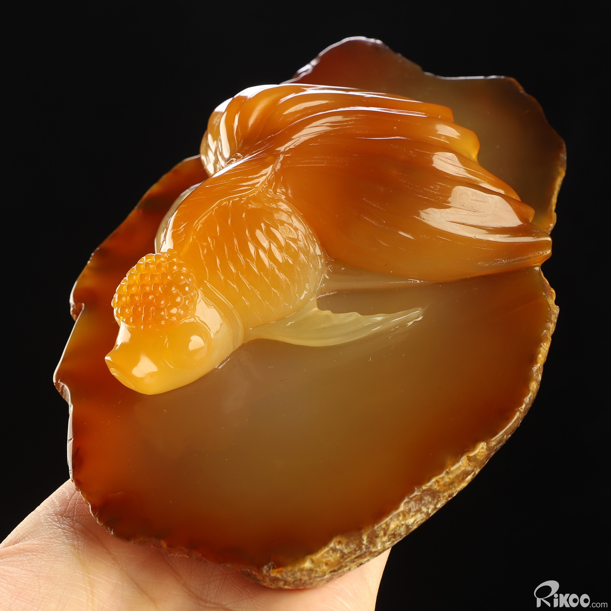 5.9" Carnelian Hand Carved Crystal Goldfish Sculpture, Crystal Healing