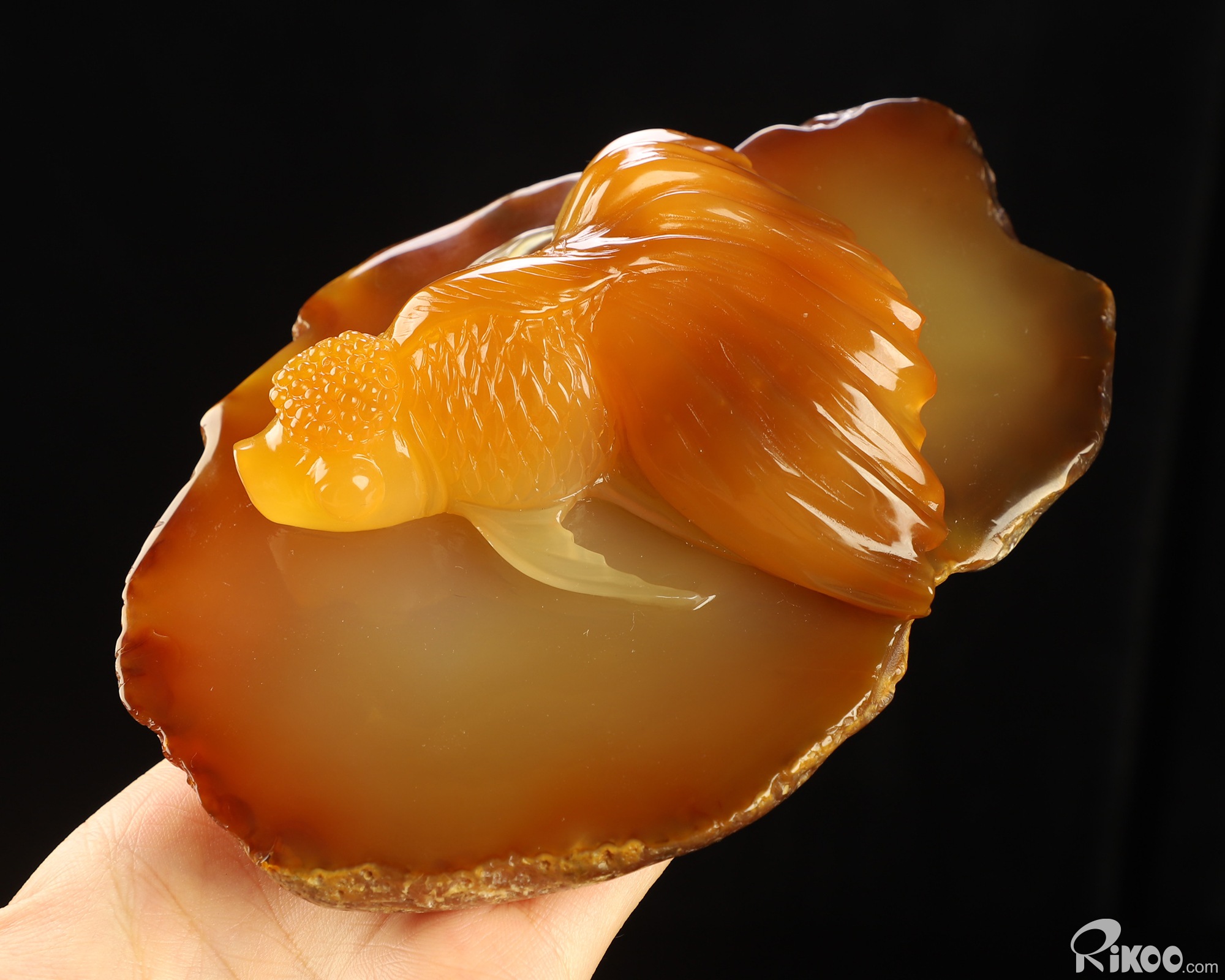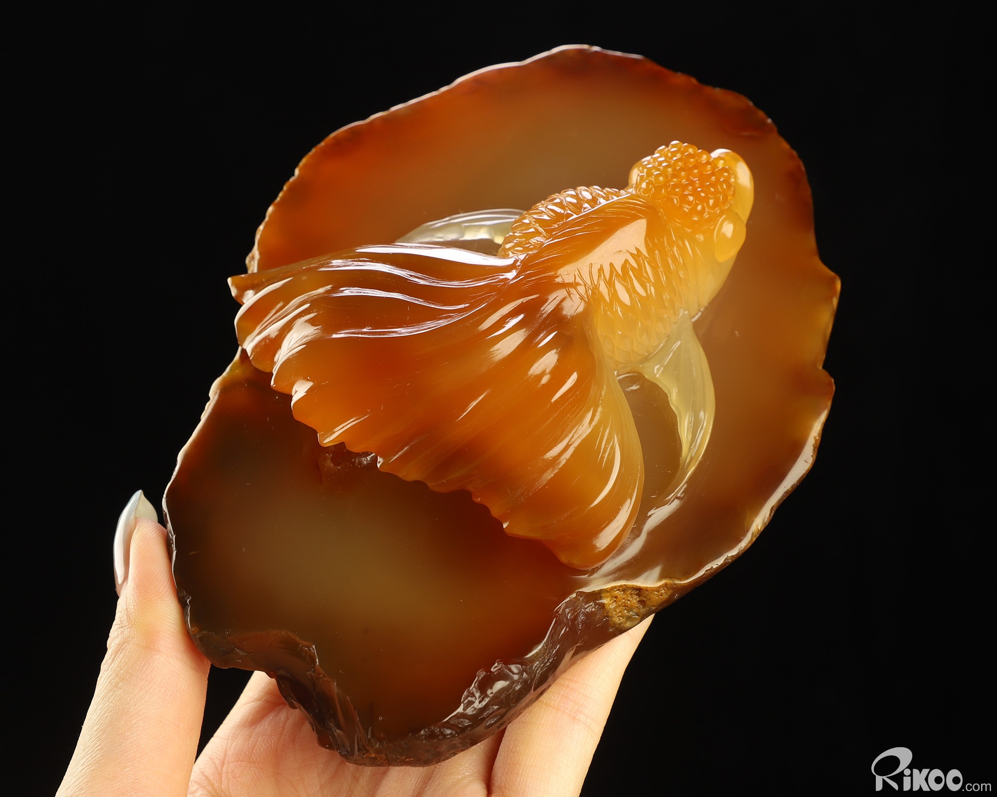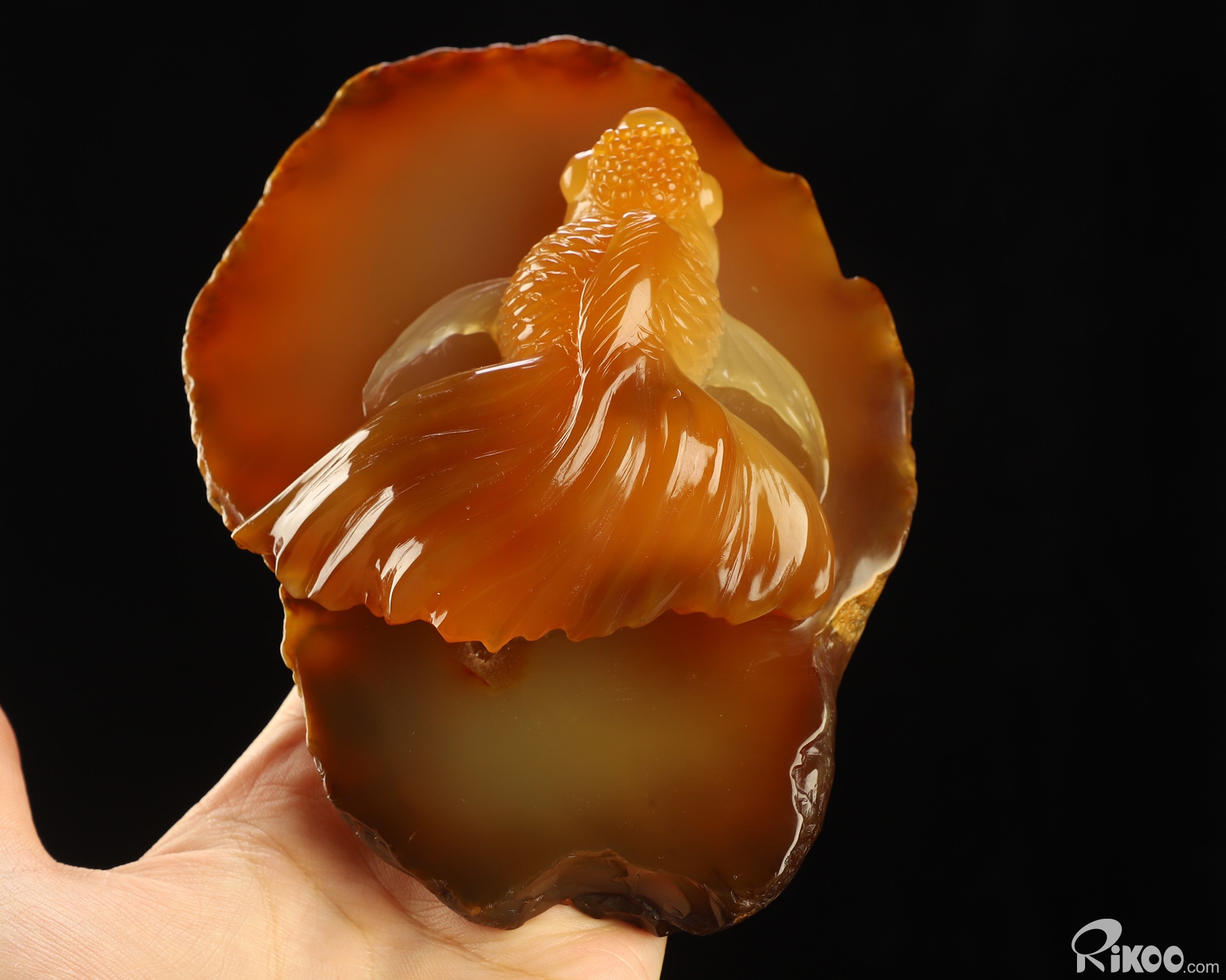 You are looking at a Carnelian sculpture. The sculpture is 5.9 inches long.
