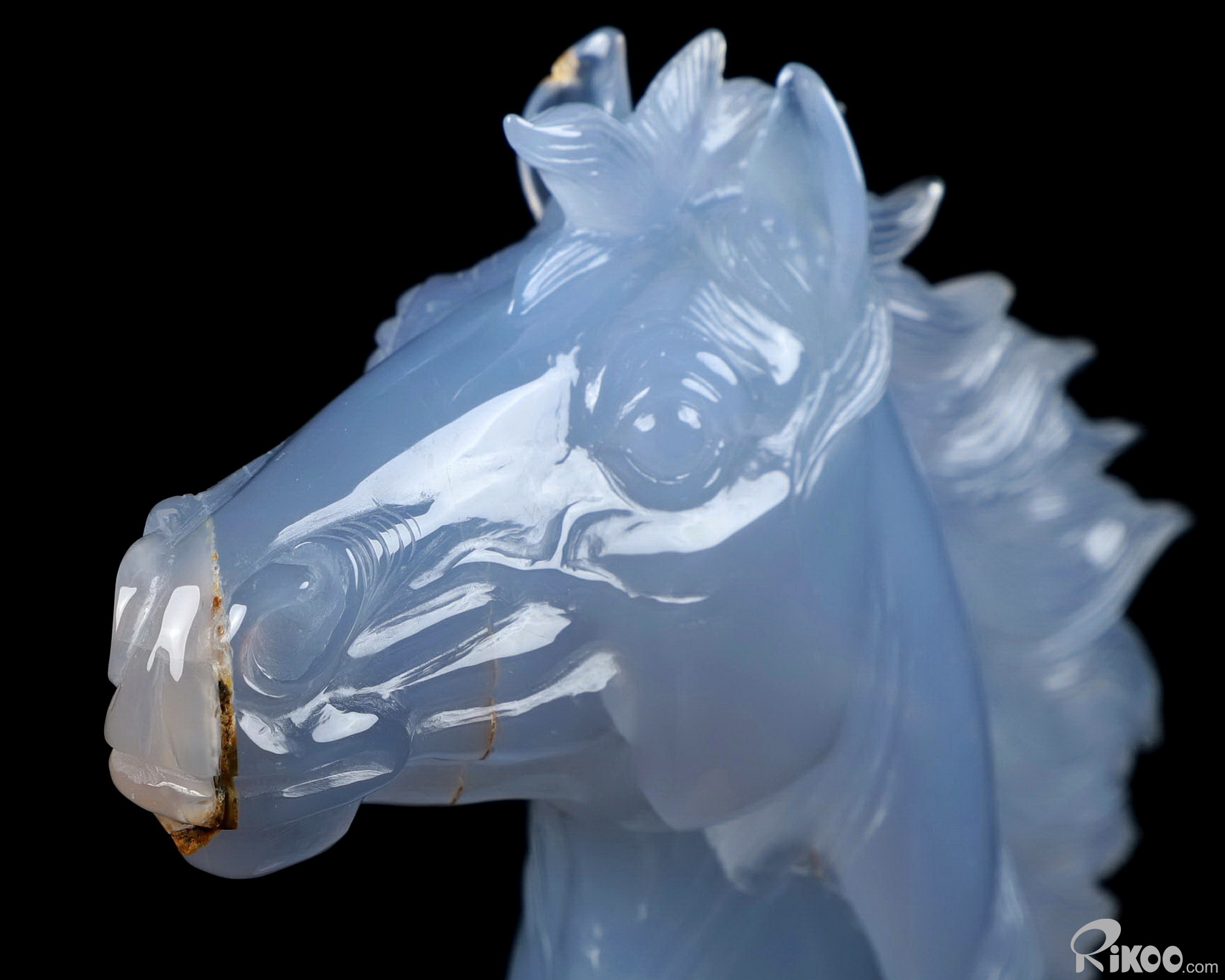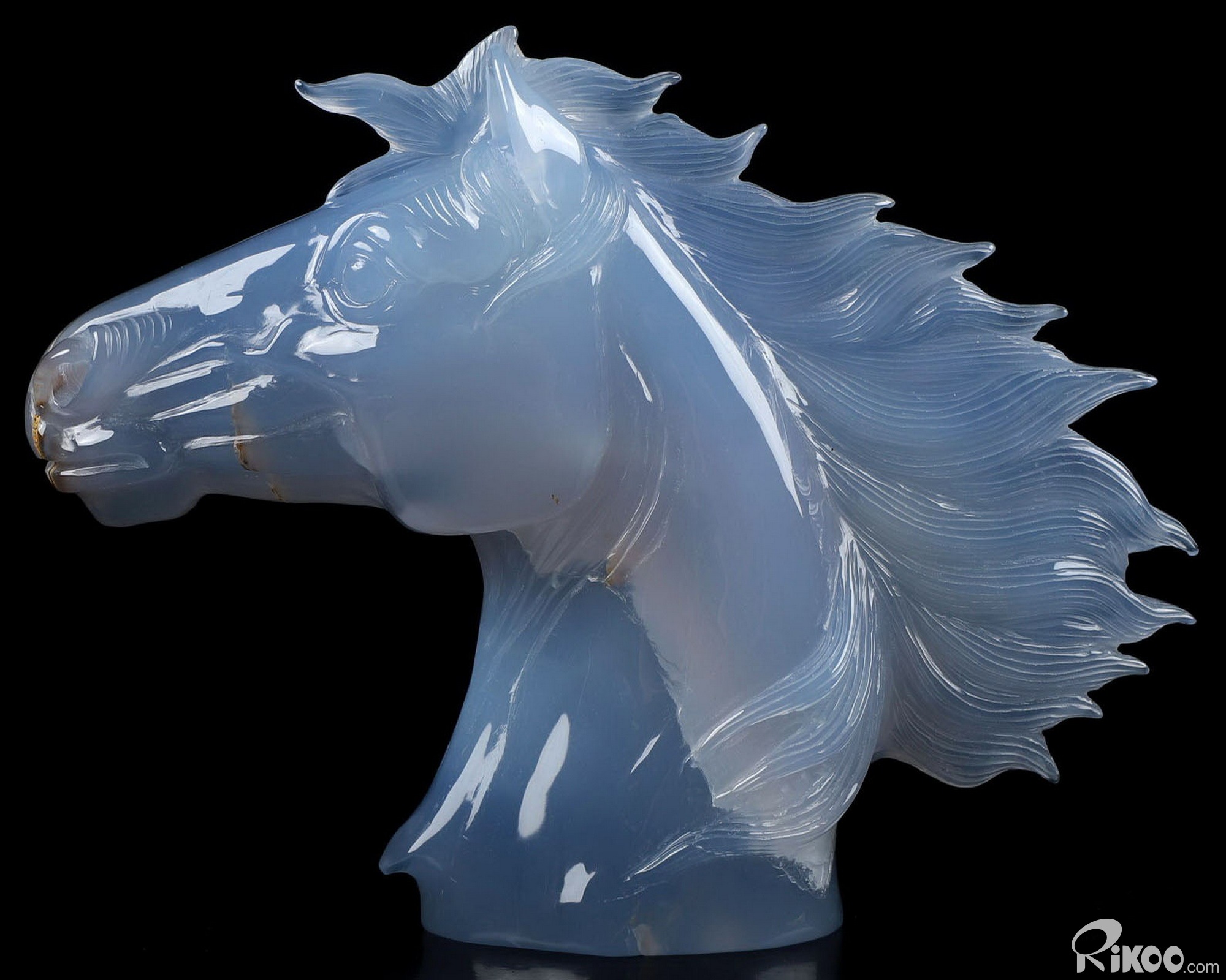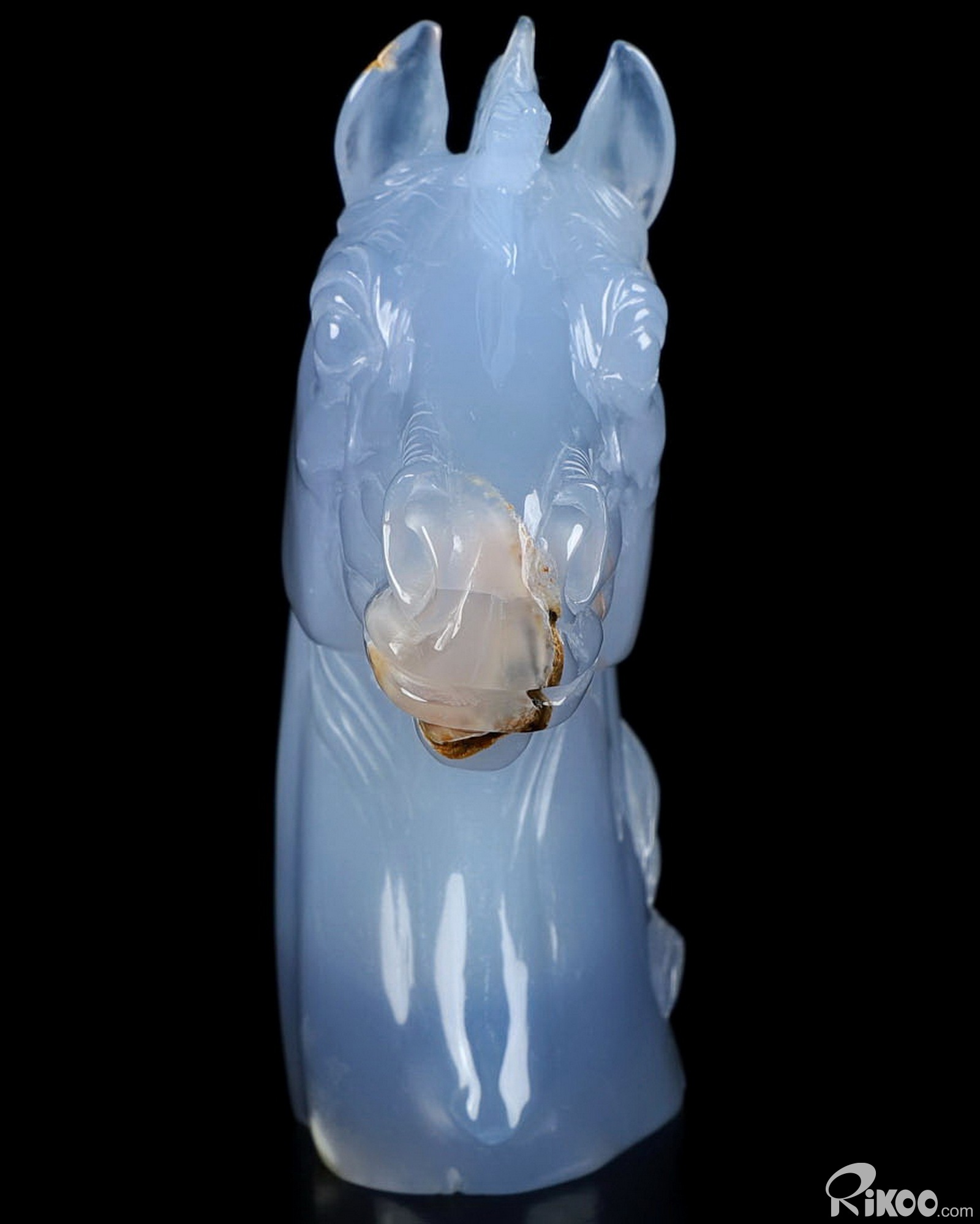 5.9" Blue Chalcedony Carved Crystal Horse Sculpture, Crystal Healing