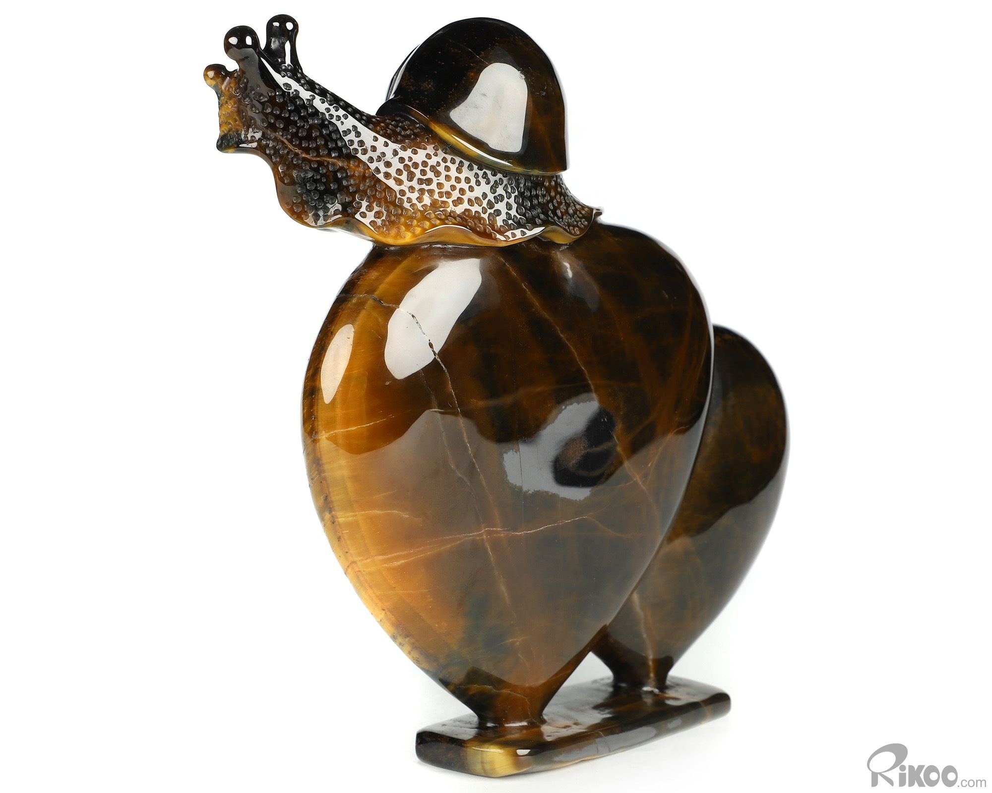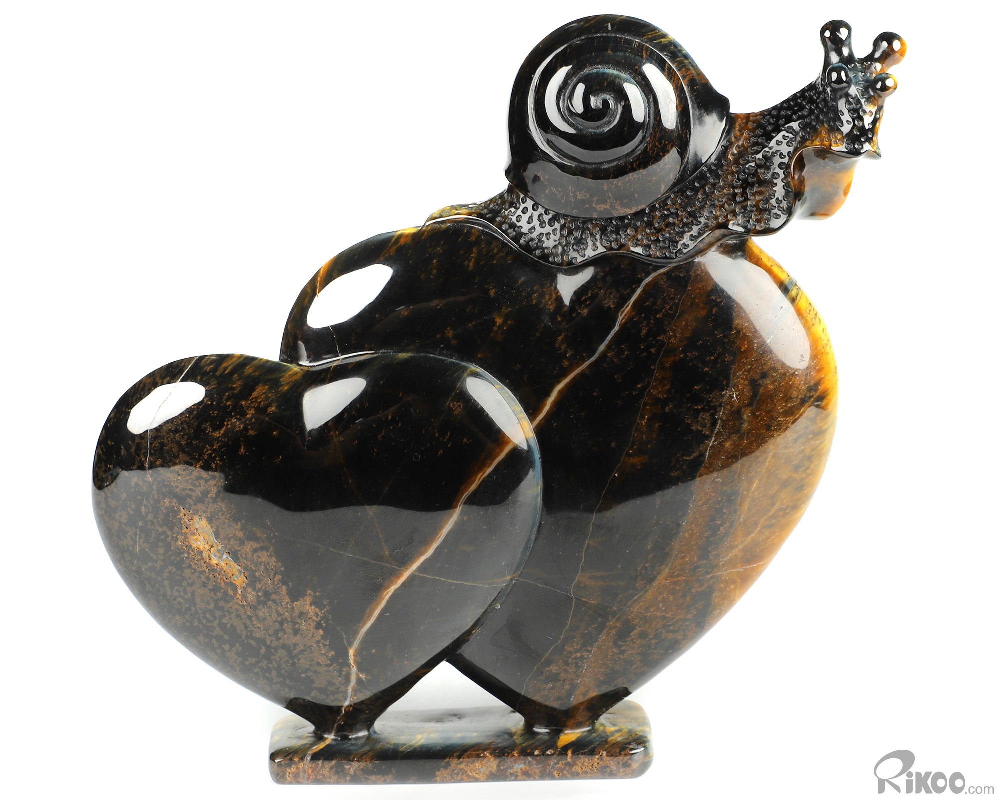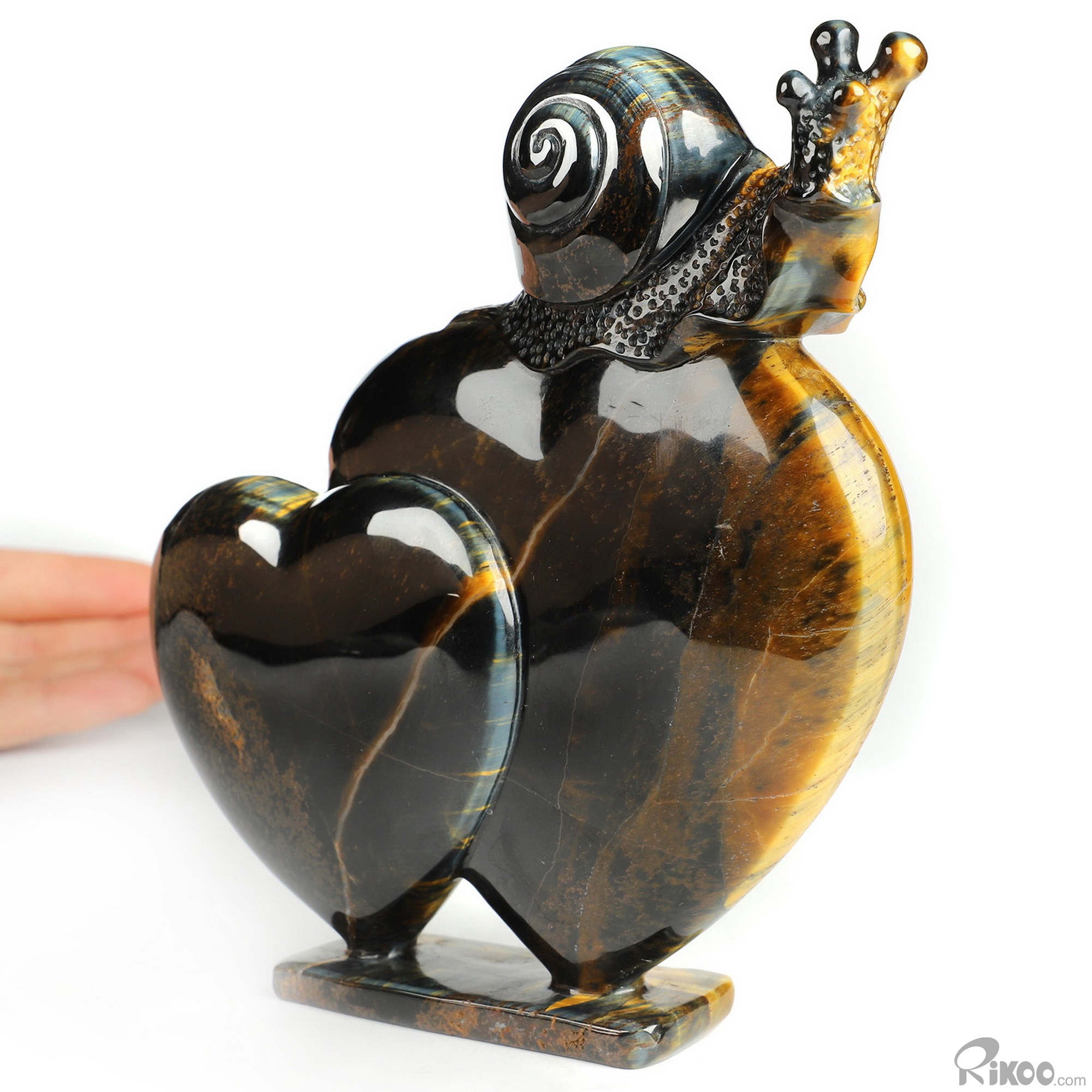 5.9" Blue & Gold Tiger's Eye Hand Carved Crystal Snail and Heart Sculpture, Crystal Healing