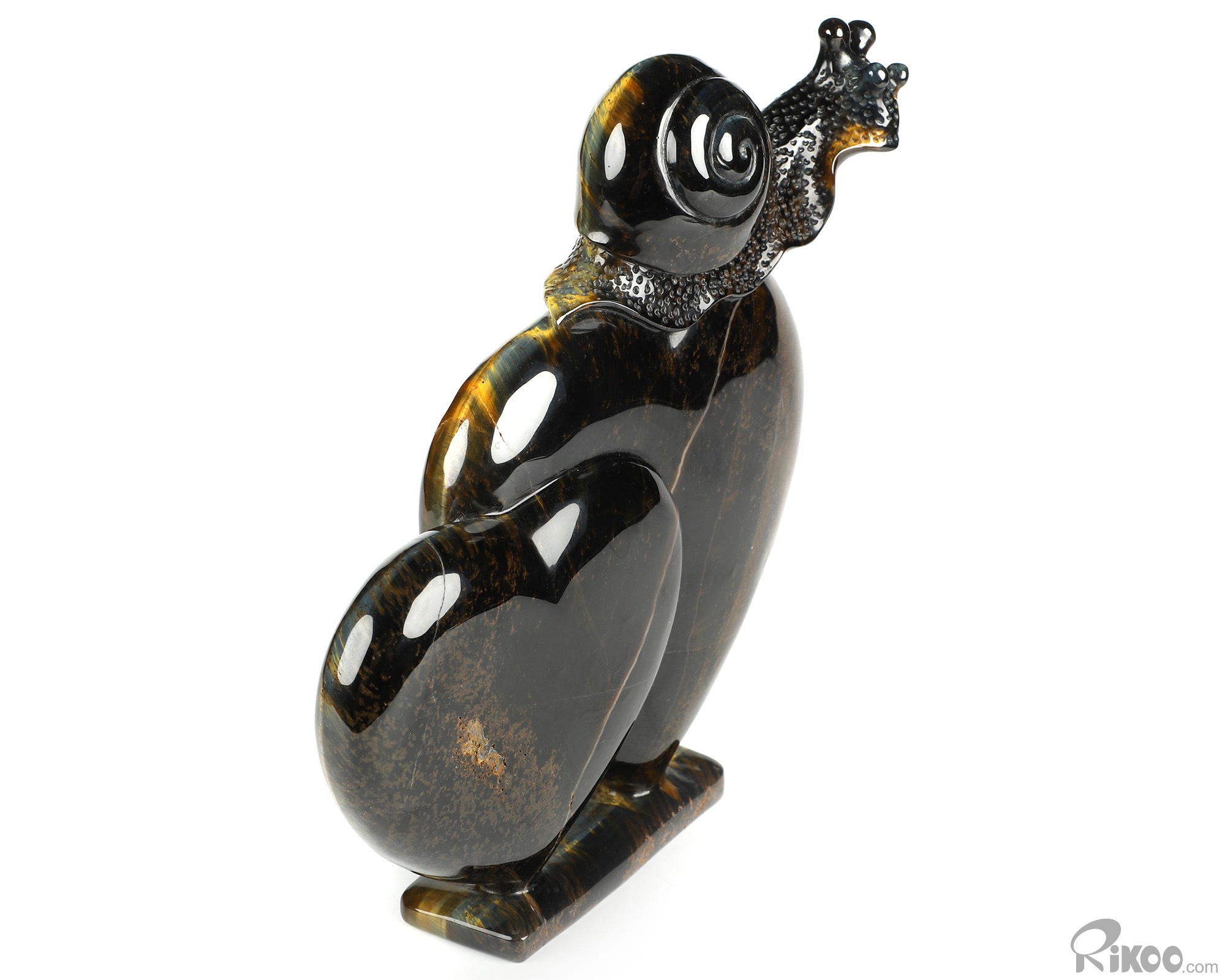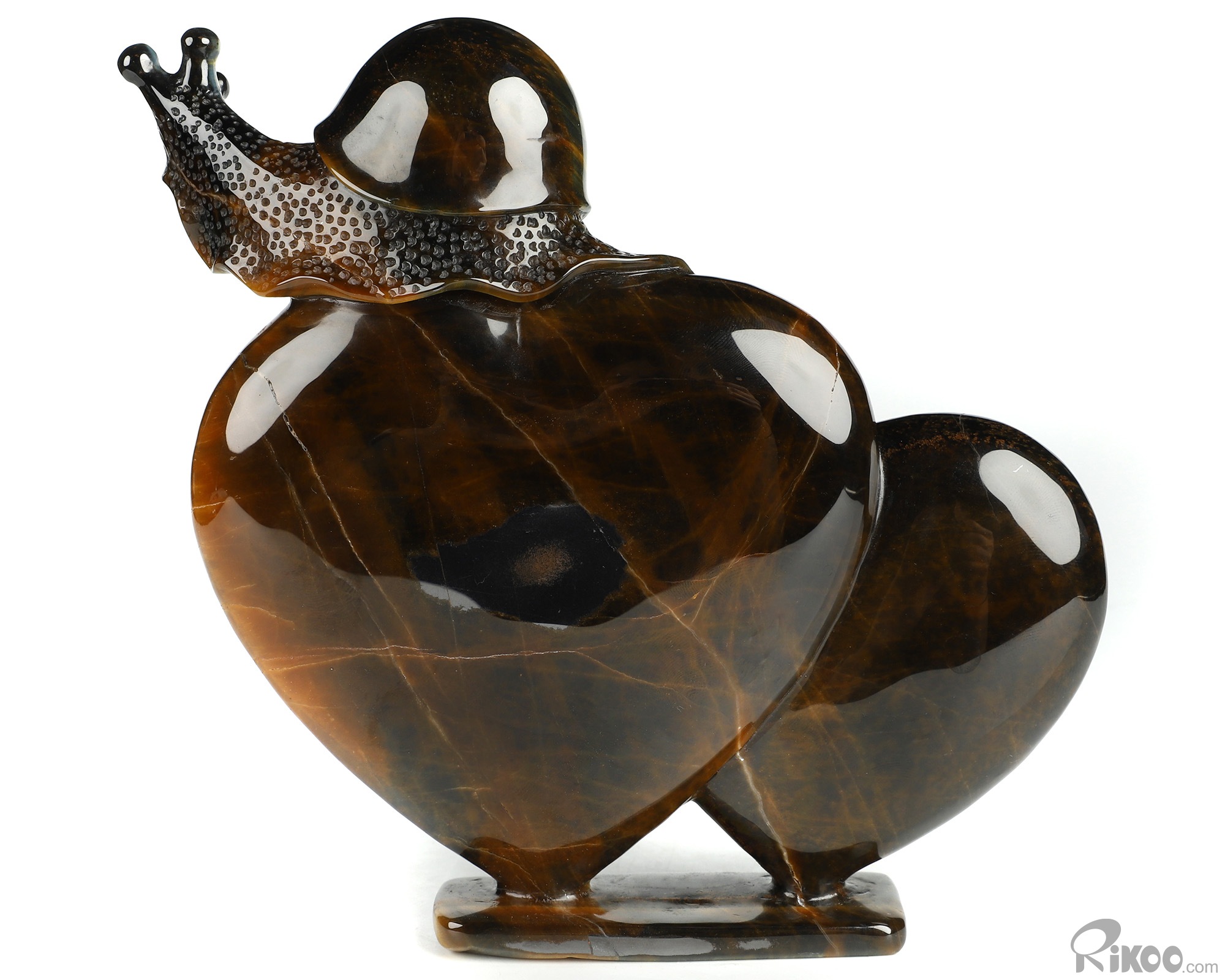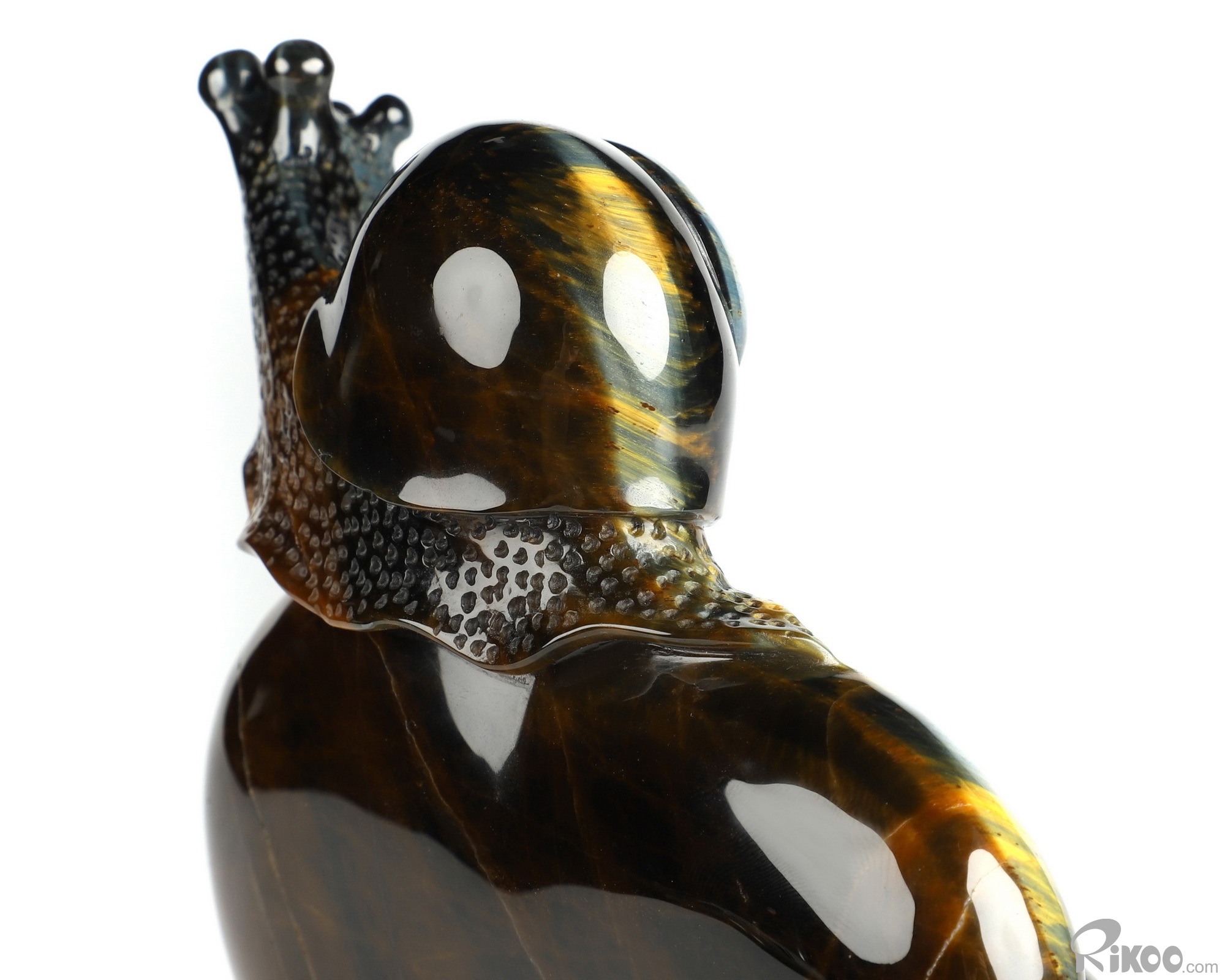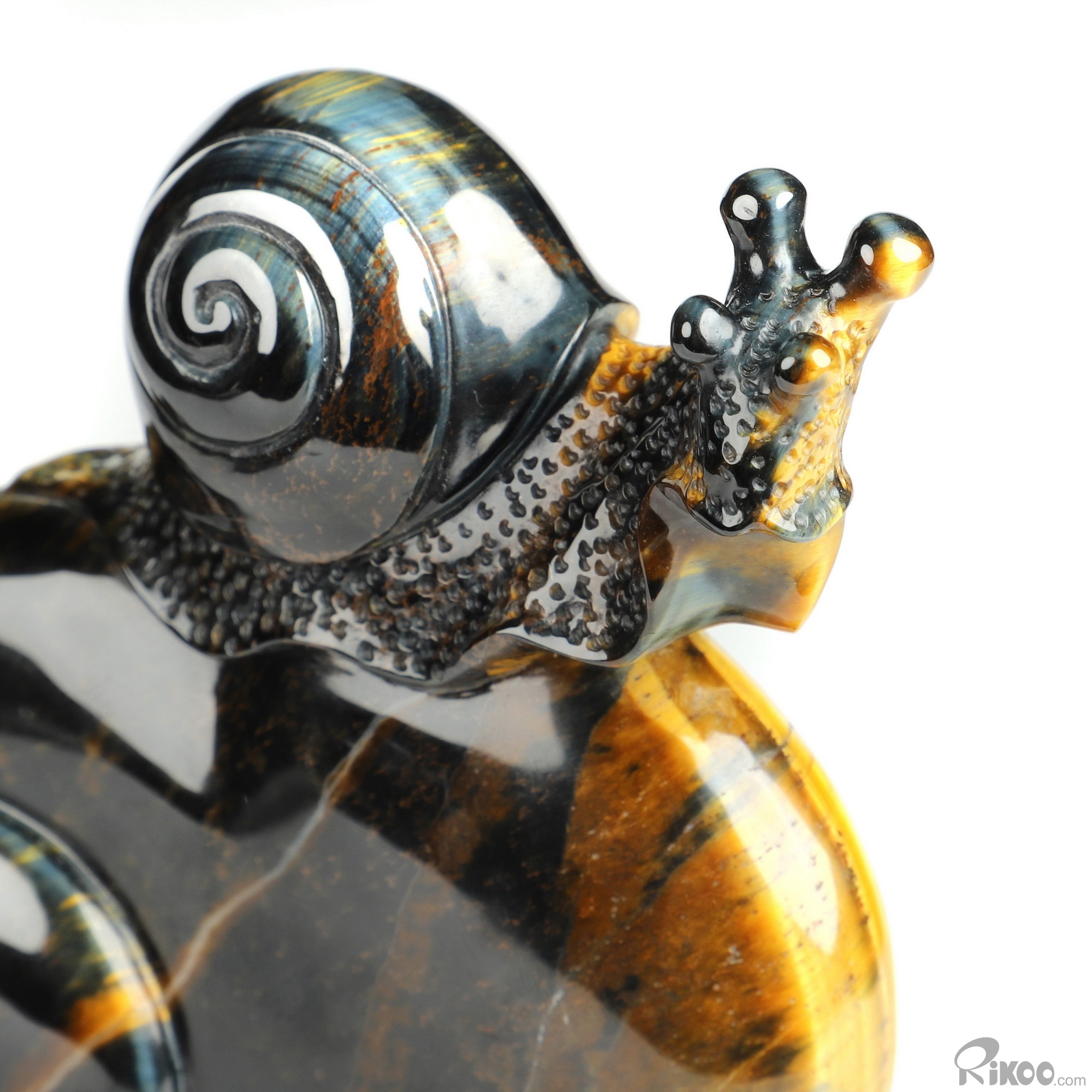 5.9" Blue & Gold Tiger's Eye Hand Carved Crystal Snail and Heart Sculpture, Crystal Healing