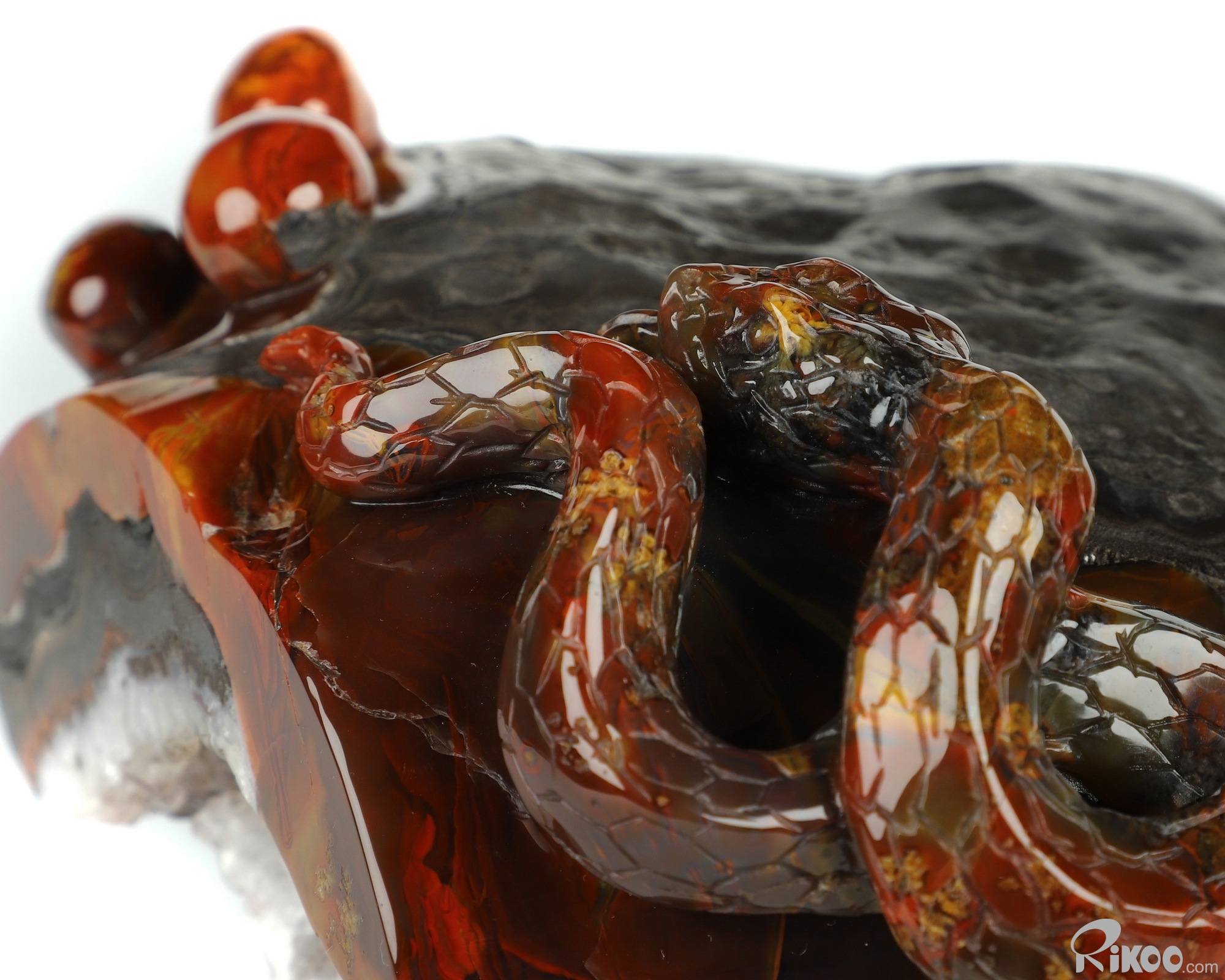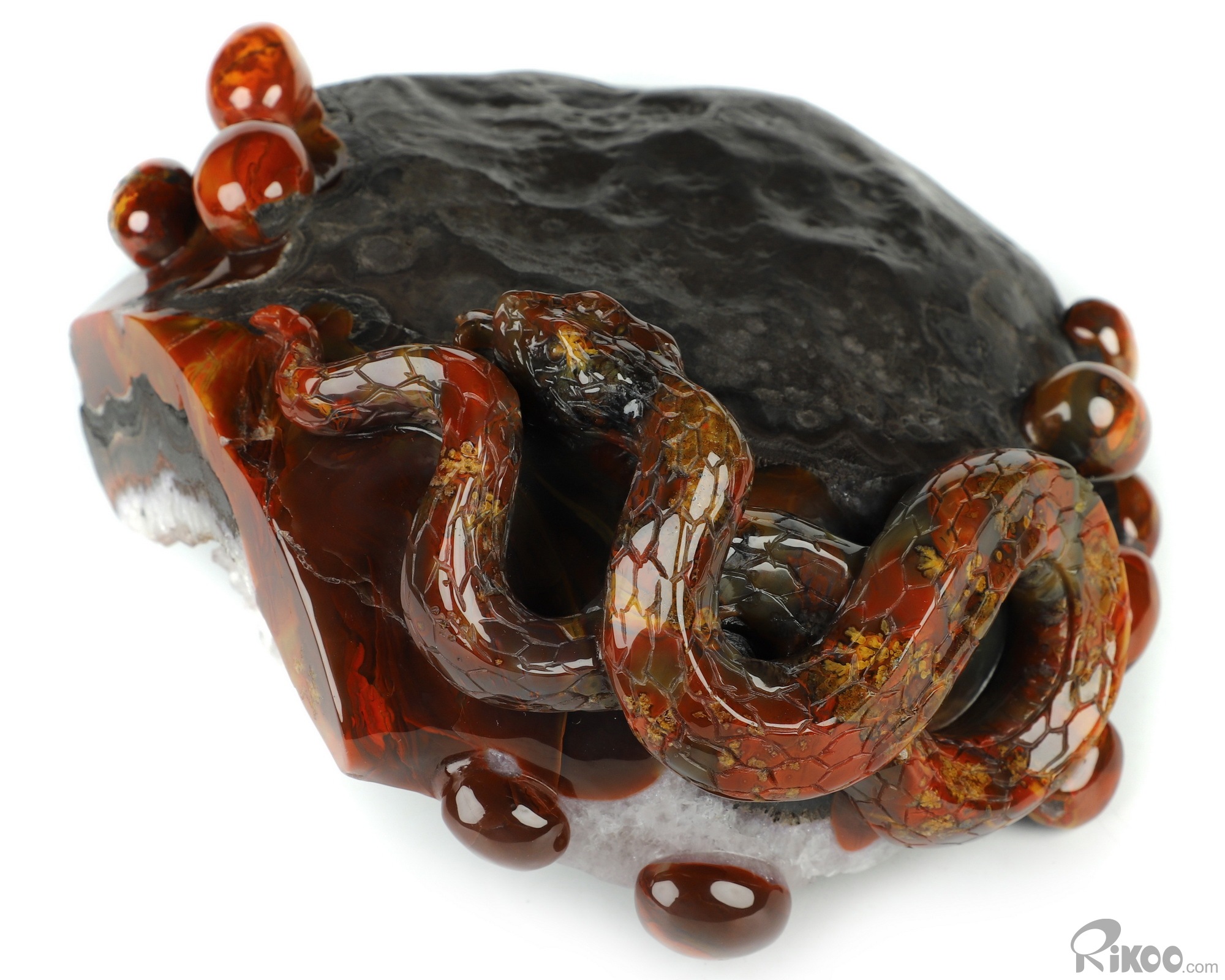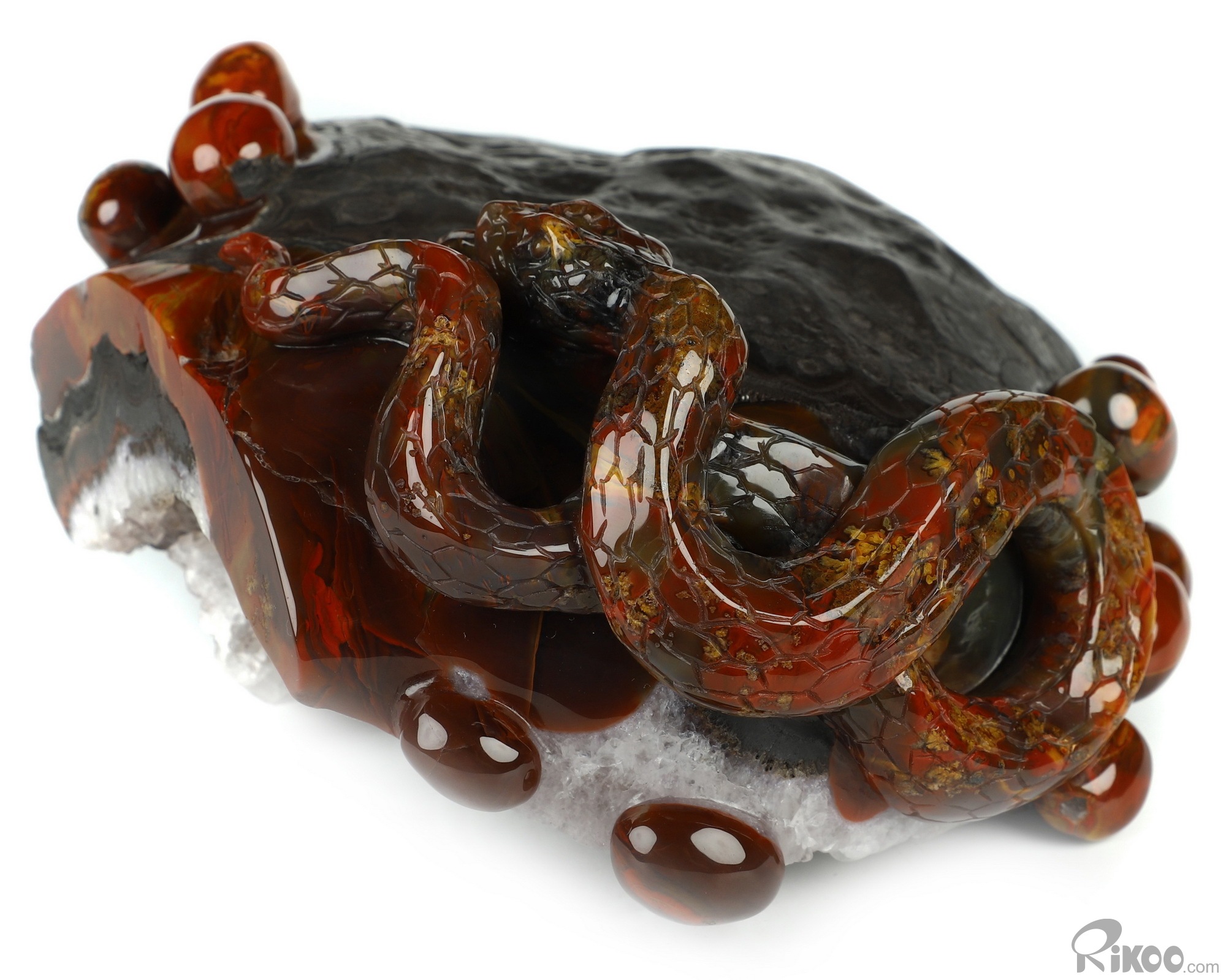 5.9" Empire Red Agate Hand Carved Crystal Snake Sculpture, Crystal Healing