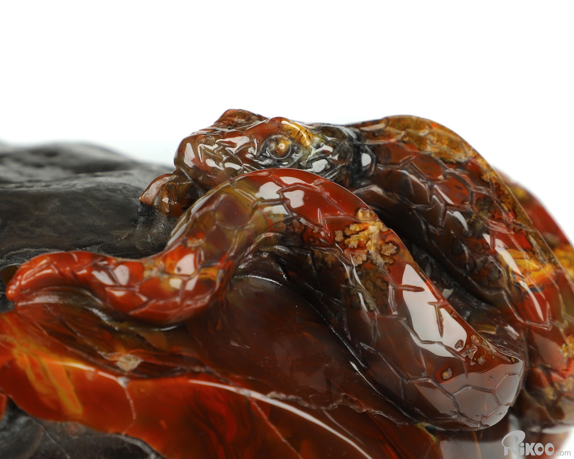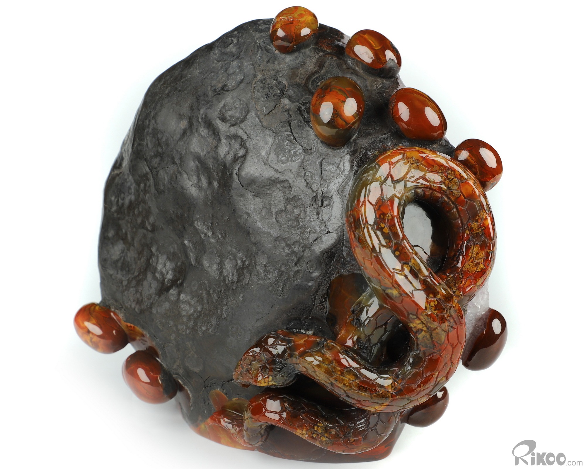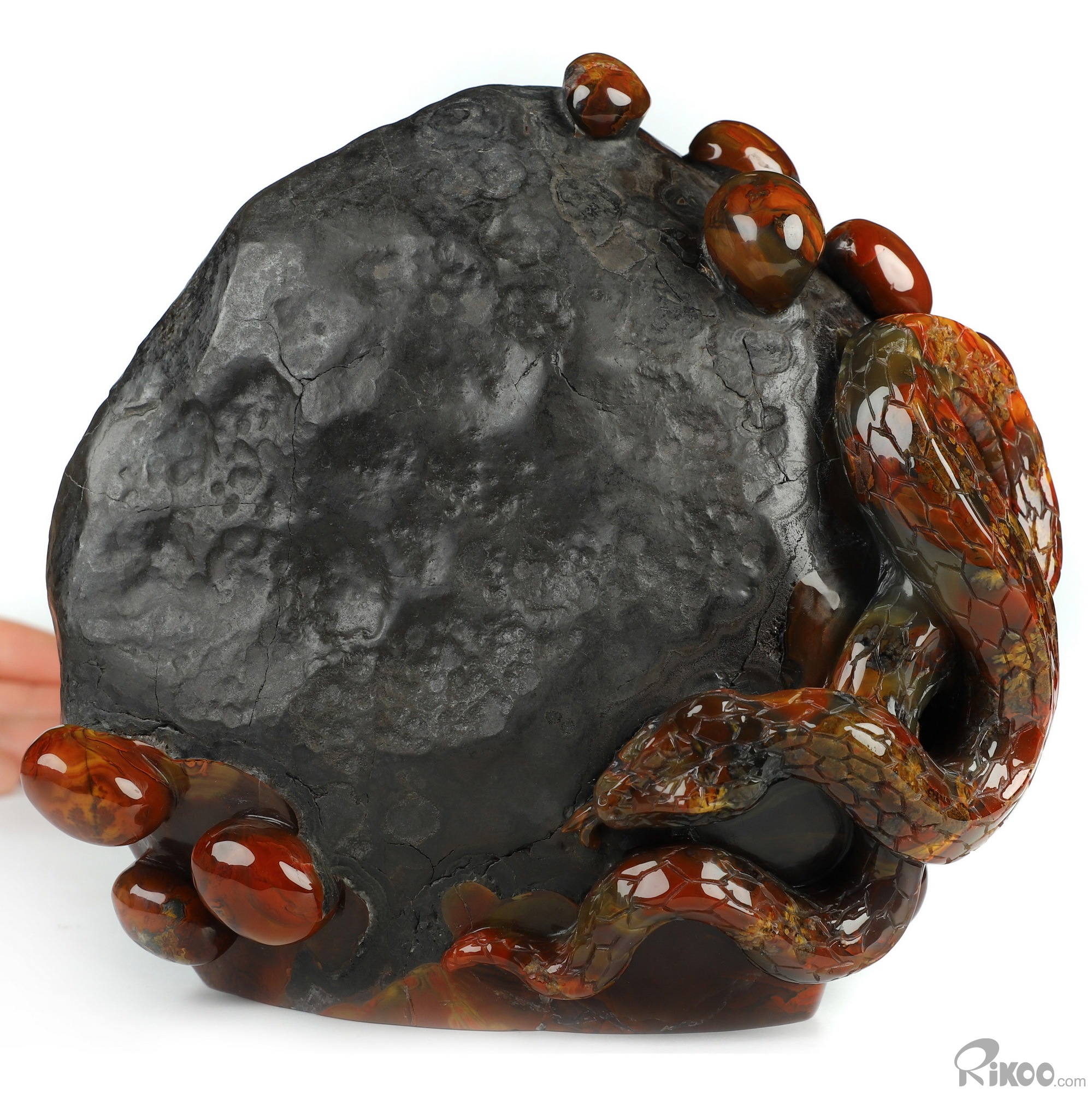 5.9" Empire Red Agate Hand Carved Crystal Snake Sculpture, Crystal Healing