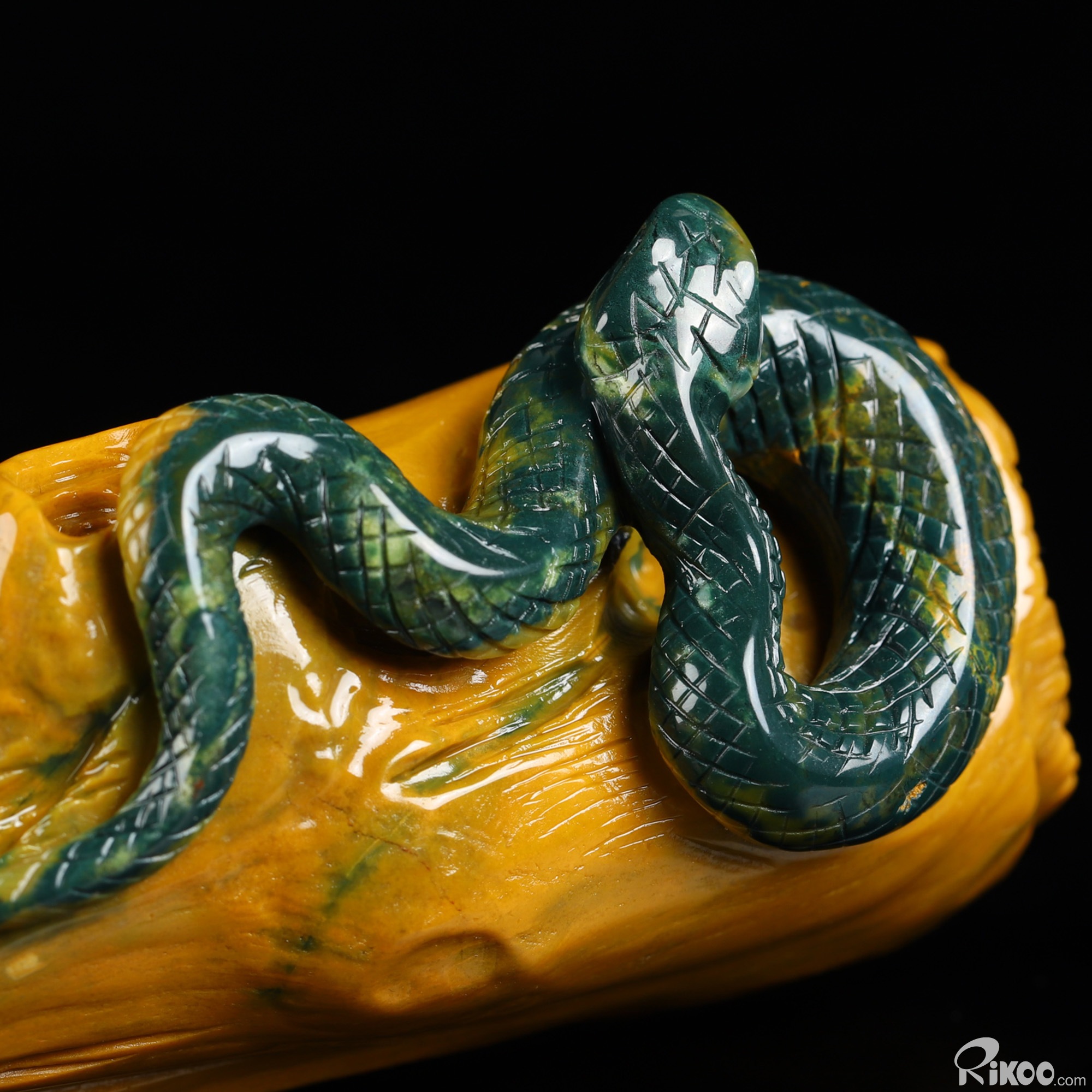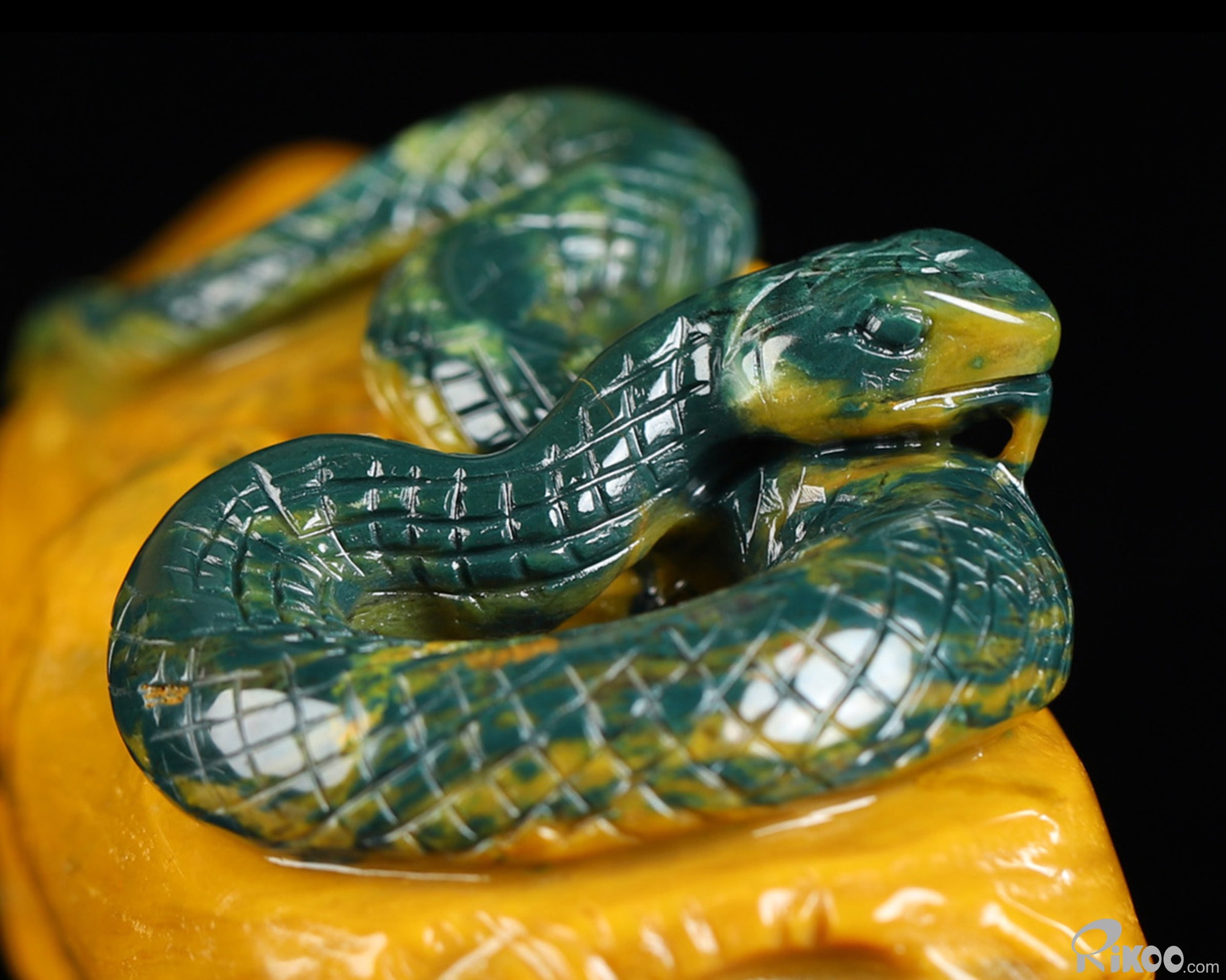 5.9" Indian Agate Hand Carved Crystal Snake Sculpture, Crystal Healing