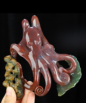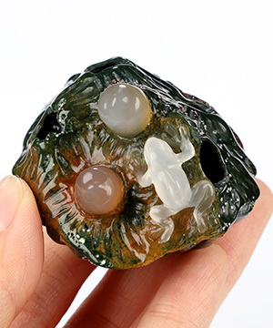 You are looking at an Indian Agate sculpture. The sculpture is 5.9 inches long.