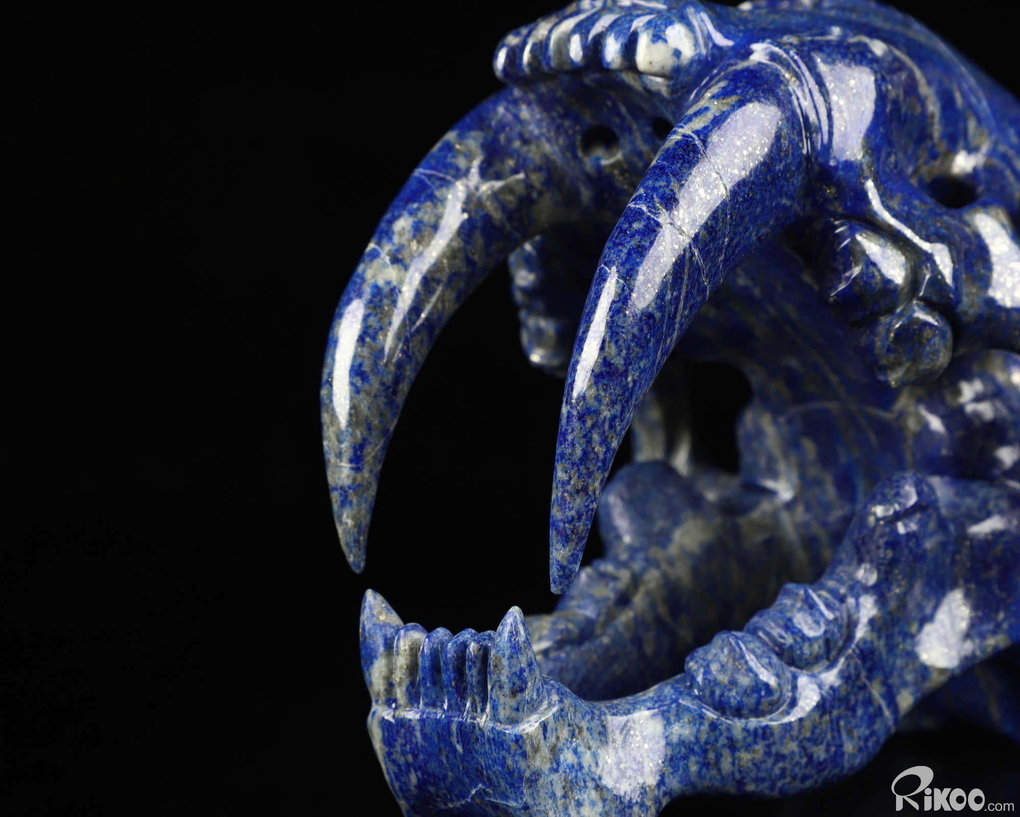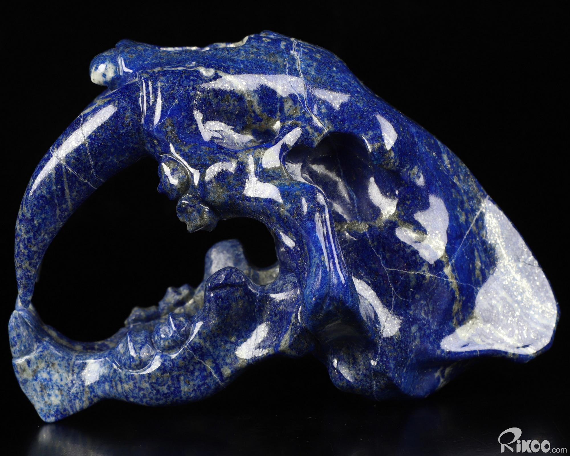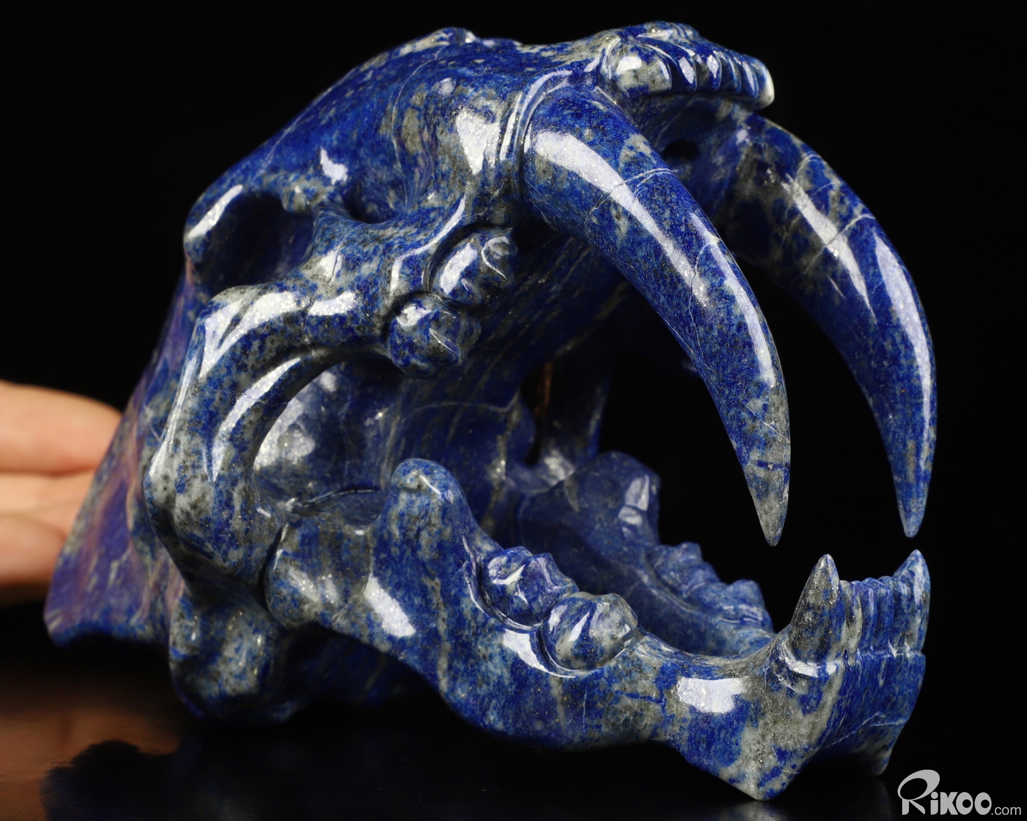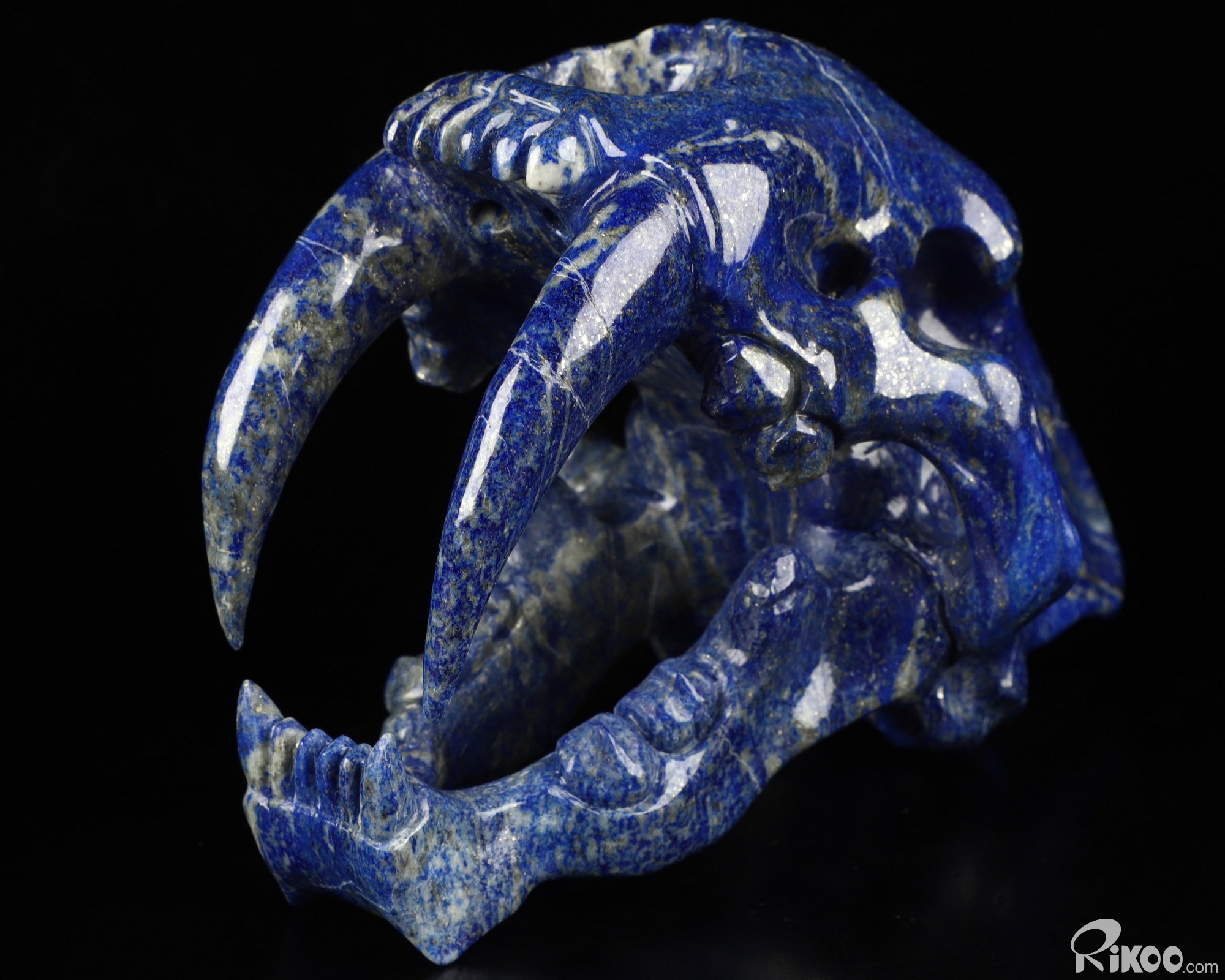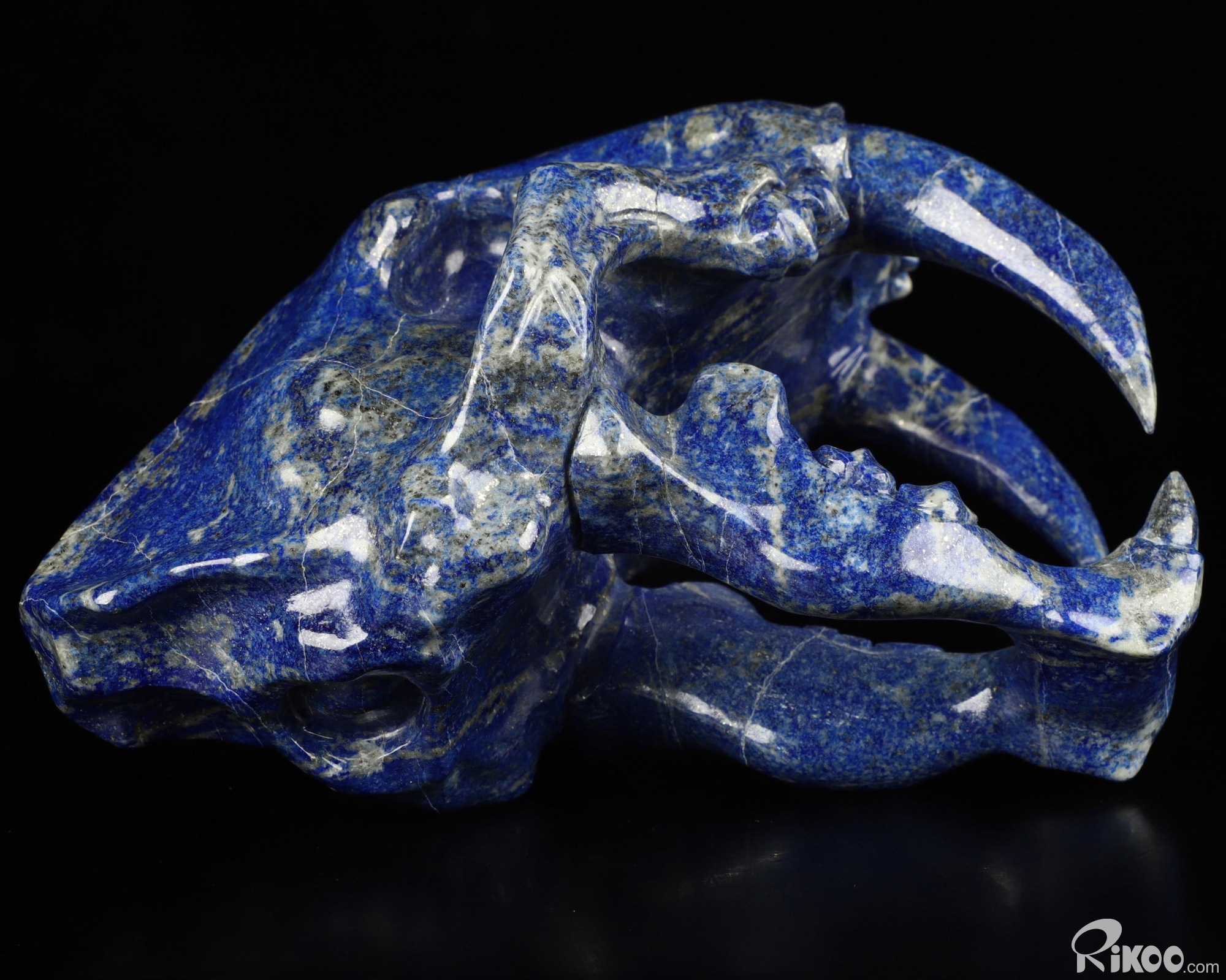 5.9" Lapis Lazuli Carved Smilodon SABER-TOOTHED Tiger/Cat Skull, Crystal Healing