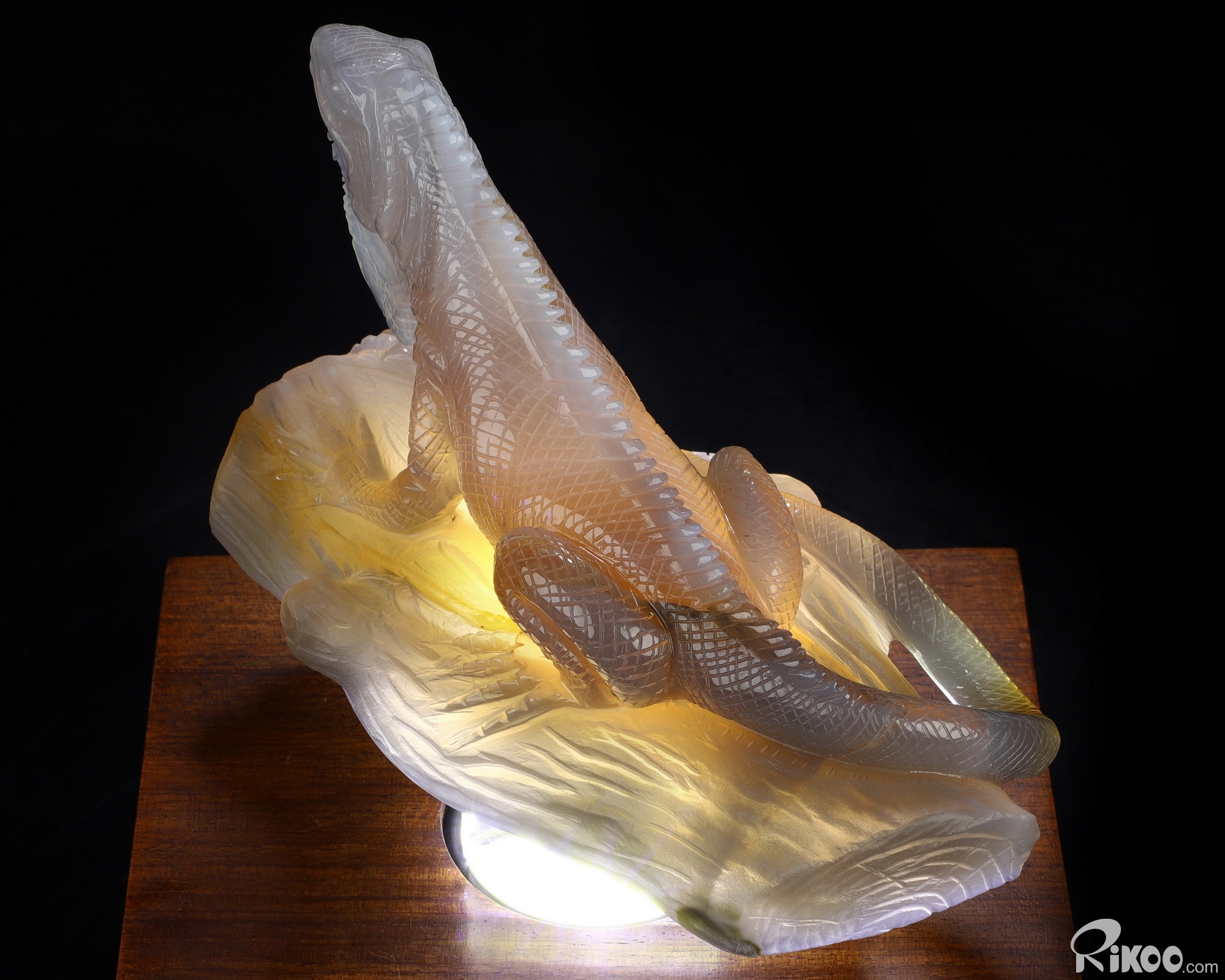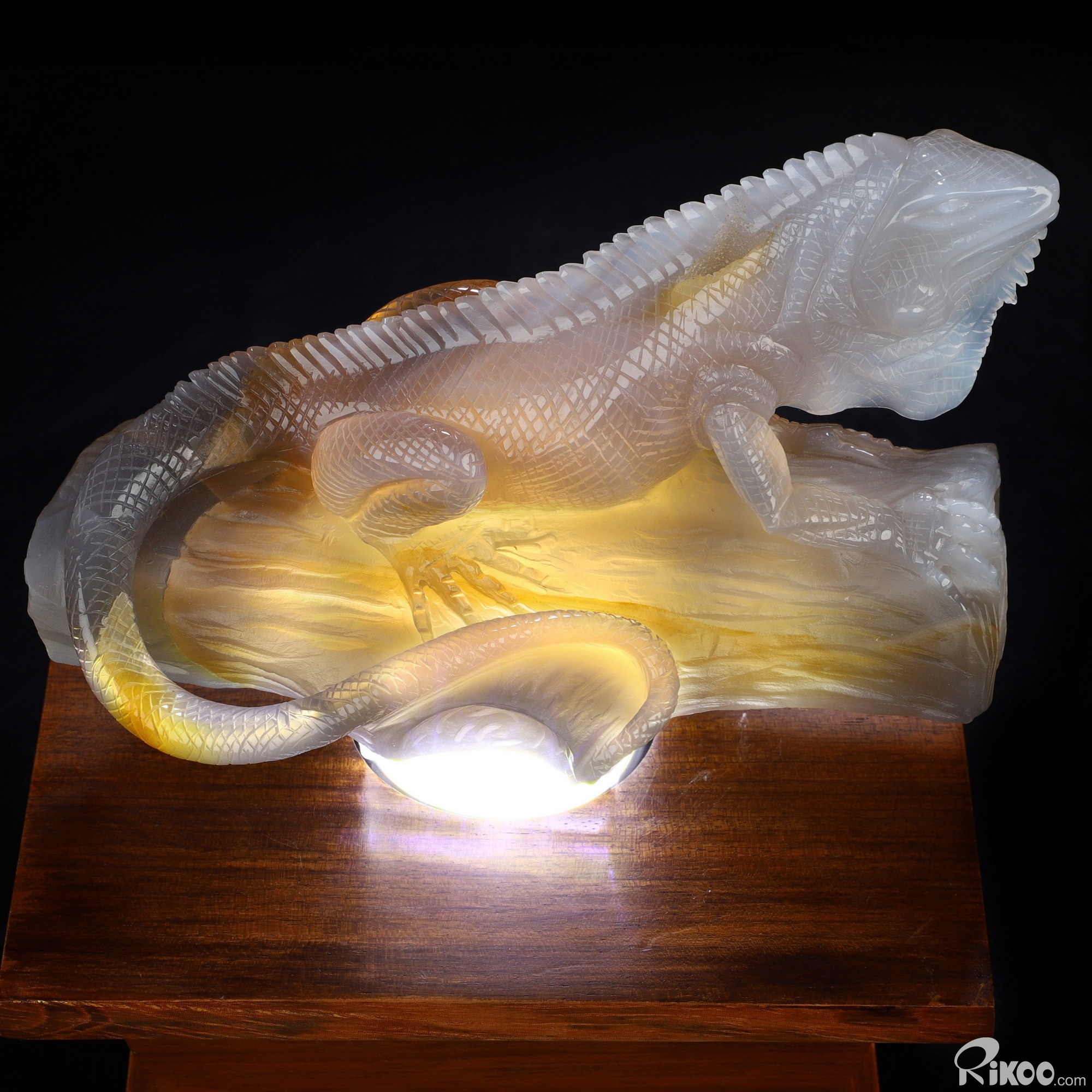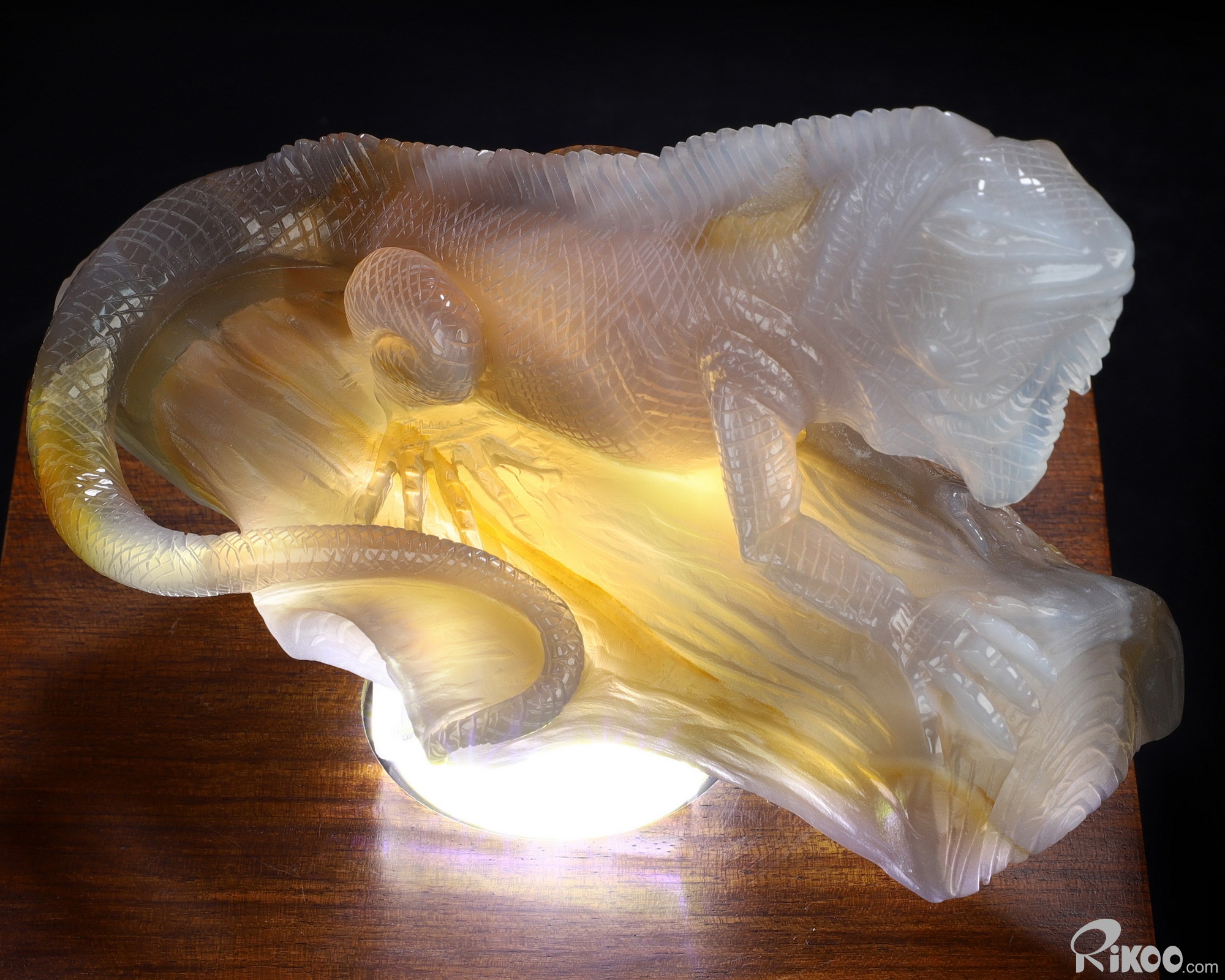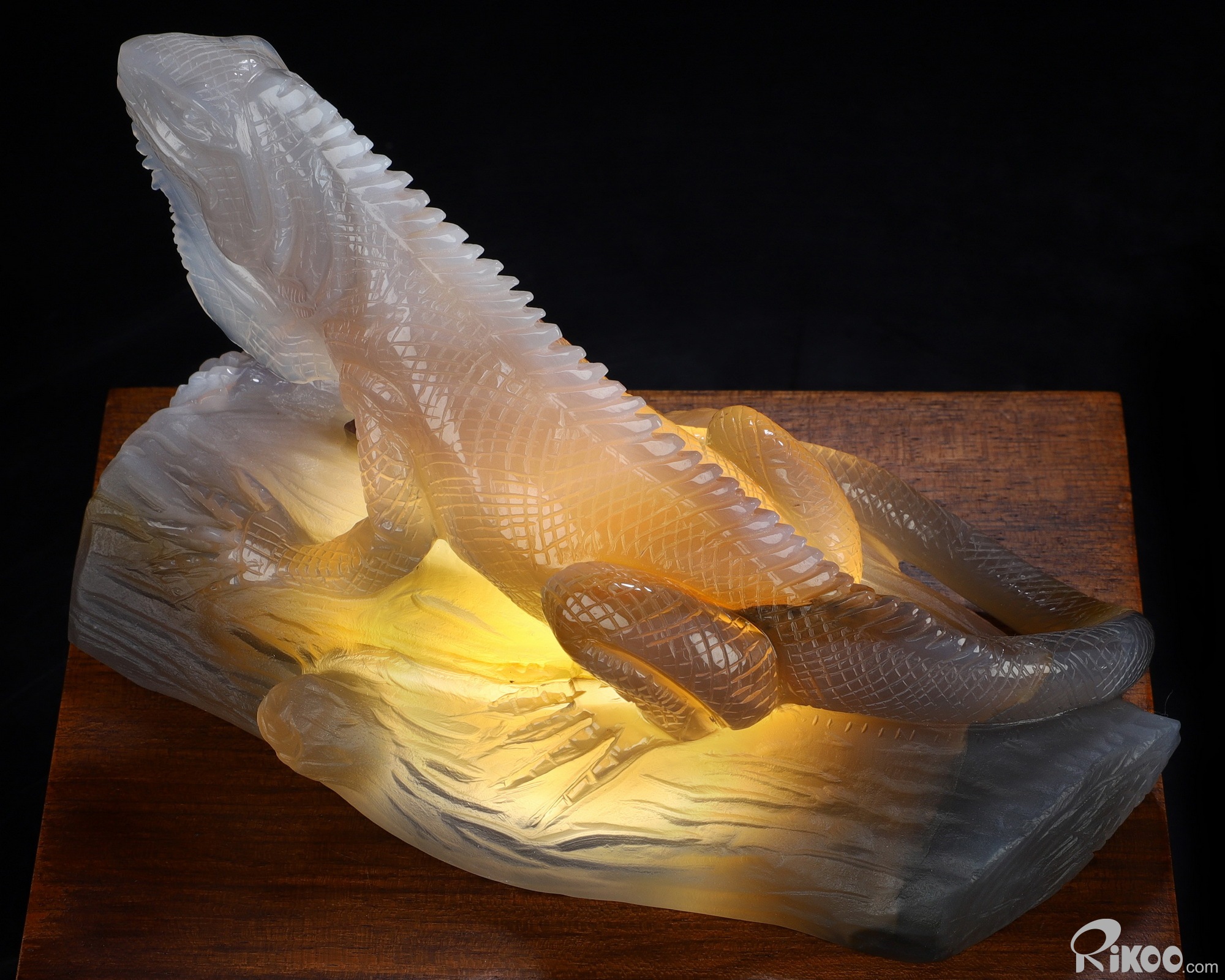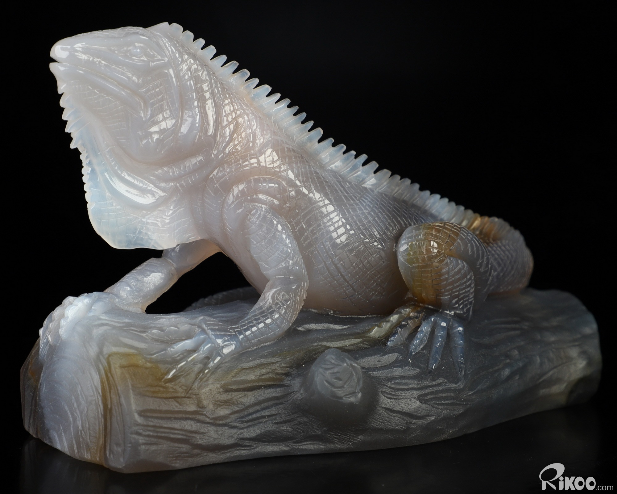 5.9" Premium Brazilian Agate Hand Carved Crystal Lizard Sculpture, Crystal Healing