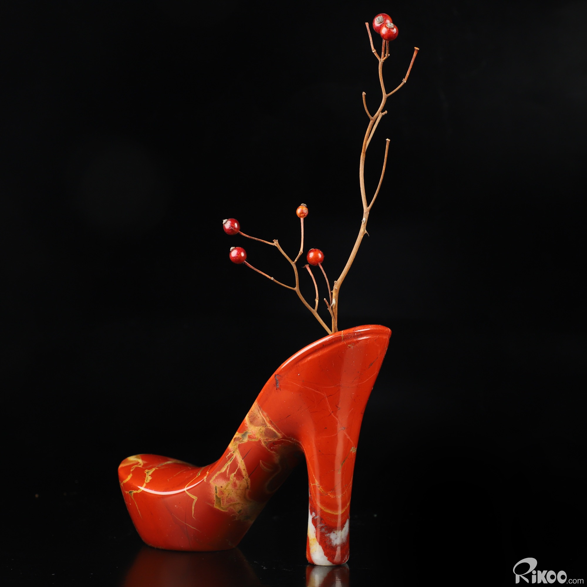 5.9" Red Jasper Hand Carved Heel Crystal Vase Sculpture, Crystal Healing