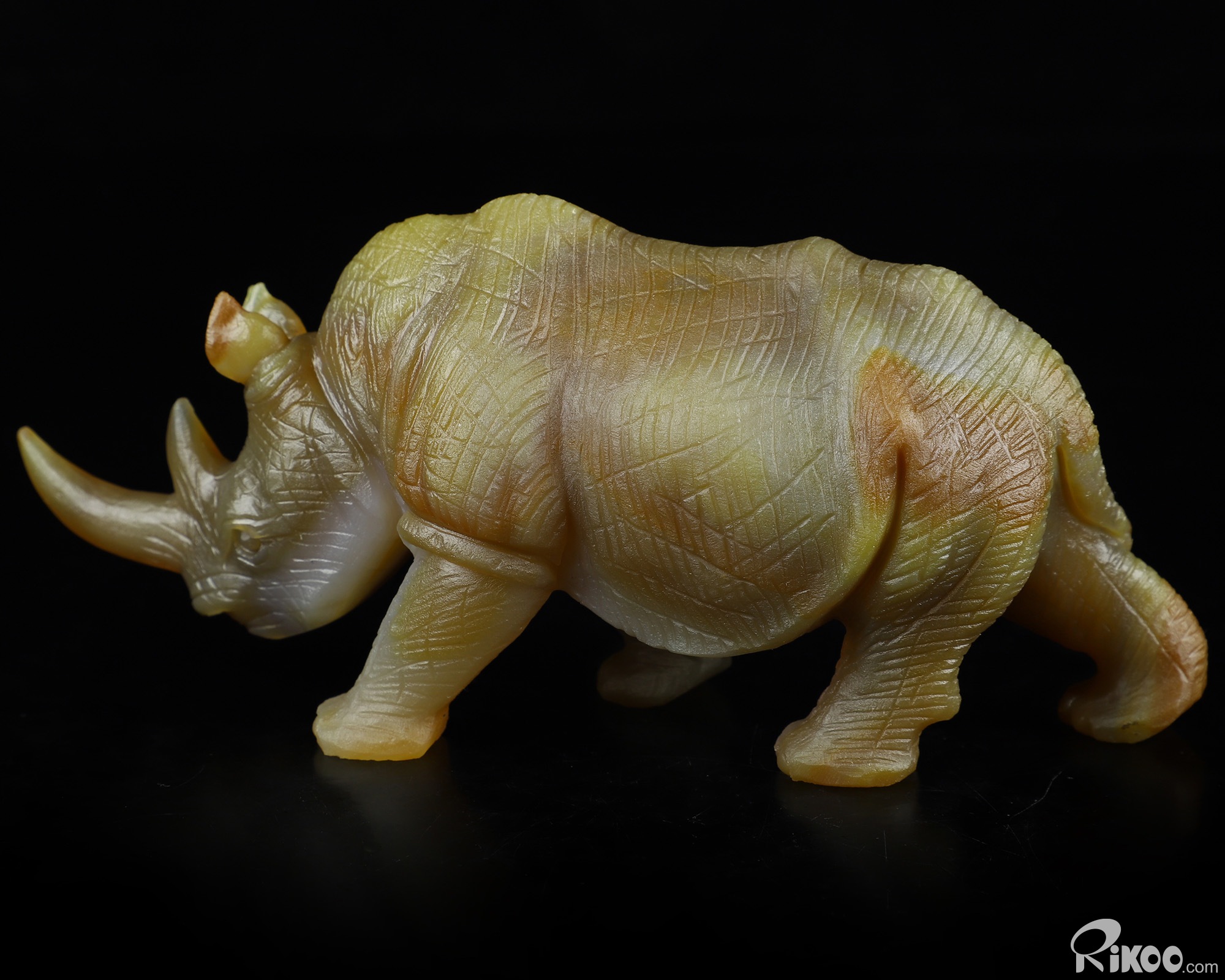 6.0" Premium Brazilian Agate Carved Crystal Rhinoceros Sculpture, Realistic