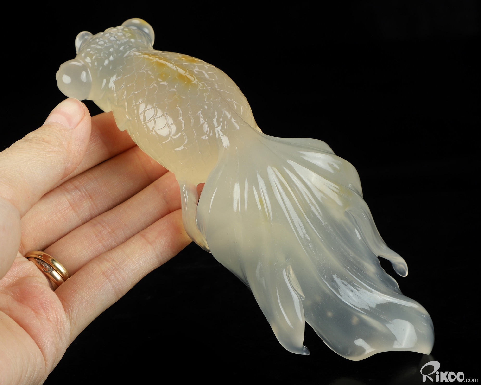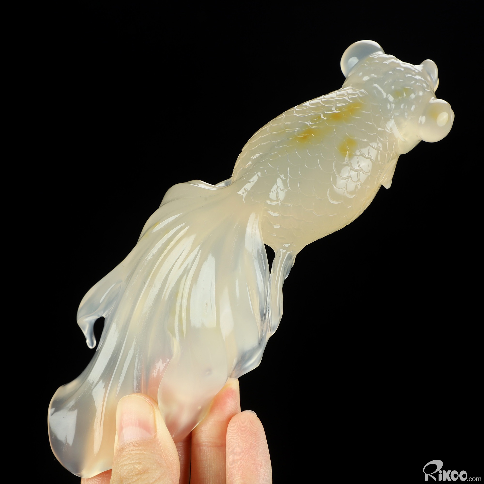 6.1" Agate Hand Carved Crystal Goldfish Sculpture, Crystal Healing
