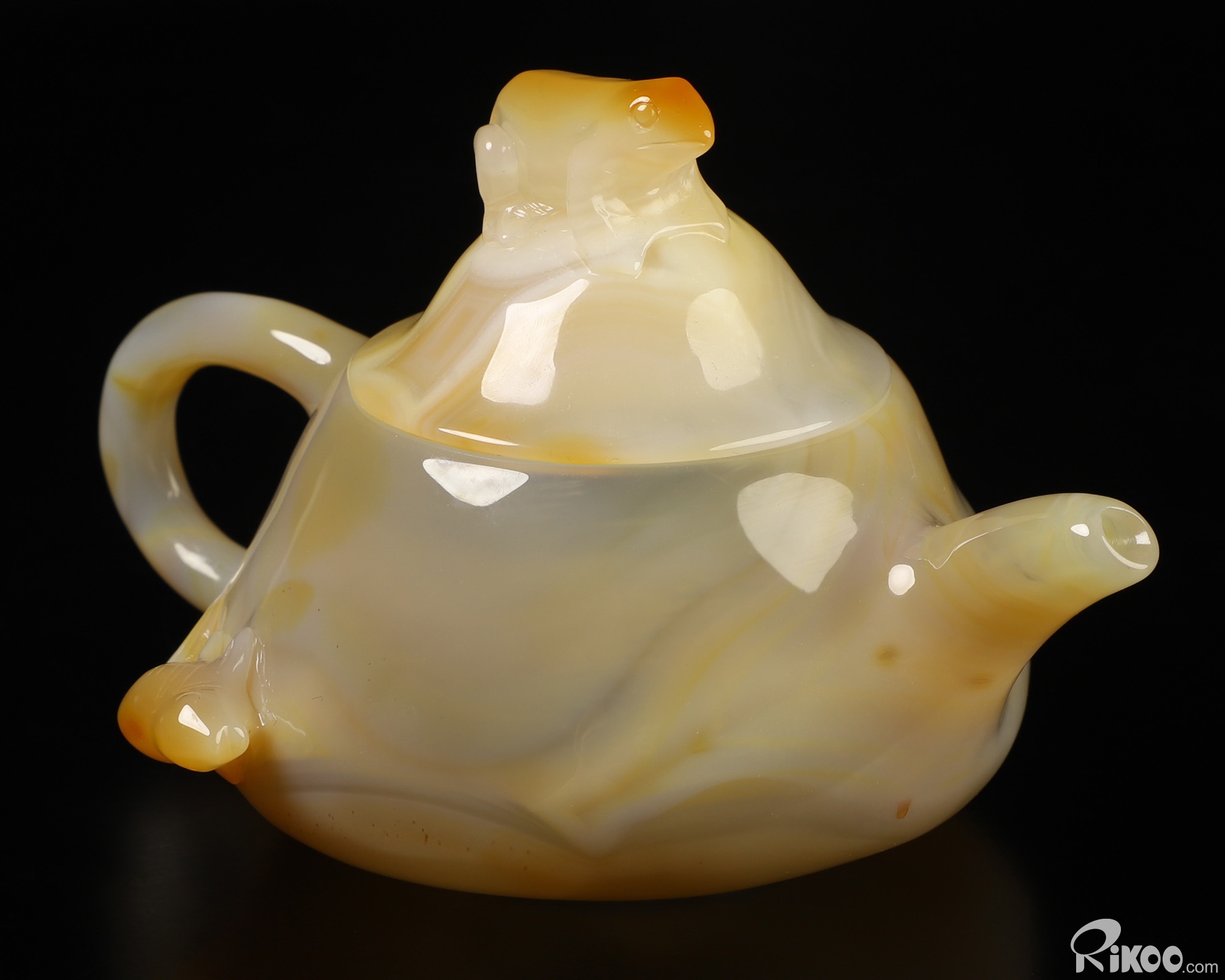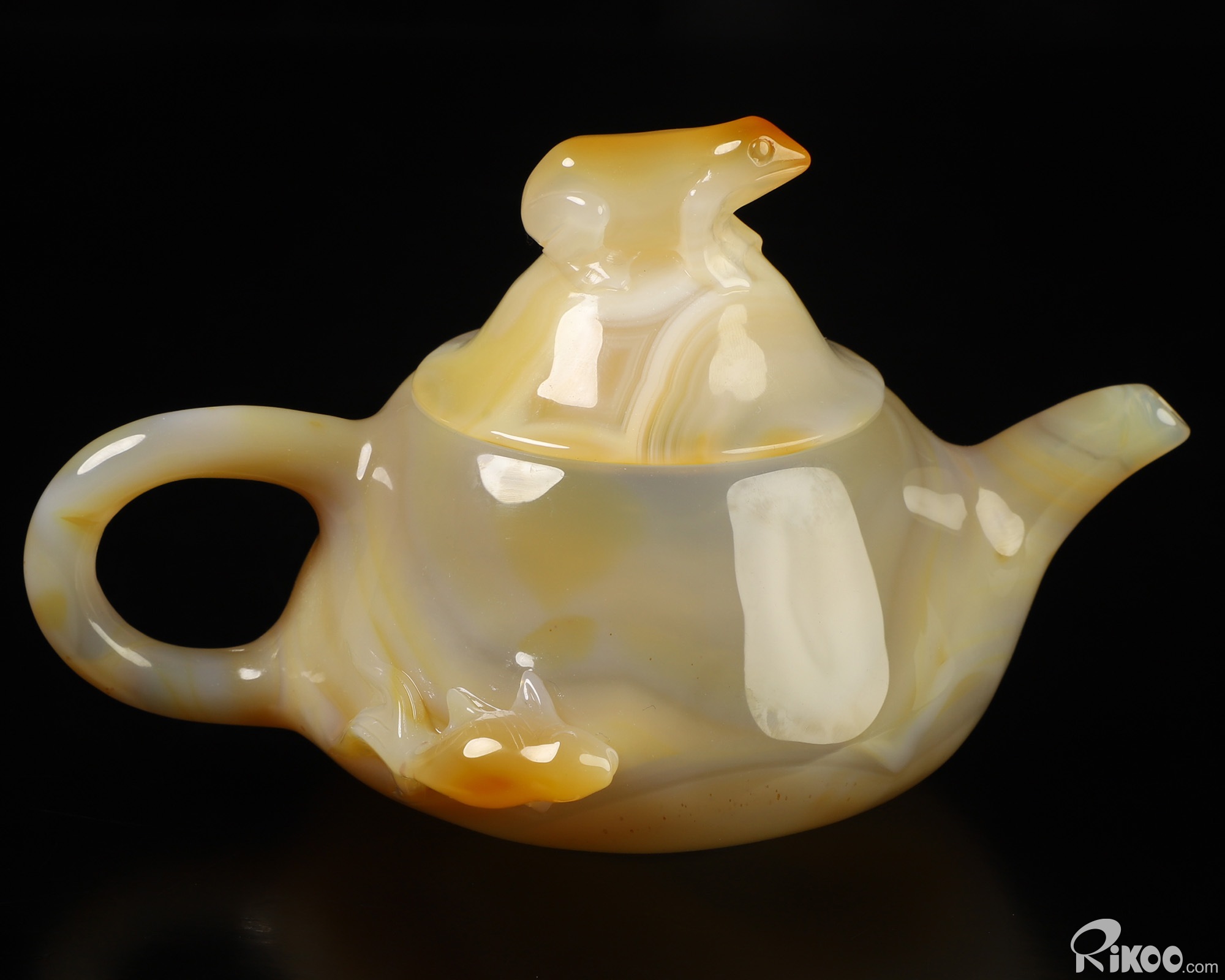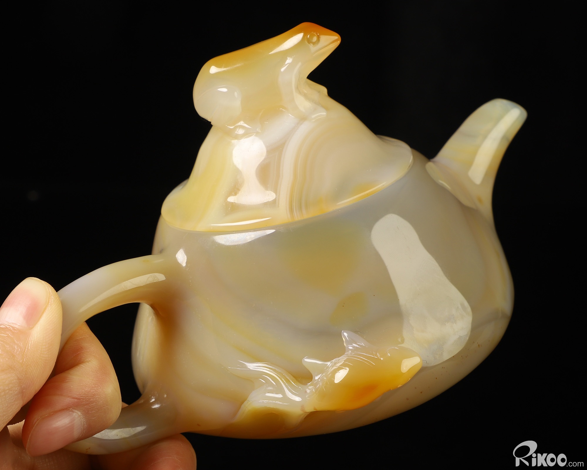 6.1" Agate Hand Carved Crystal Pot with Frog and Fish, Crystal Healing