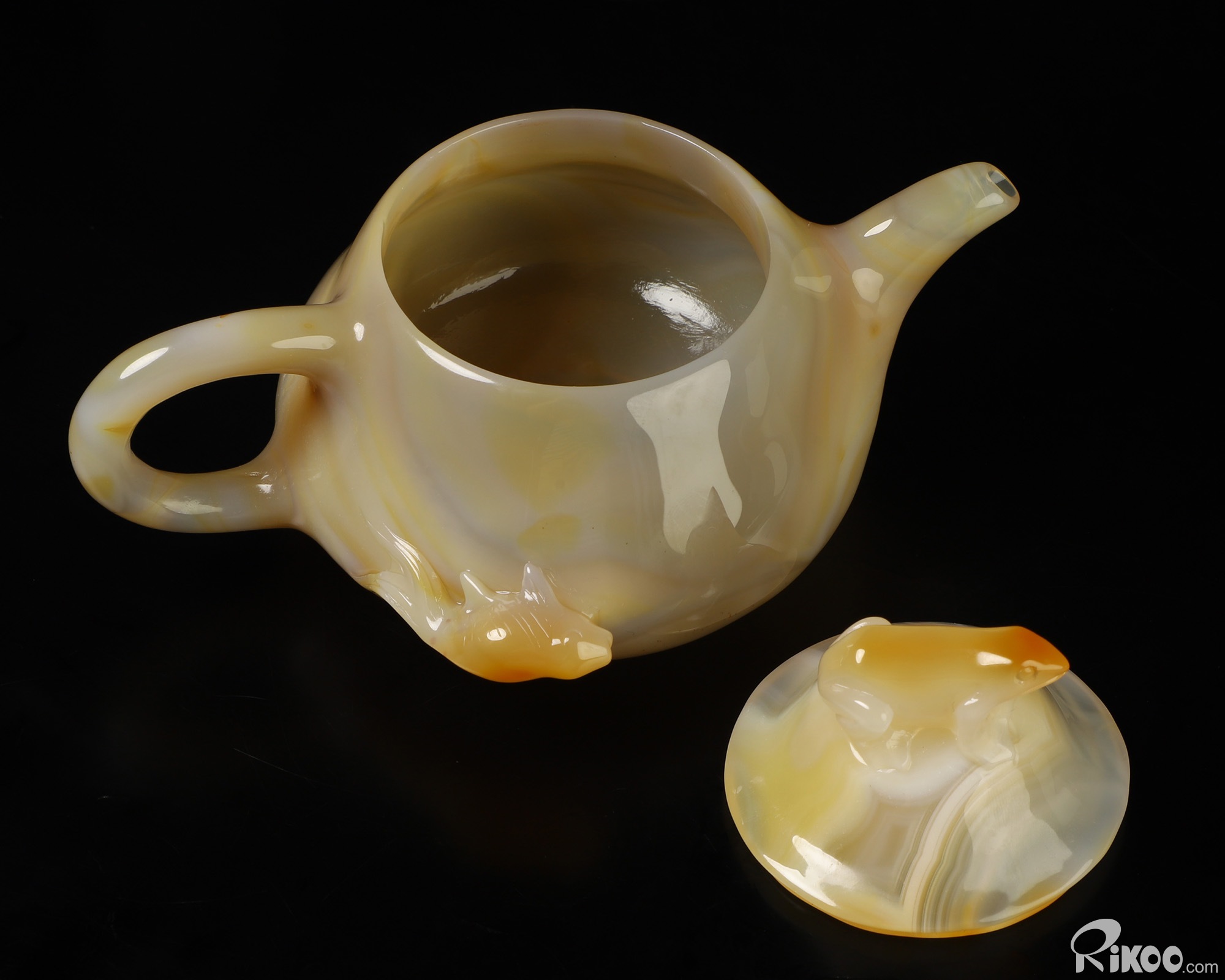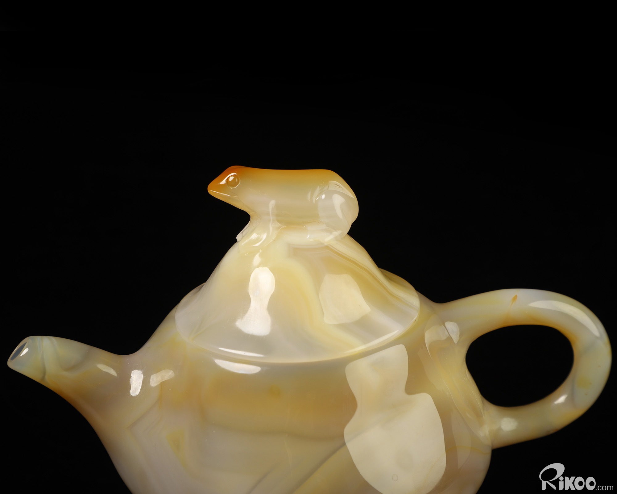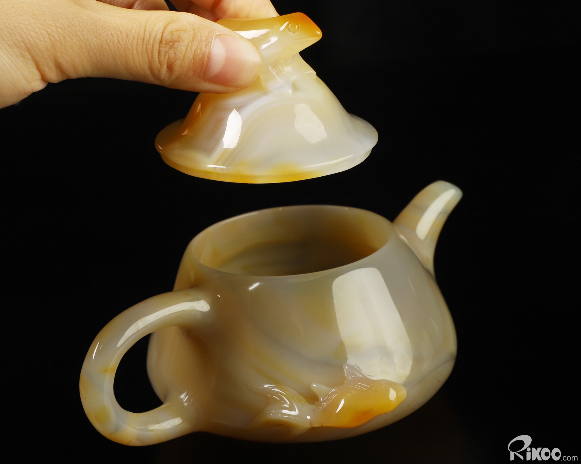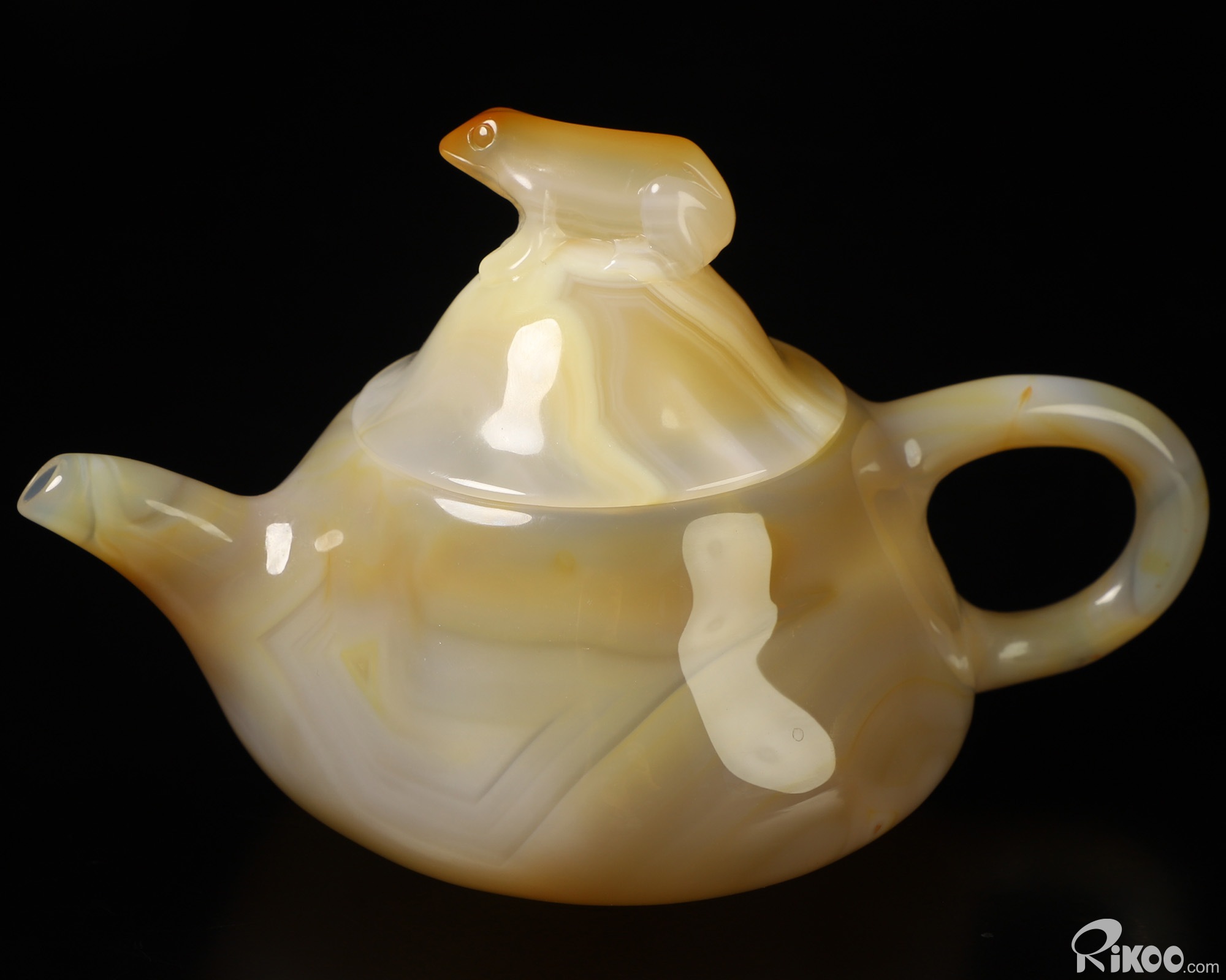 6.1" Agate Hand Carved Crystal Pot with Frog and Fish, Crystal Healing
