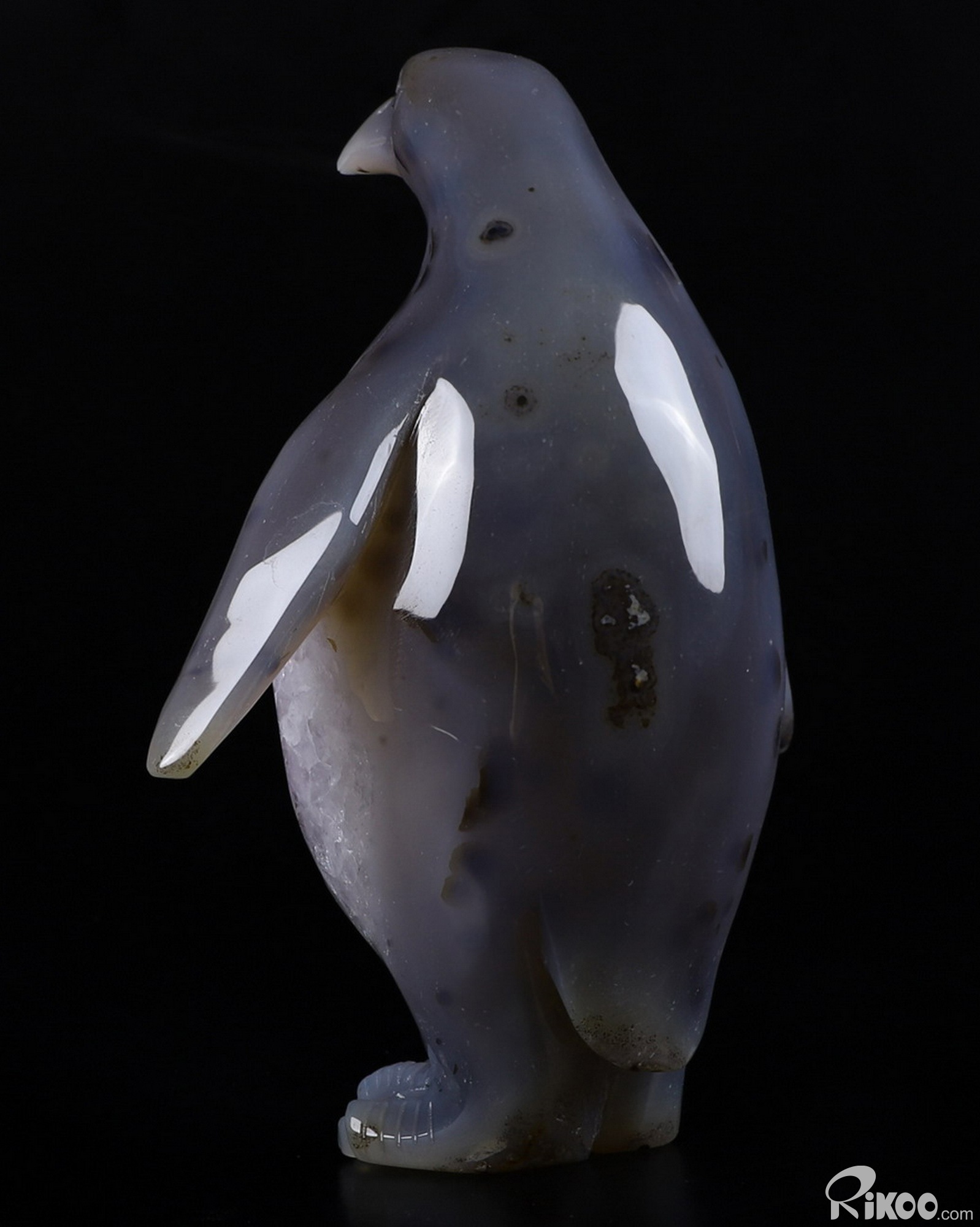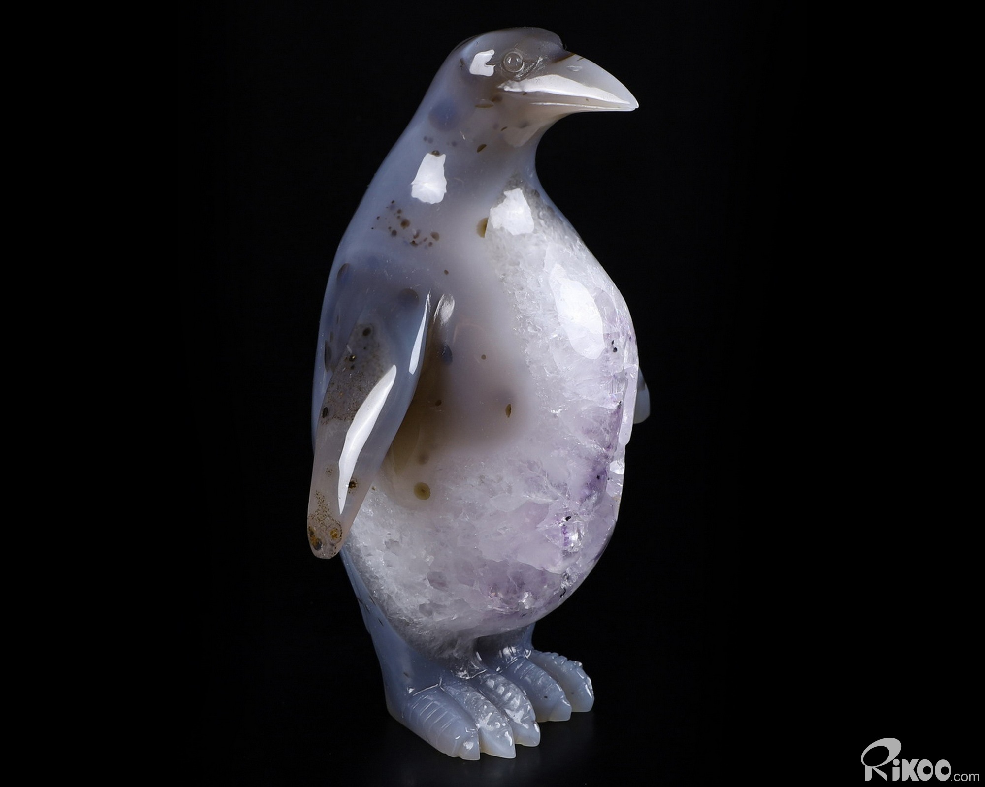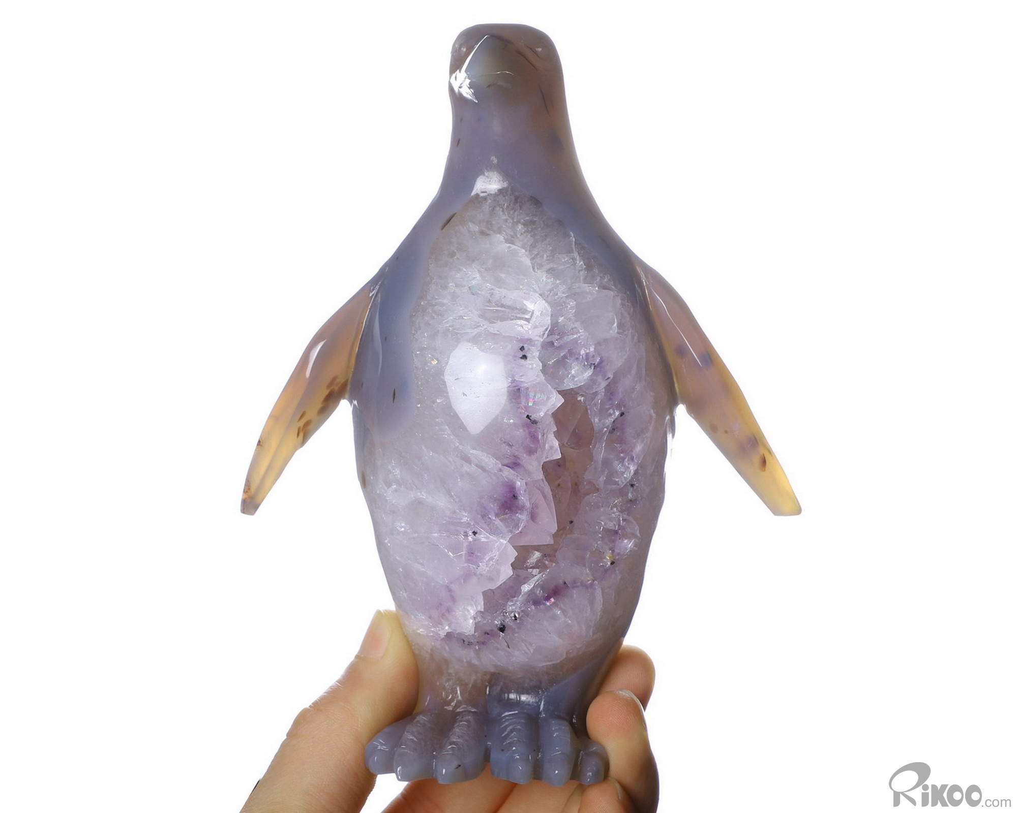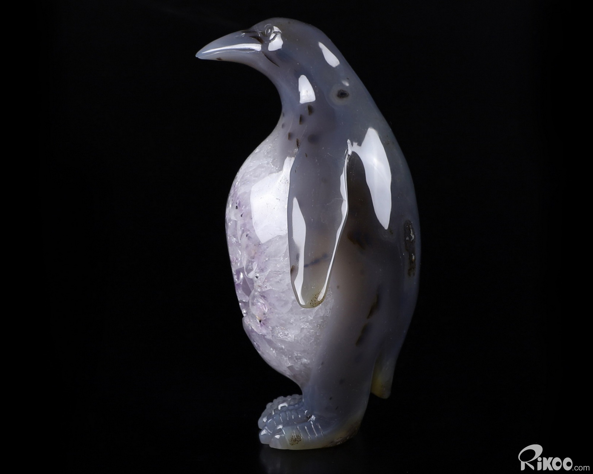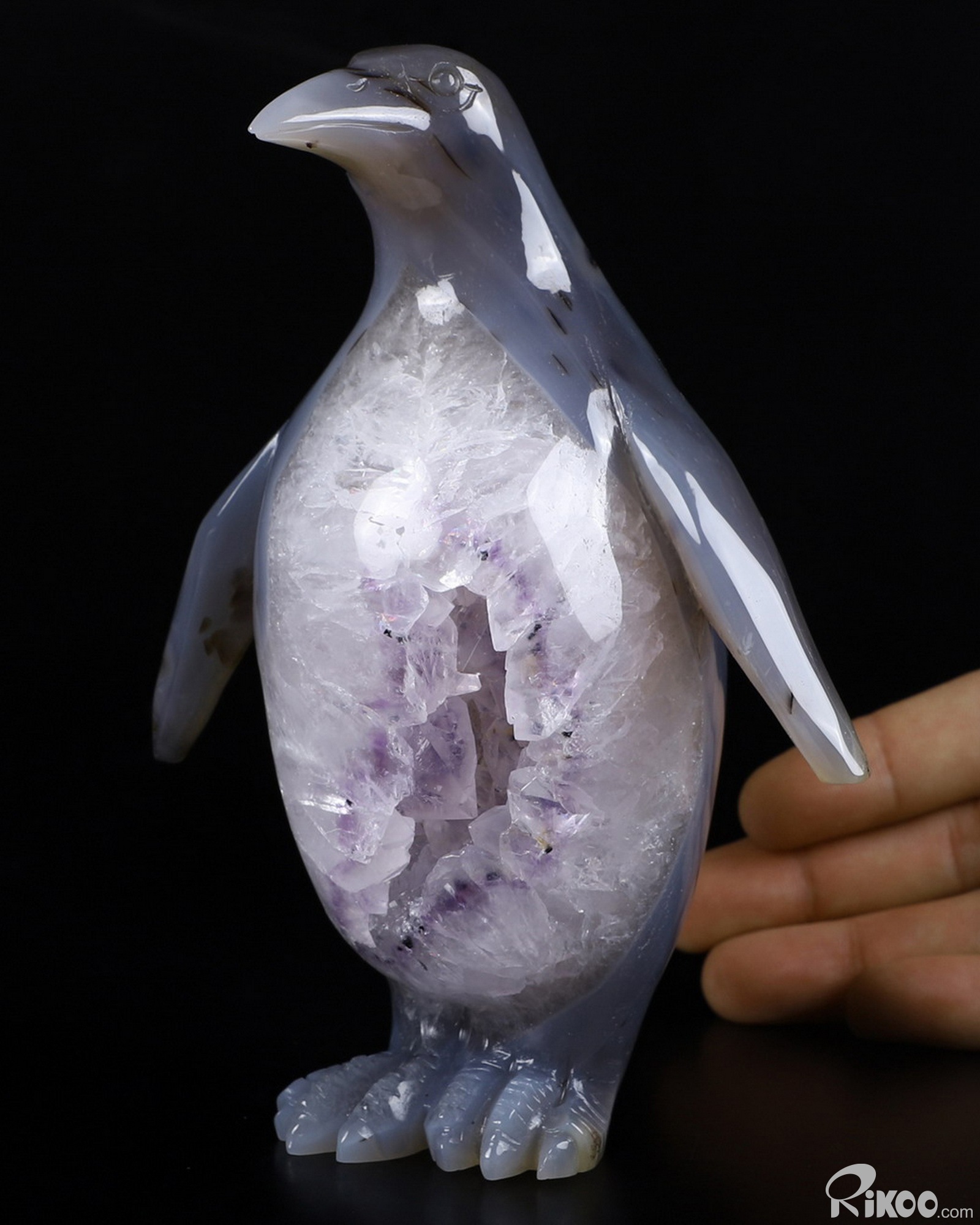 6.1" Amethyst & Agate Hand Carved Crystal Penguin Sculpture, Crystal Healing