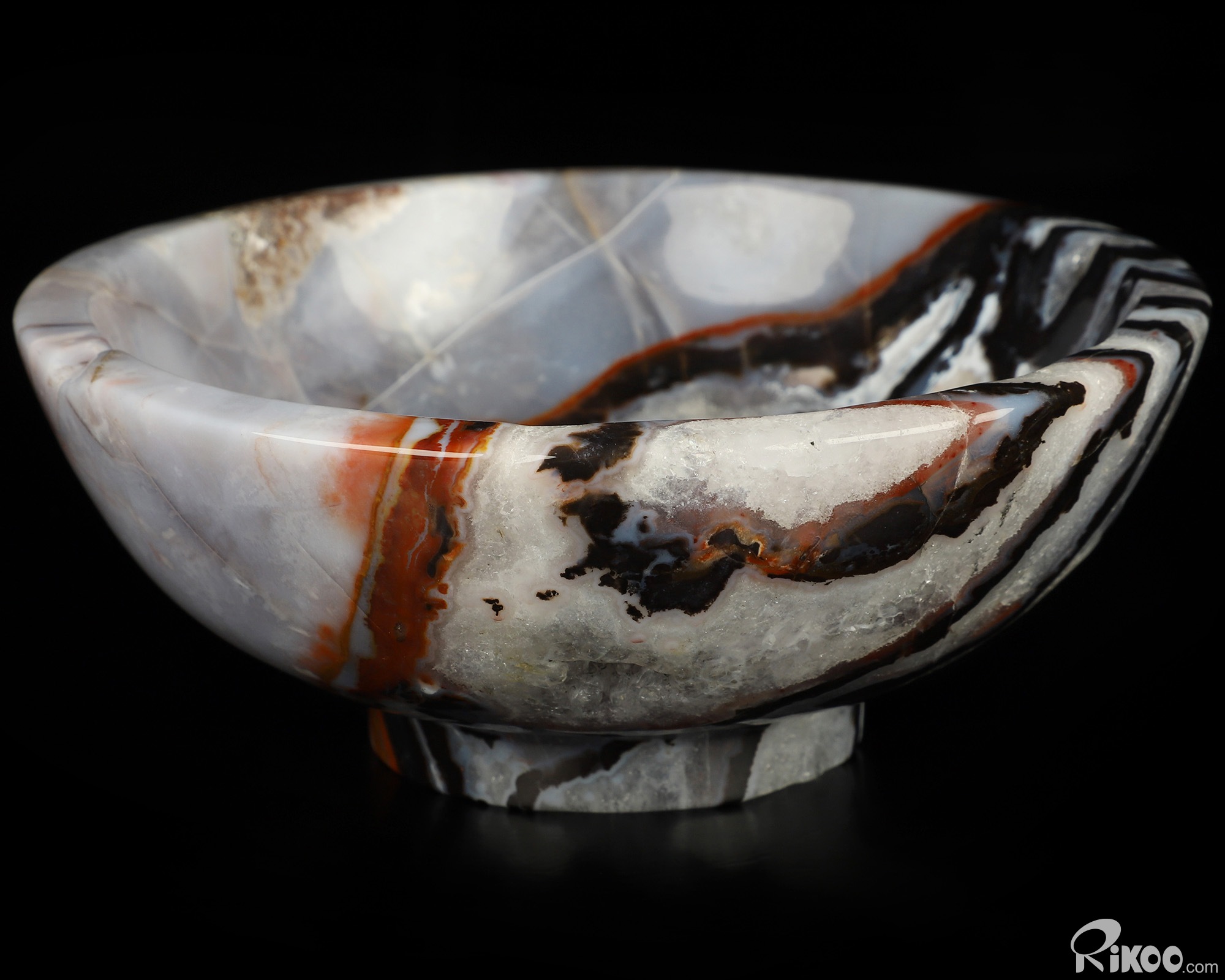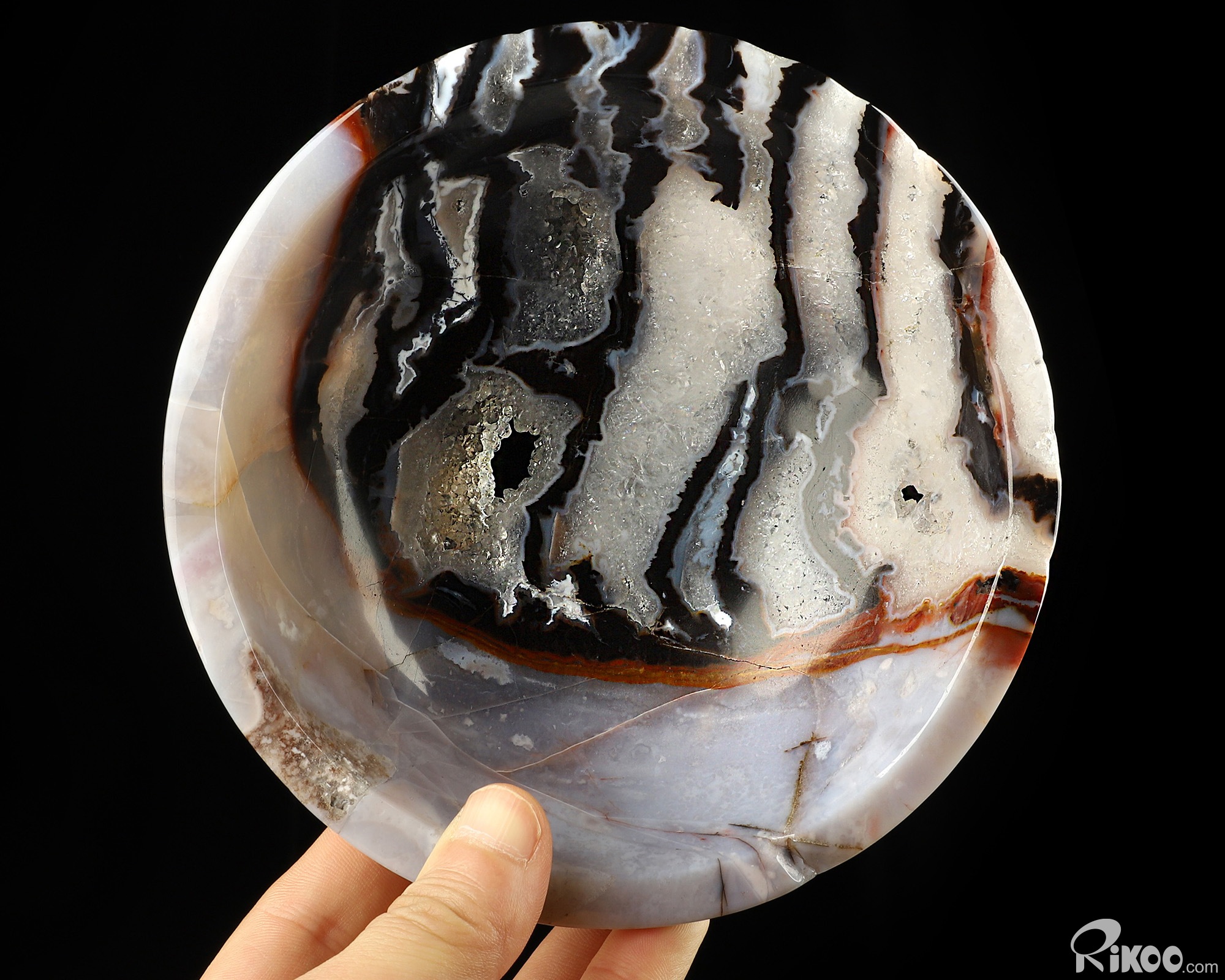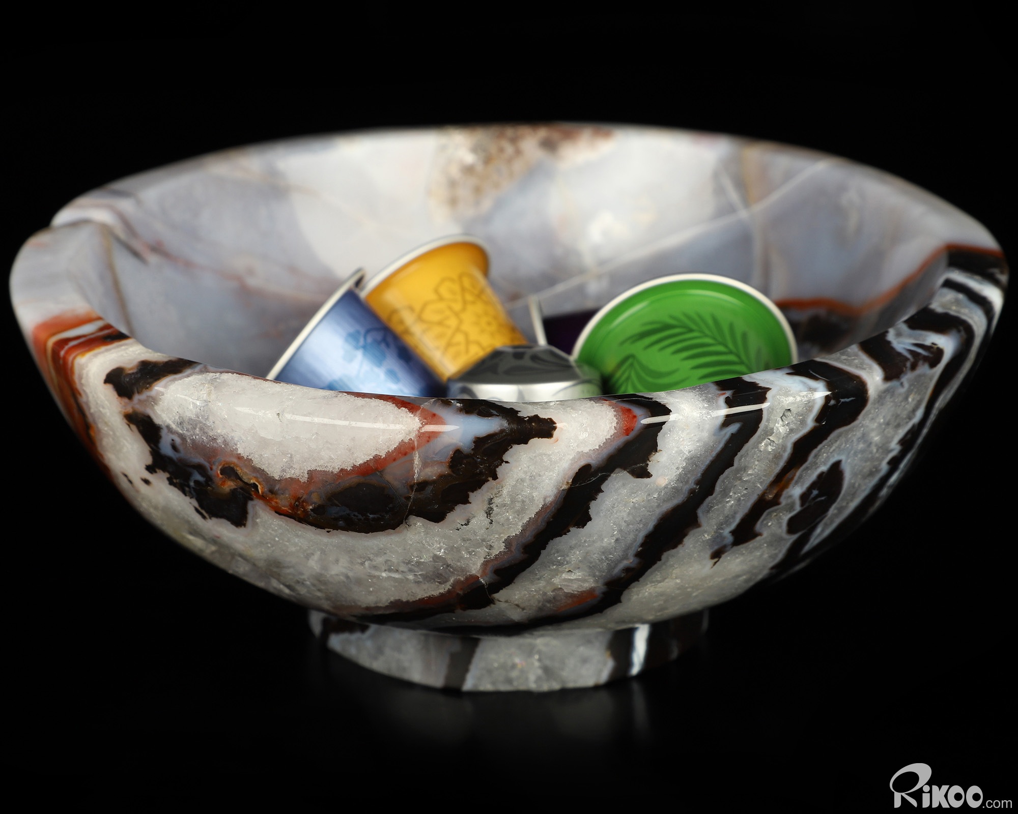 6.1" Black Zebra Agate Hand Carved Crystal Bowl, Crystal Healing