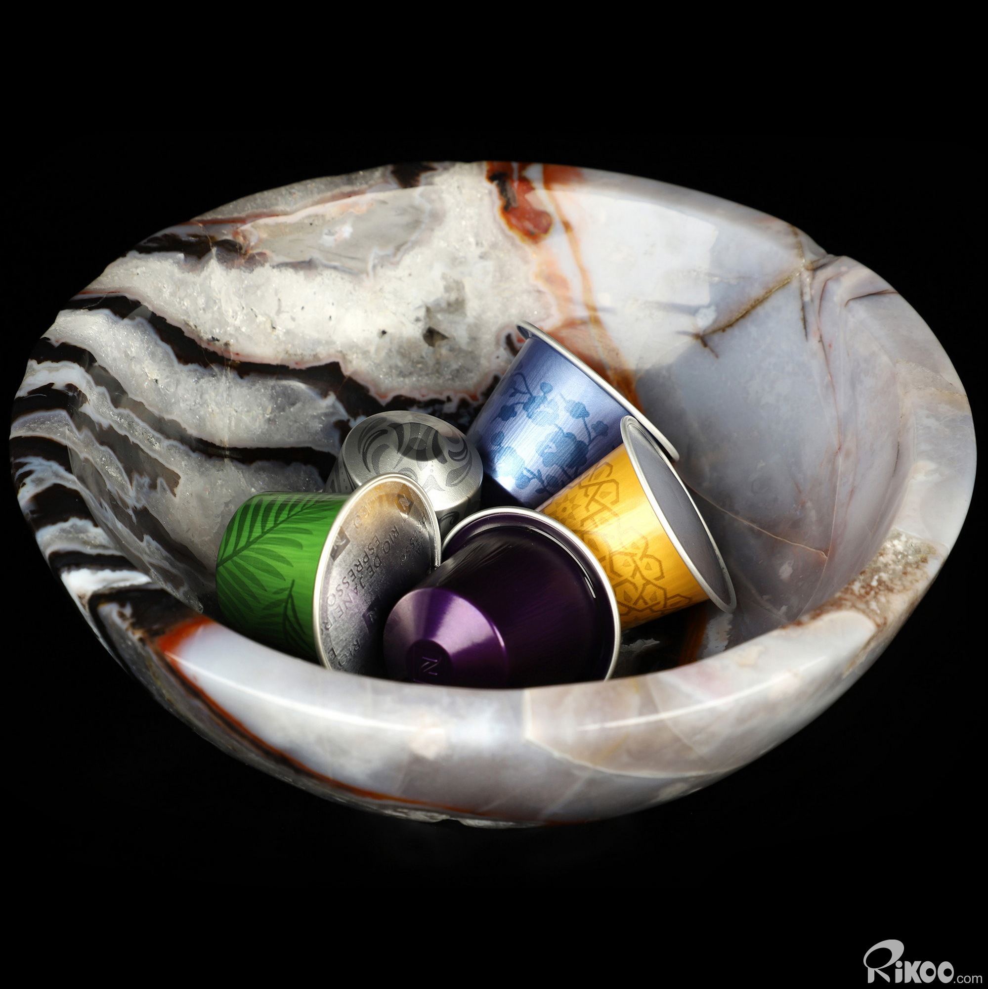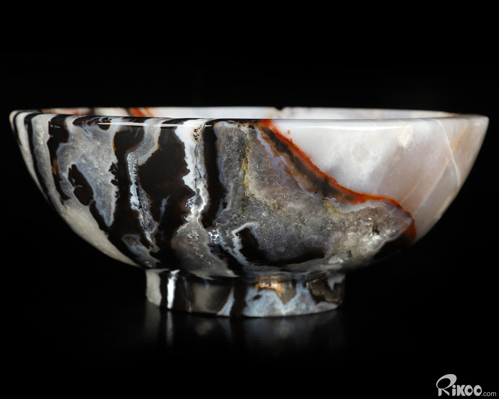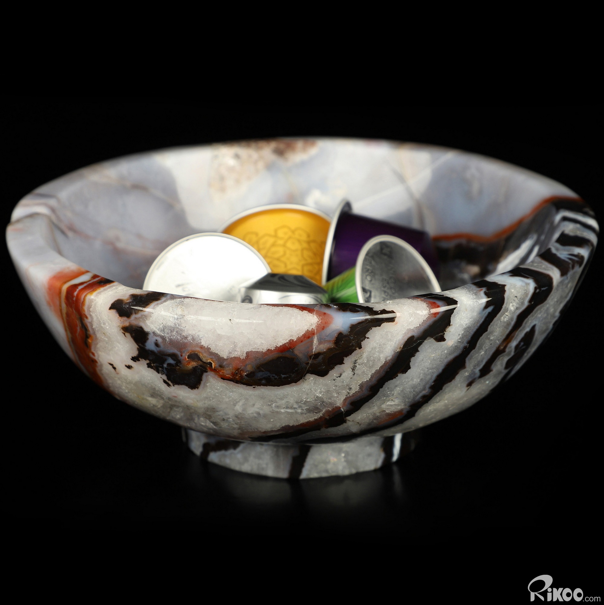 6.1" Black Zebra Agate Hand Carved Crystal Bowl, Crystal Healing