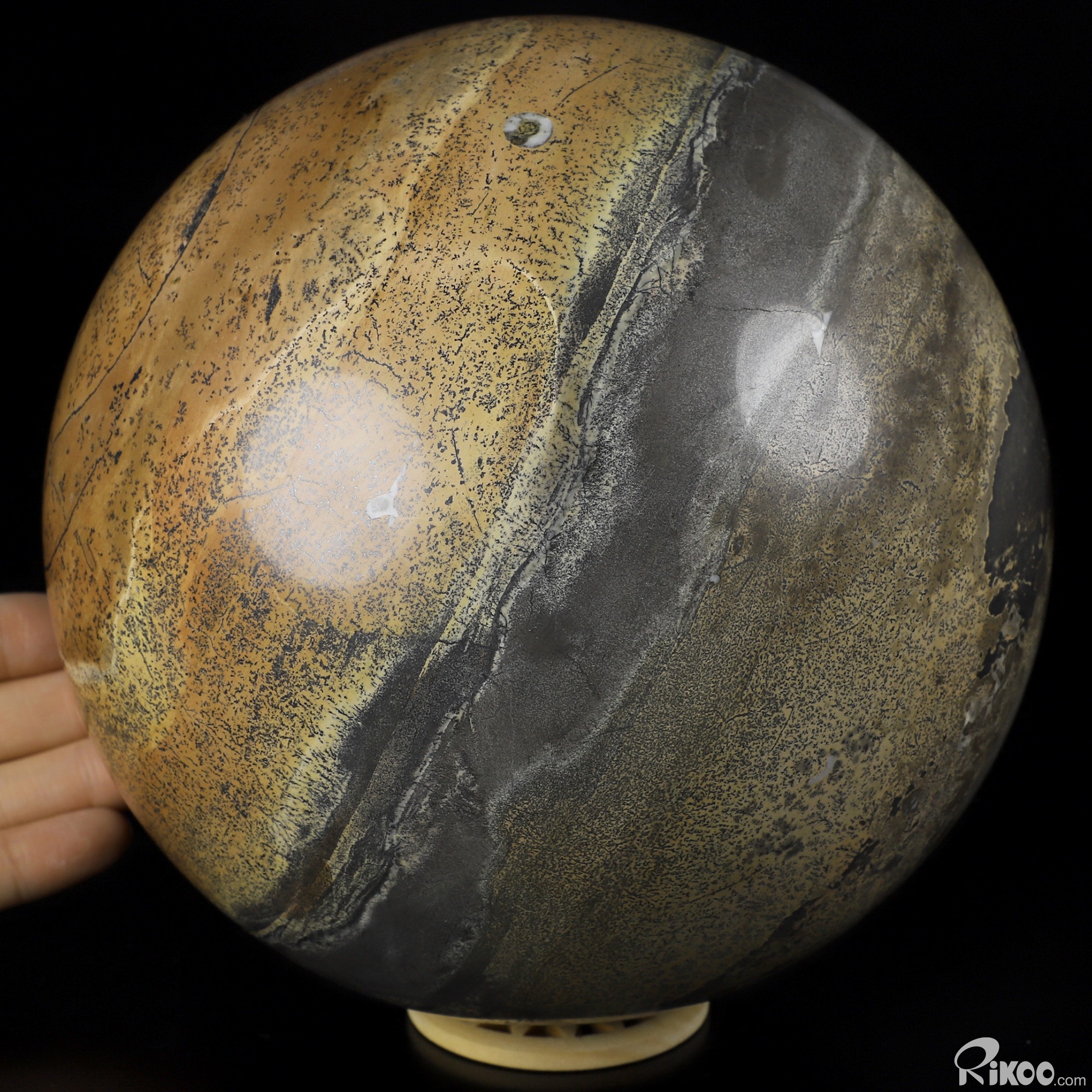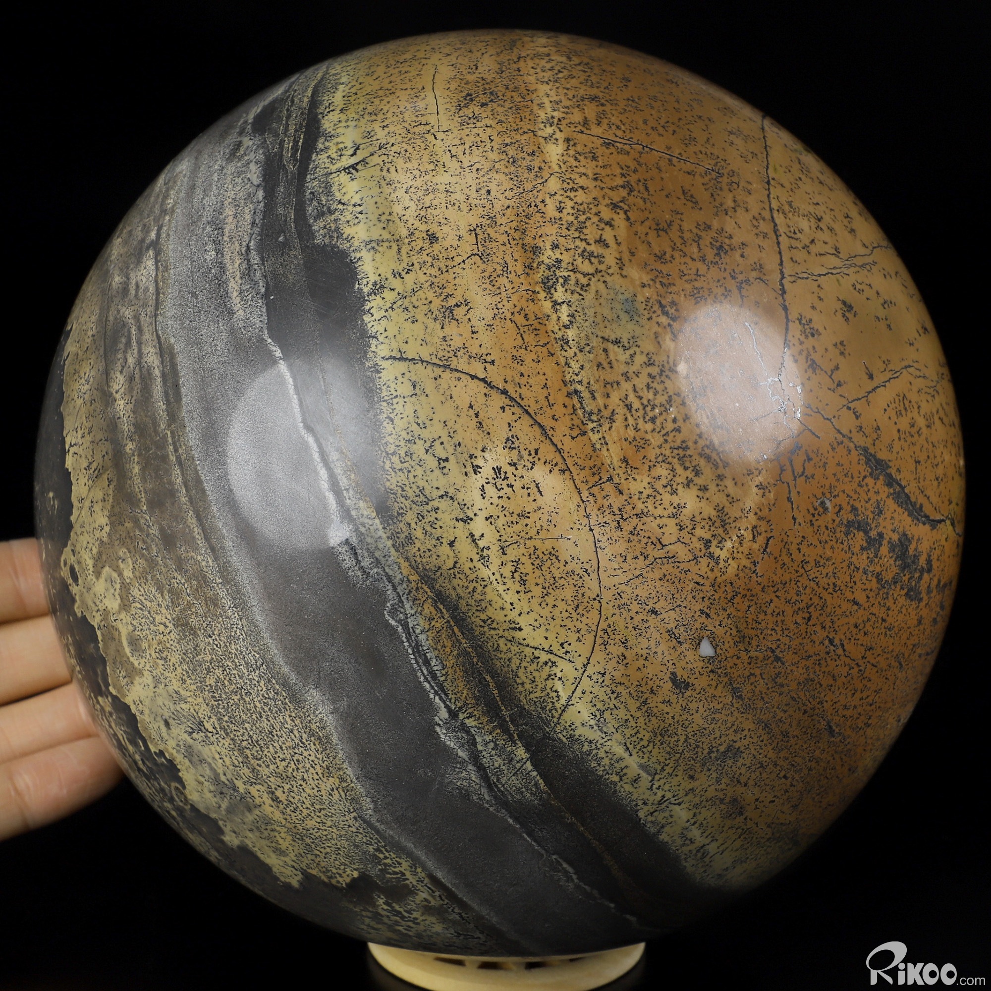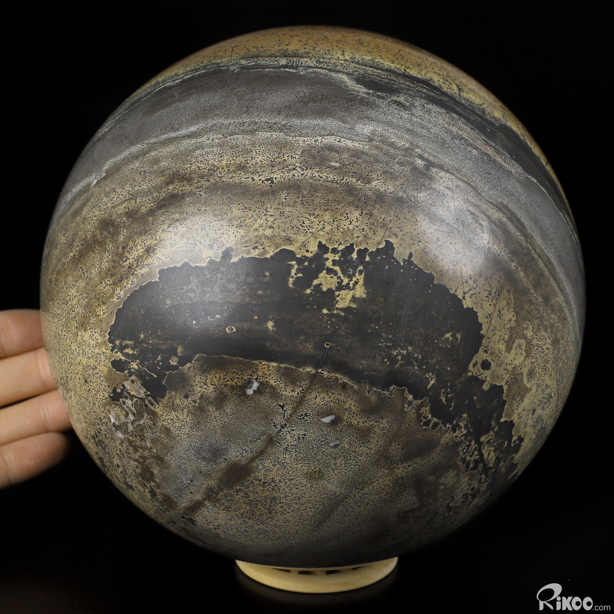 You are looking at a Chinese Painting Stone Ball. The Ball is 6.1 inches long from front to back.