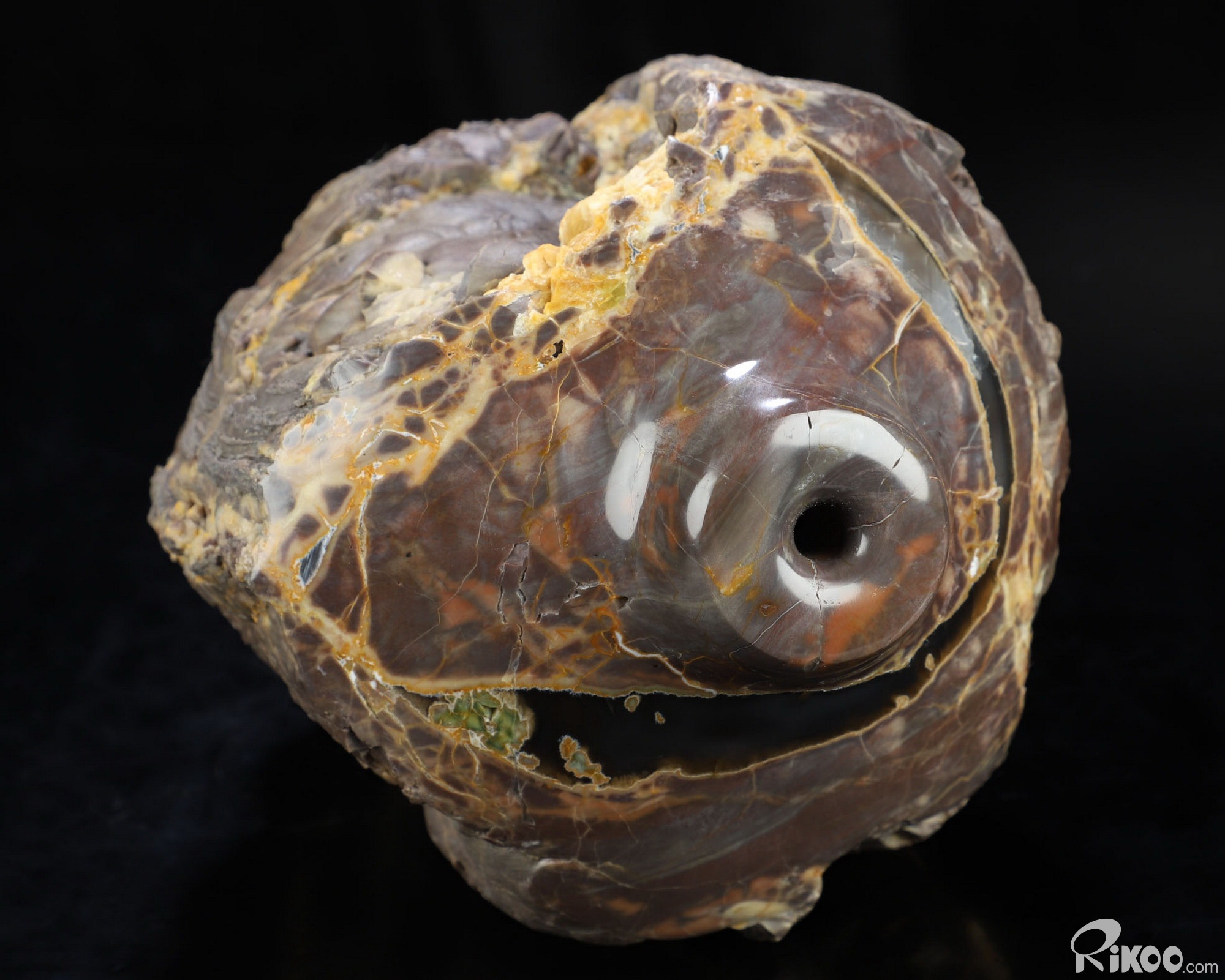 You are looking at a Dinosaur Egg Agate sculpture. The sculpture is 6.1 inches long.