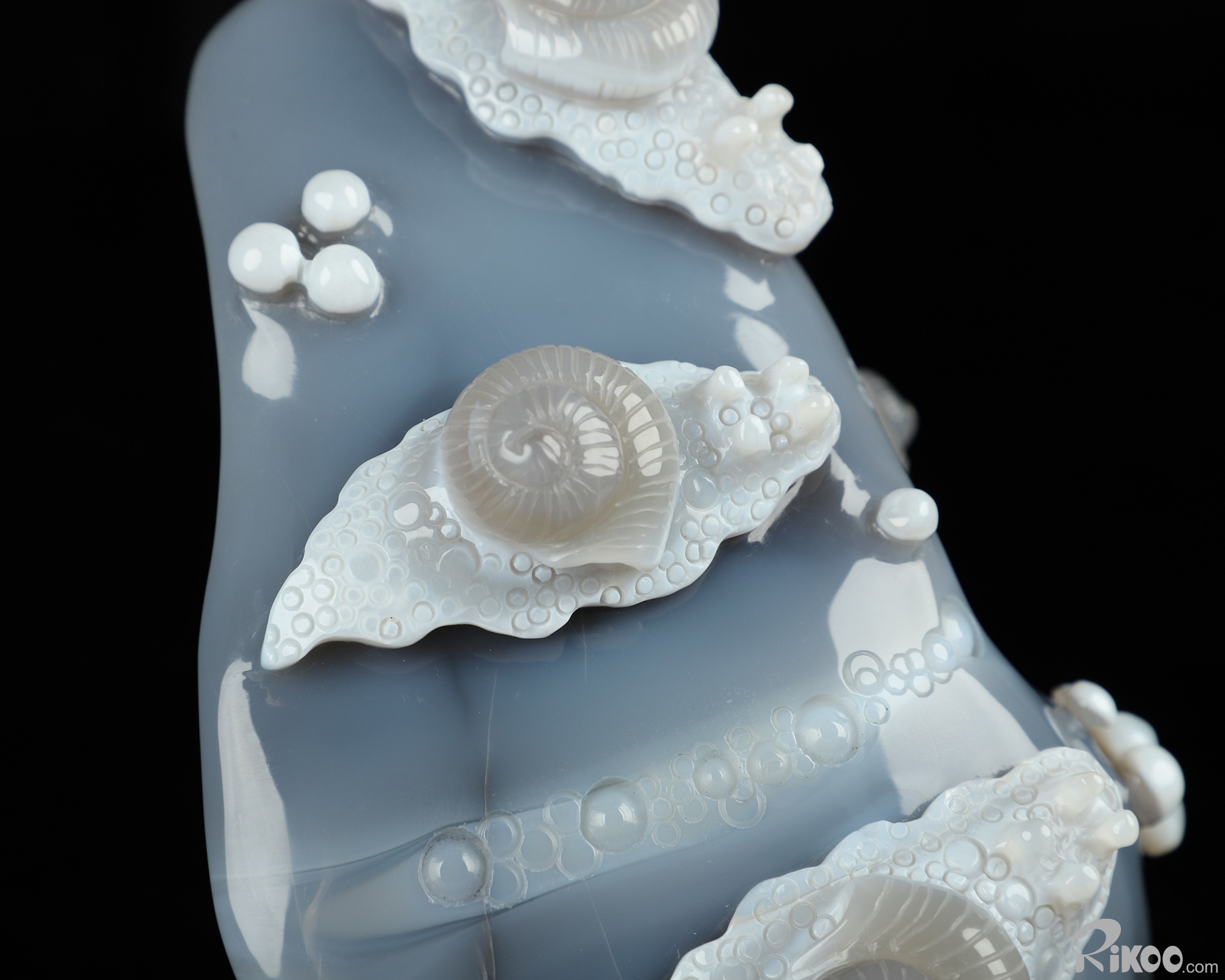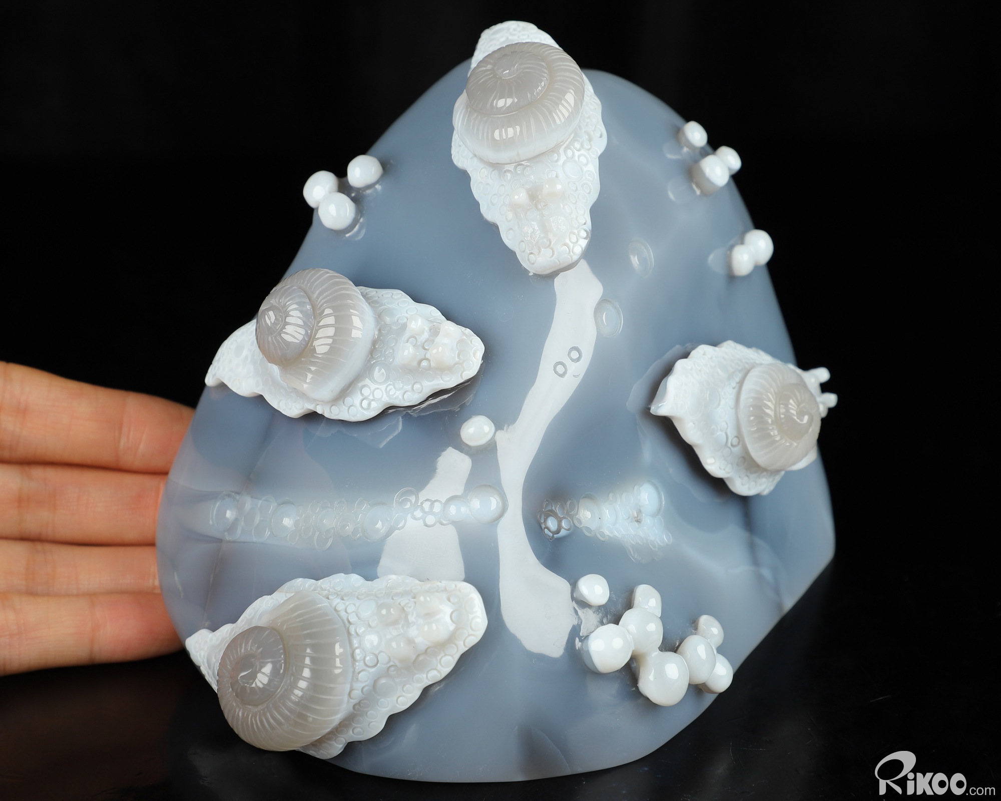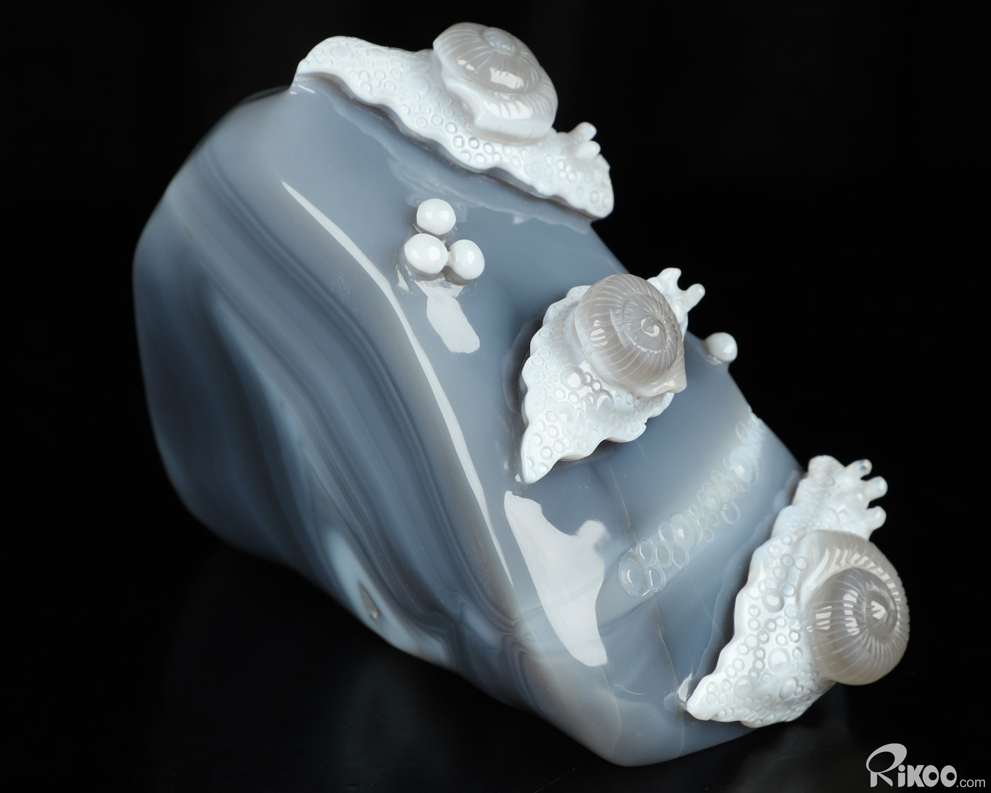 6.1" Gray & White Agate Hand Carved Crystal Snail Sculpture, Crystal Healing