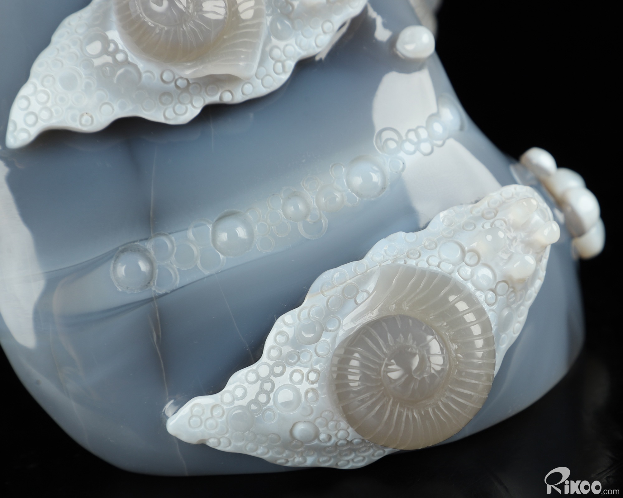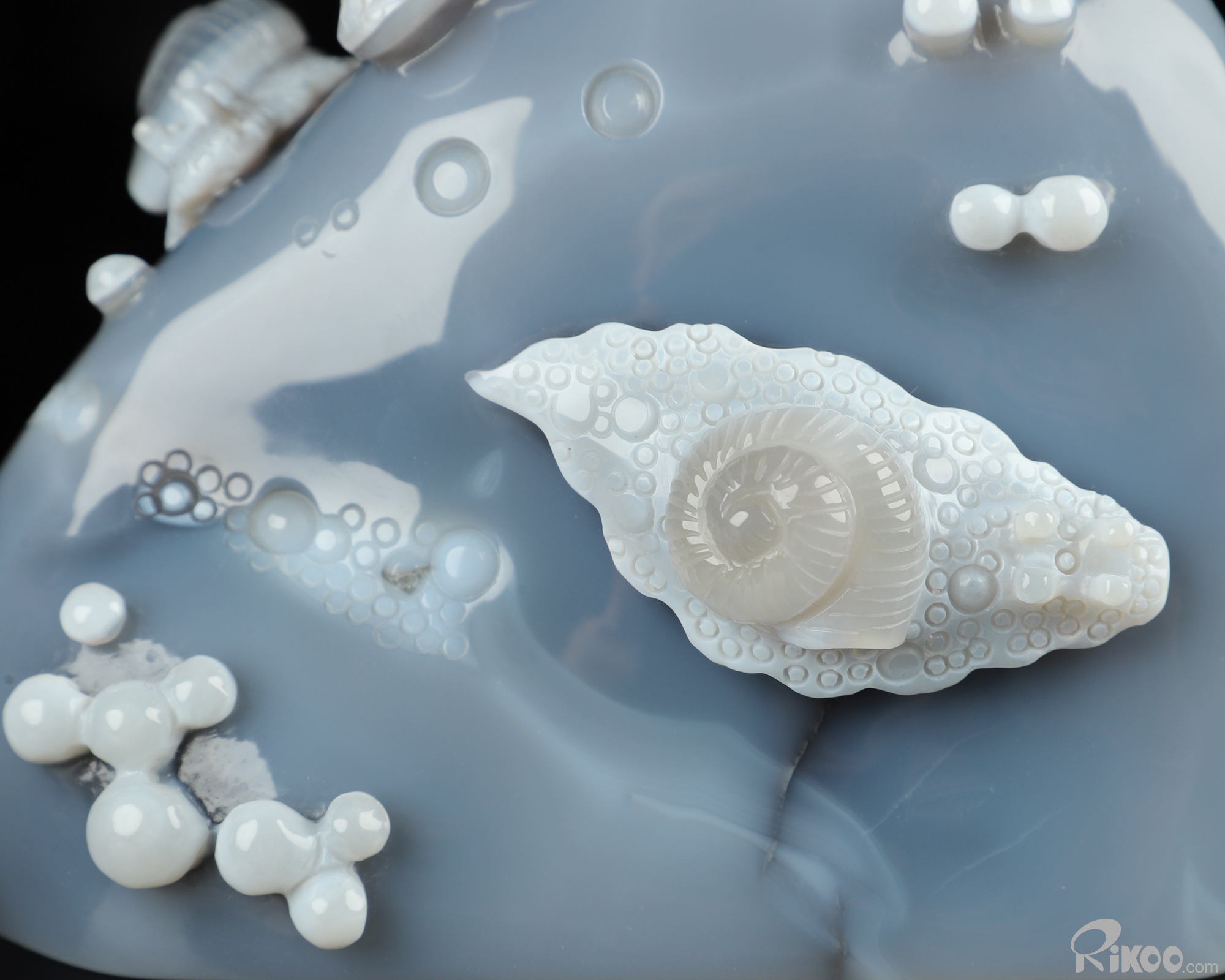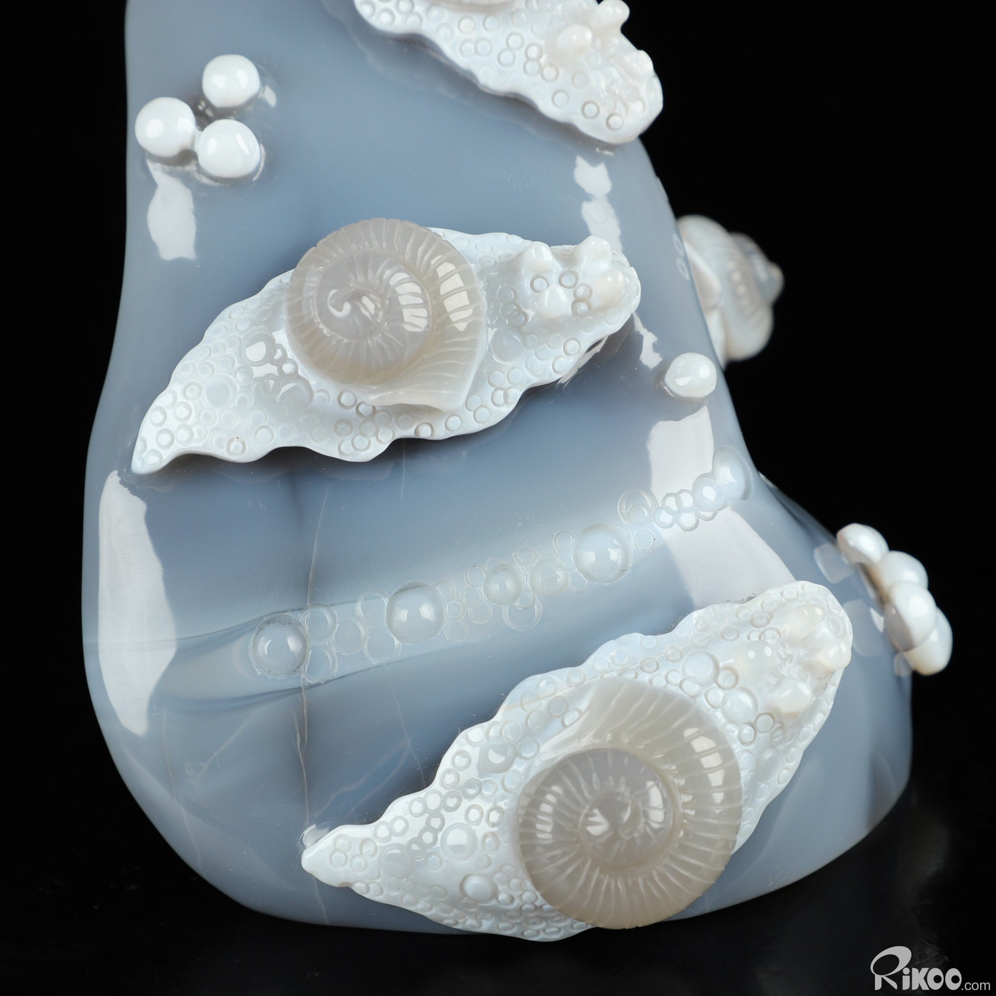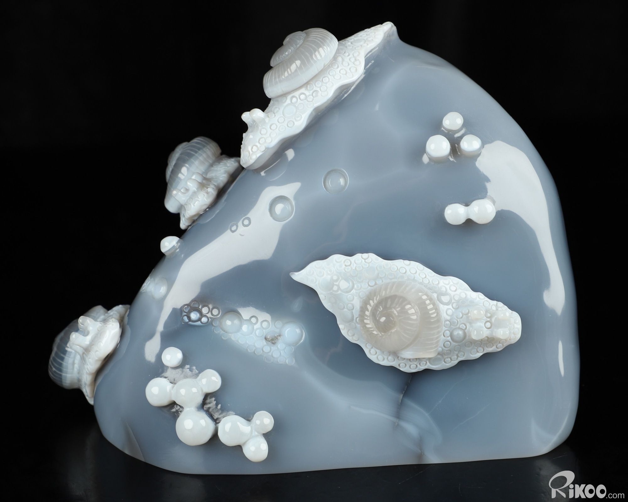 6.1" Gray & White Agate Hand Carved Crystal Snail Sculpture, Crystal Healing