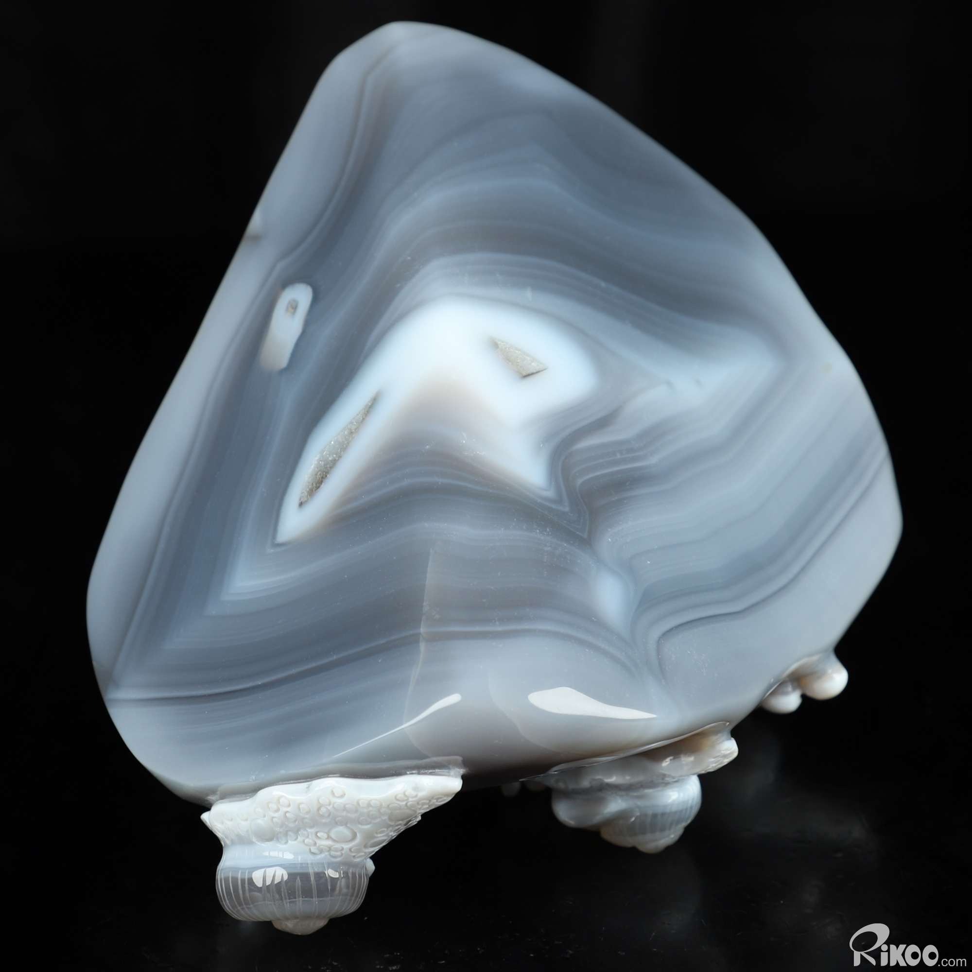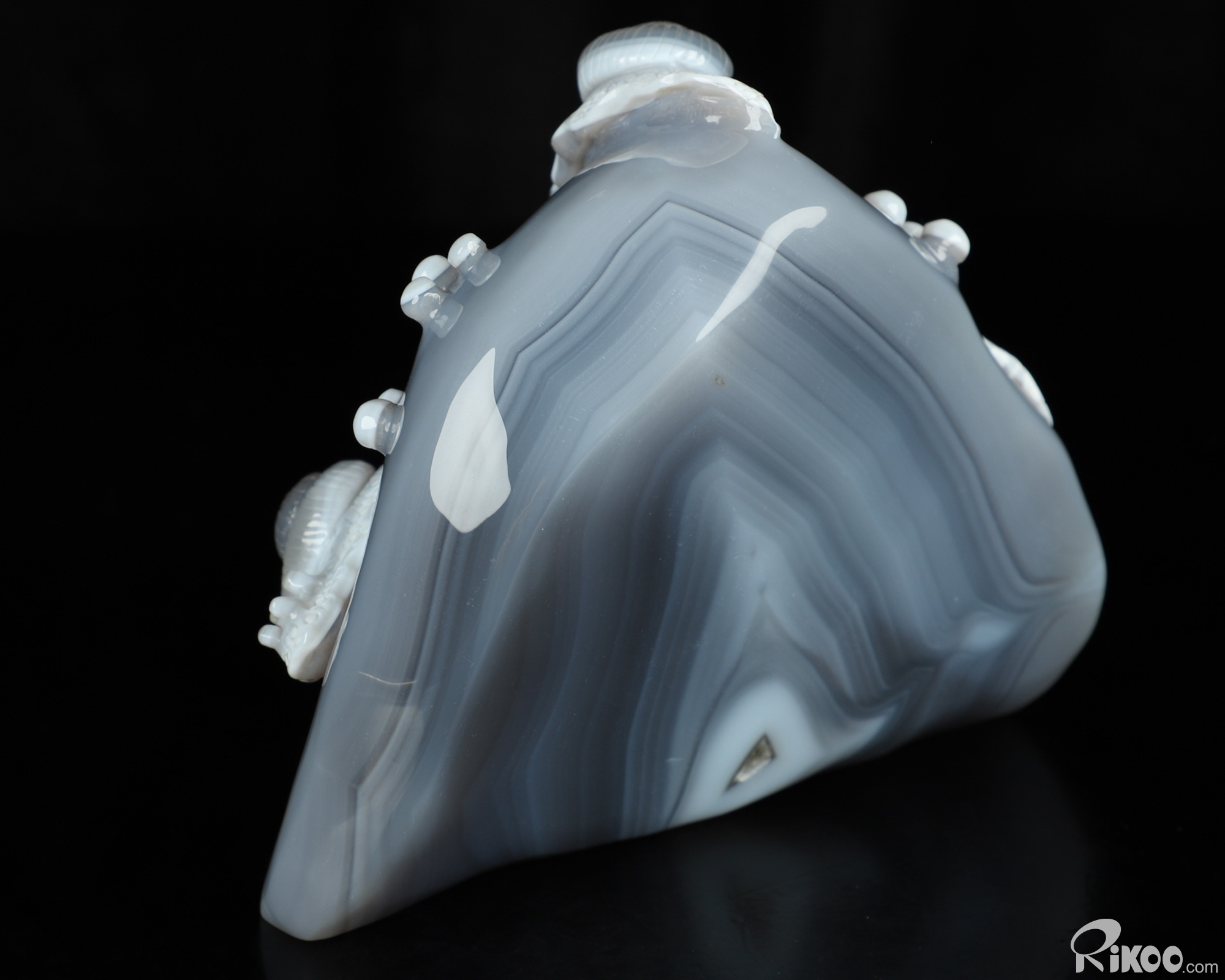 You are looking at a Gray & White Agate sculpture. The sculpture is 6.1 inches long.