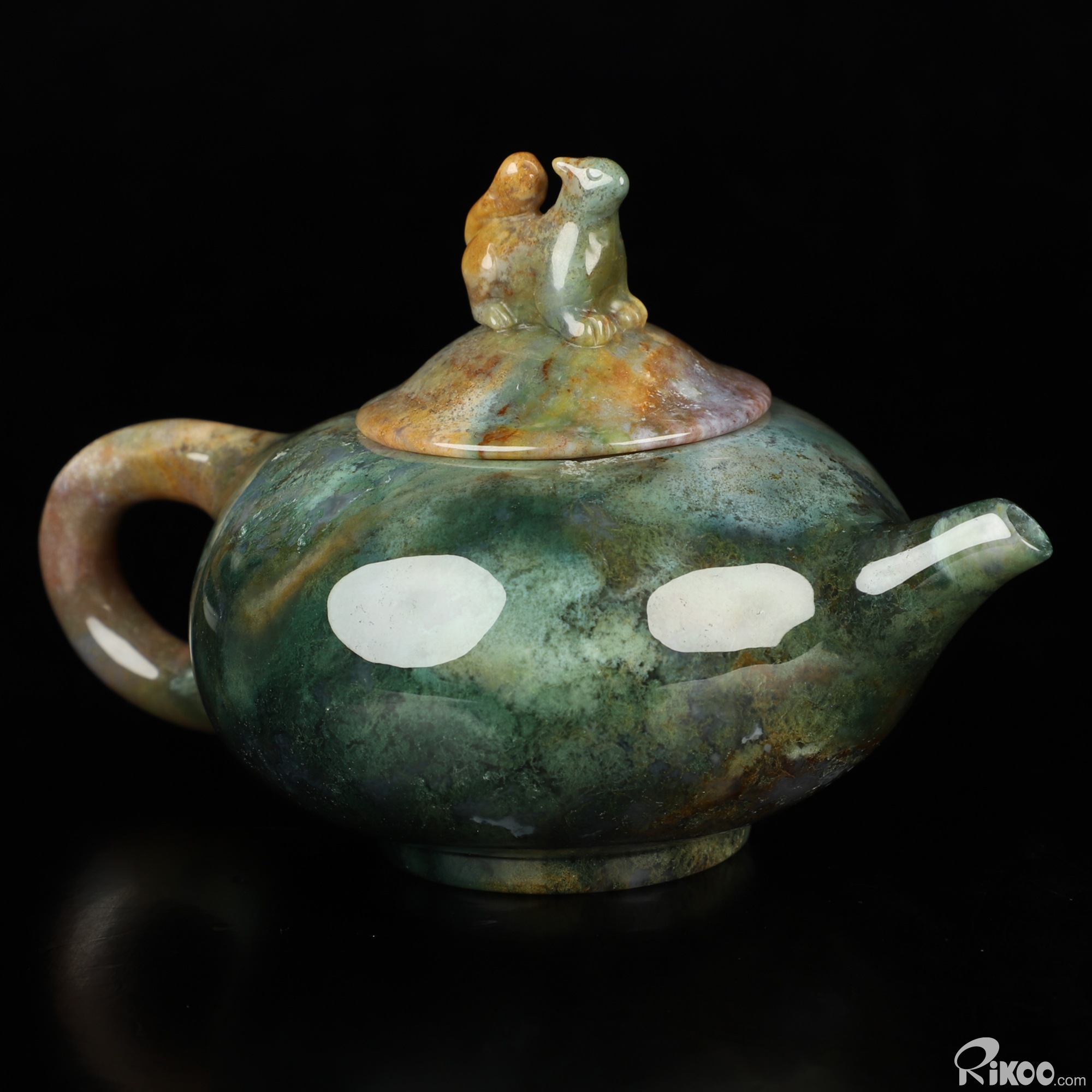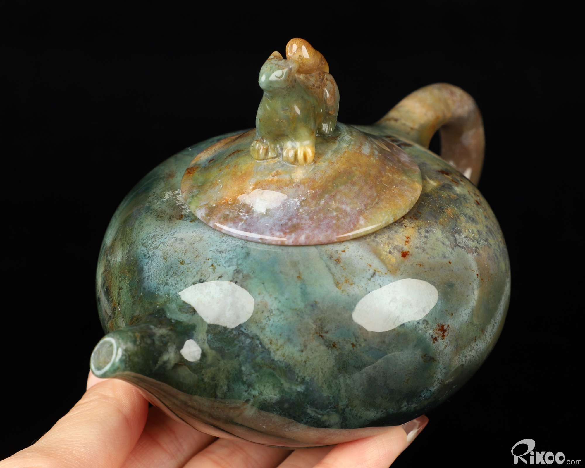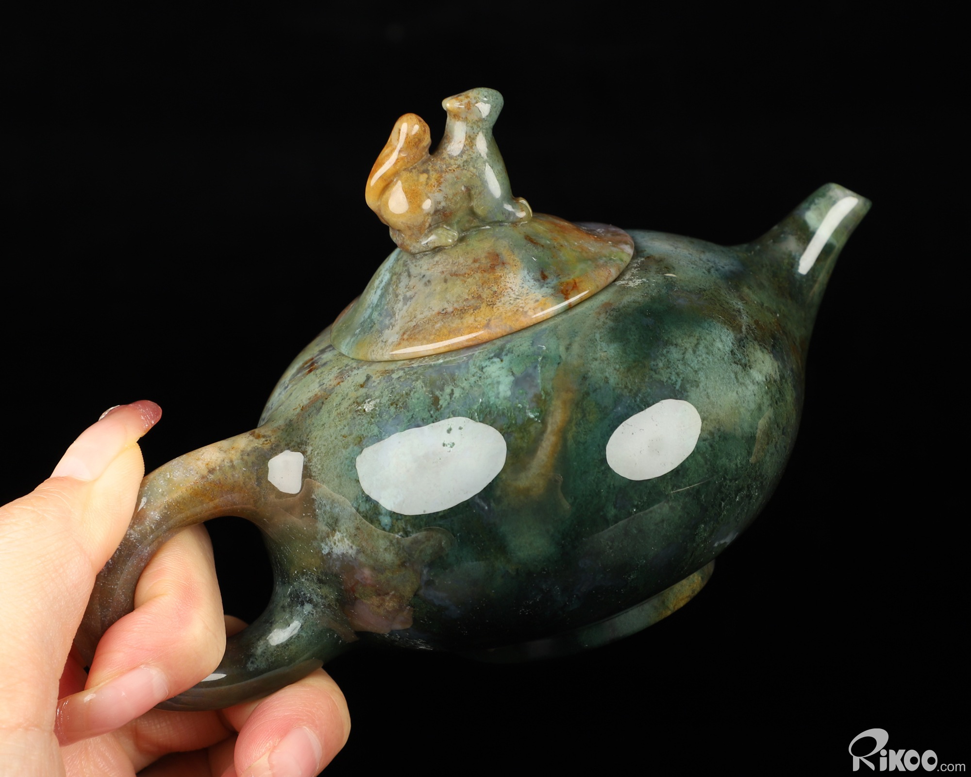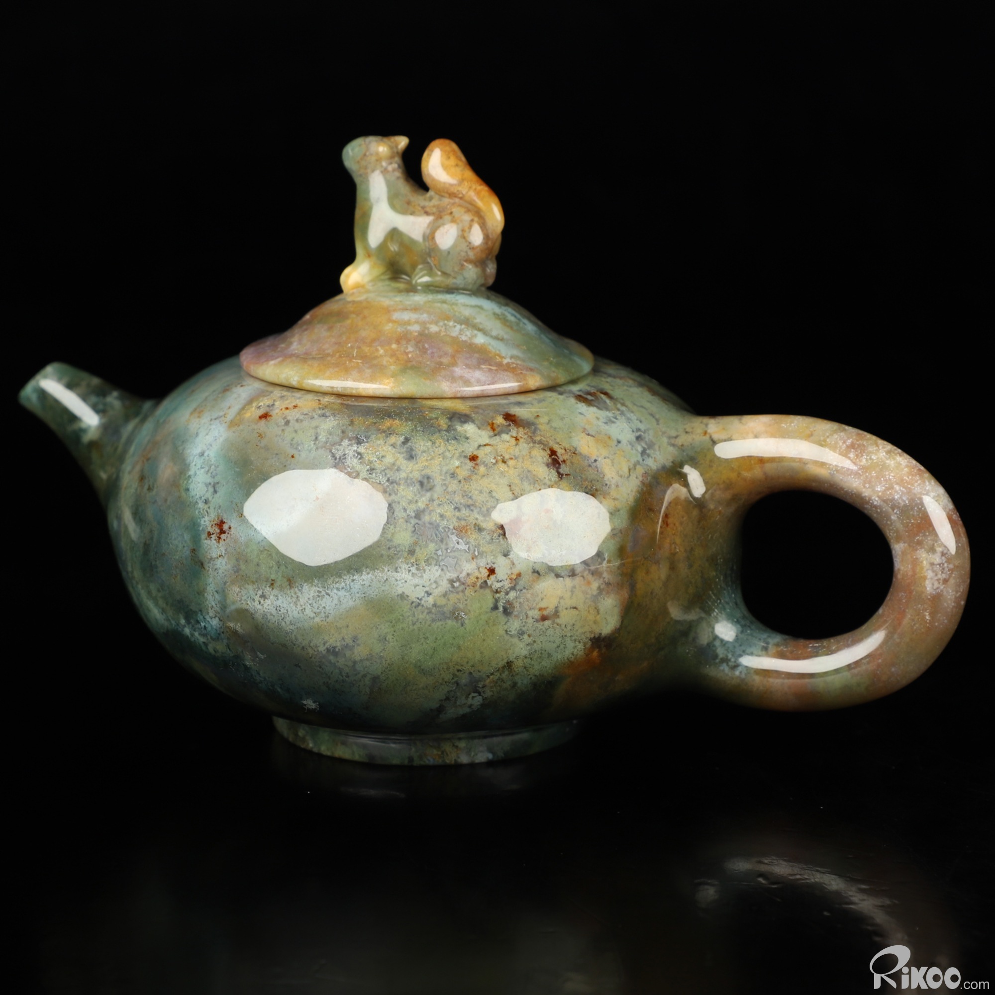 6.1" Indian Agate Hand Carved Crystal Pot and Squirrel, Crystal Healing