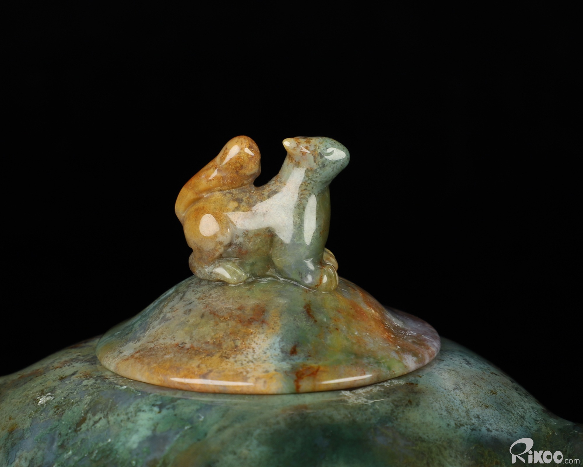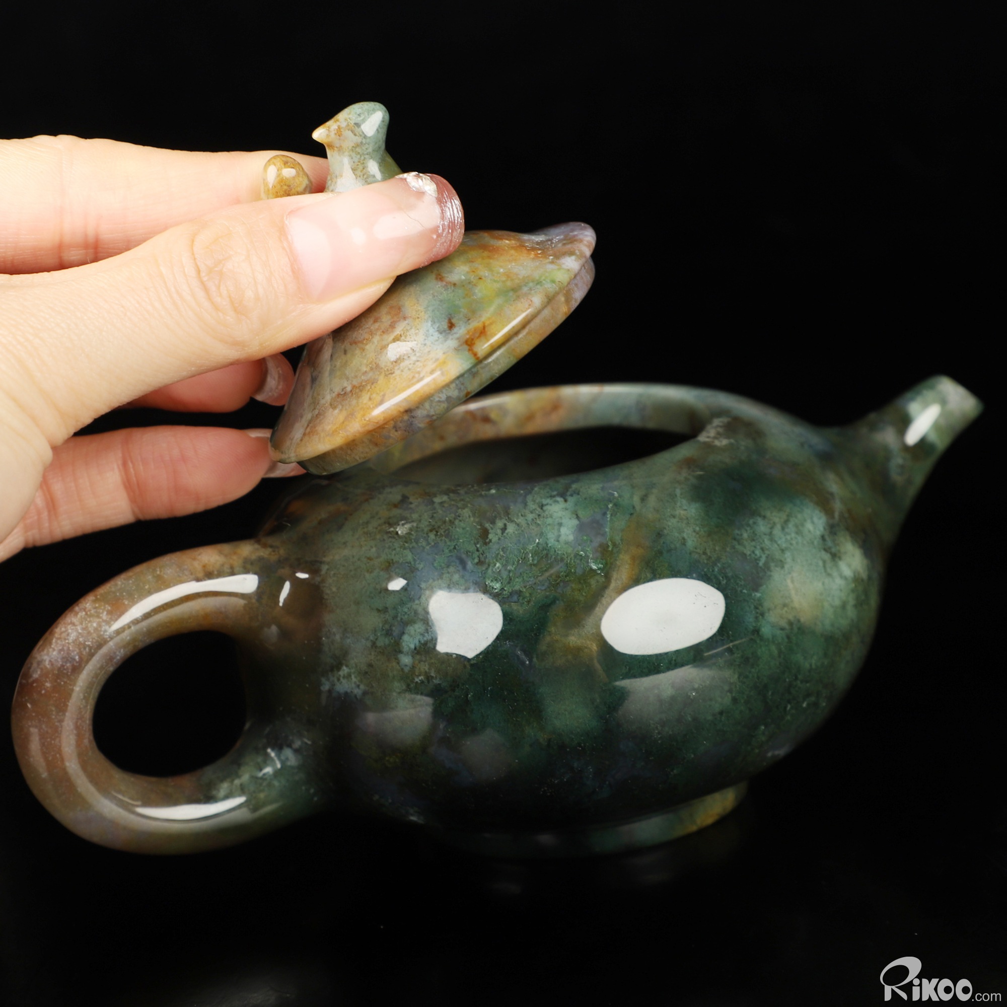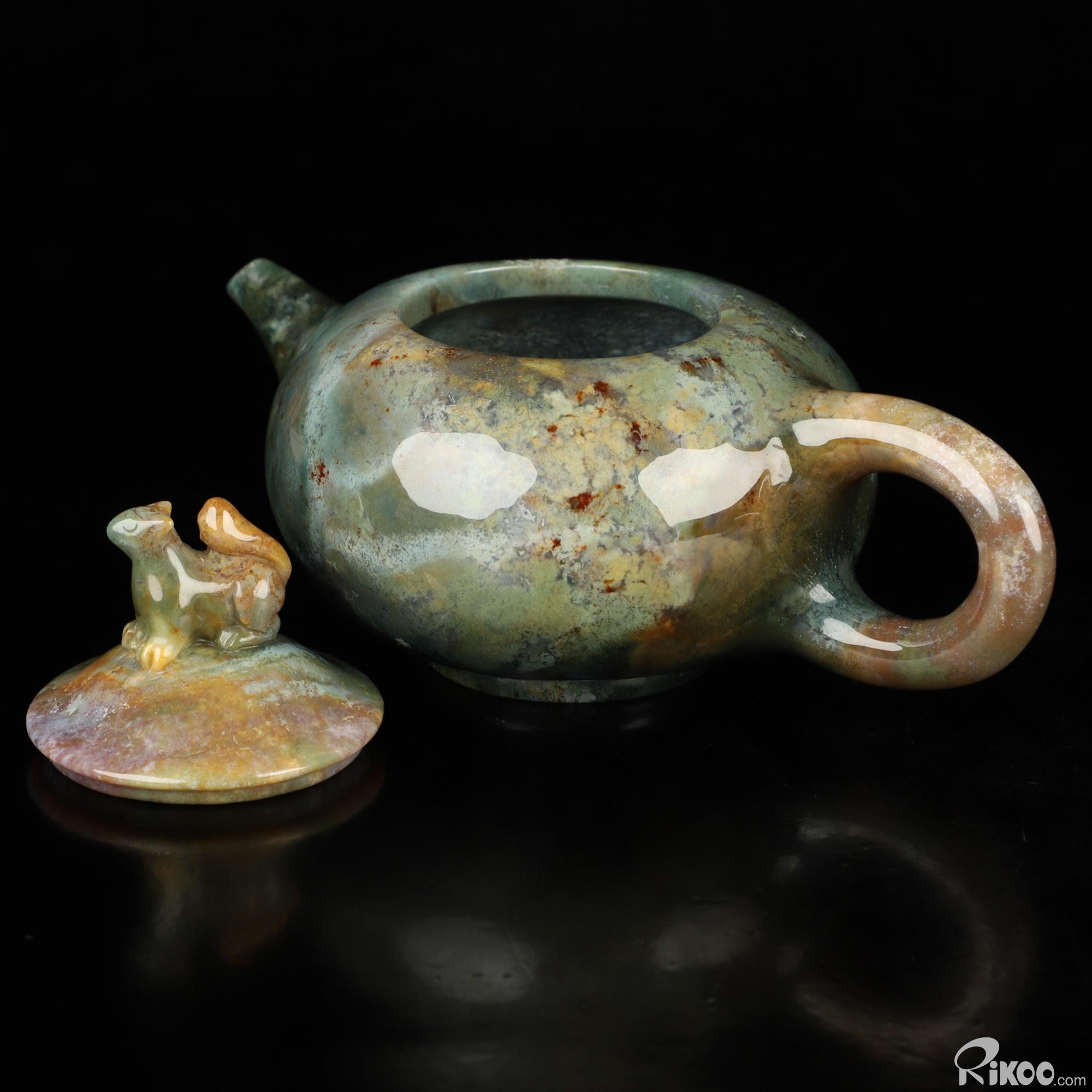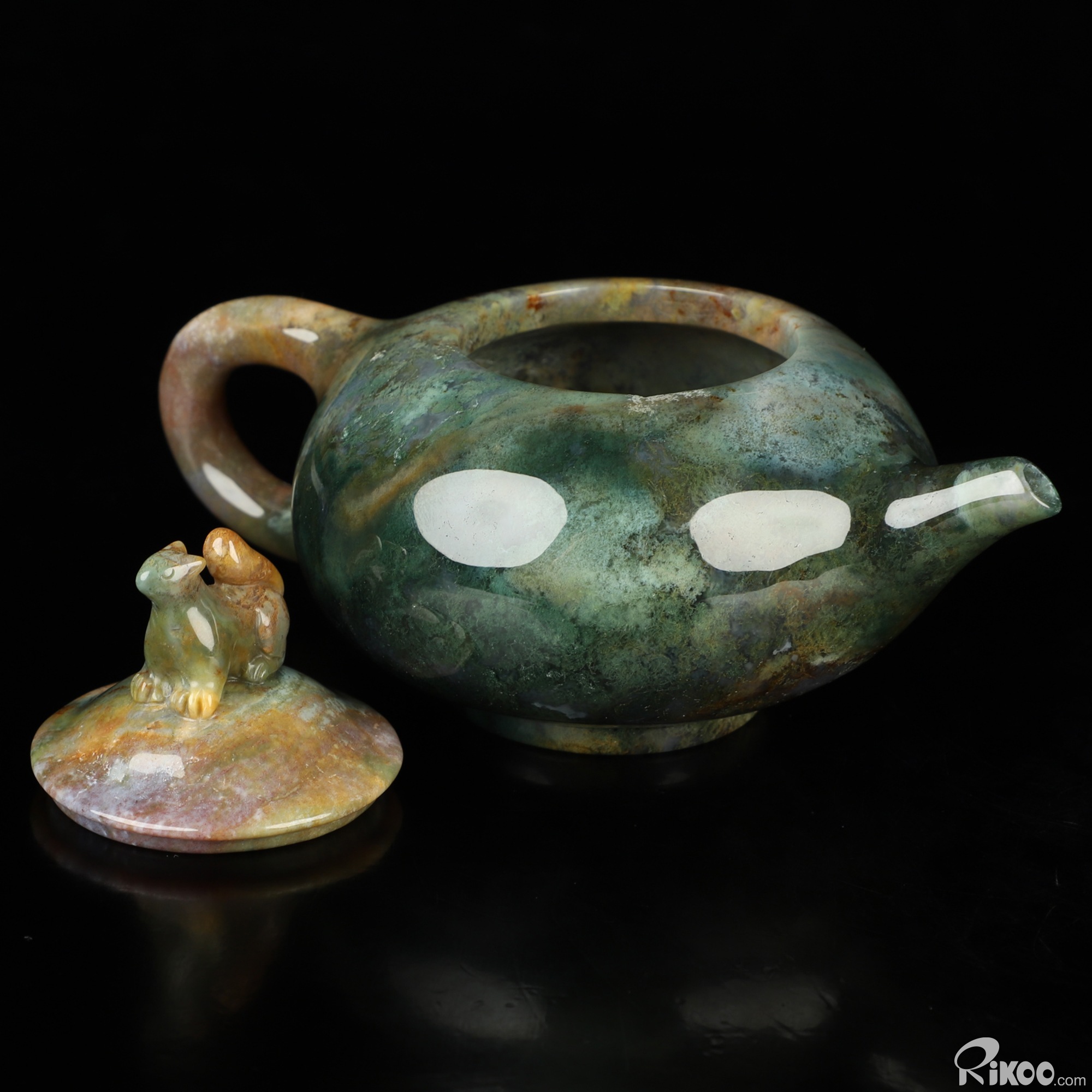6.1" Indian Agate Hand Carved Crystal Pot and Squirrel, Crystal Healing