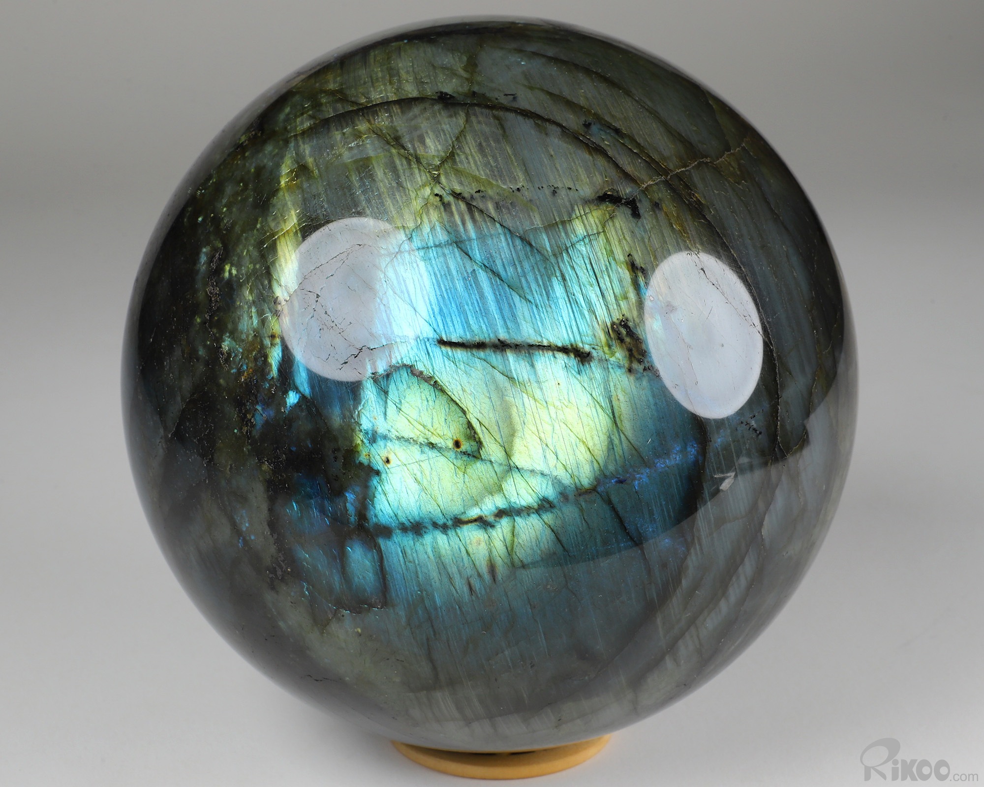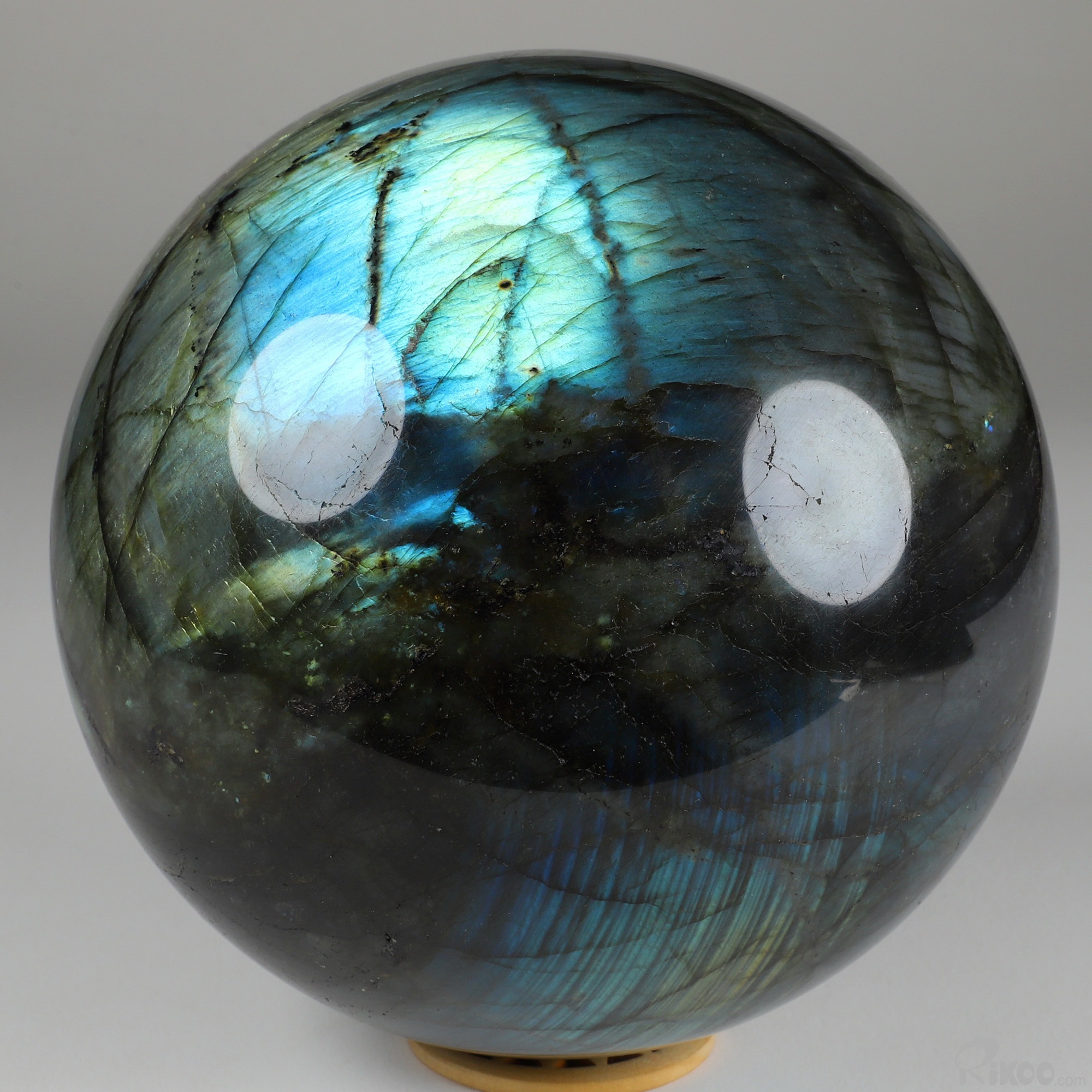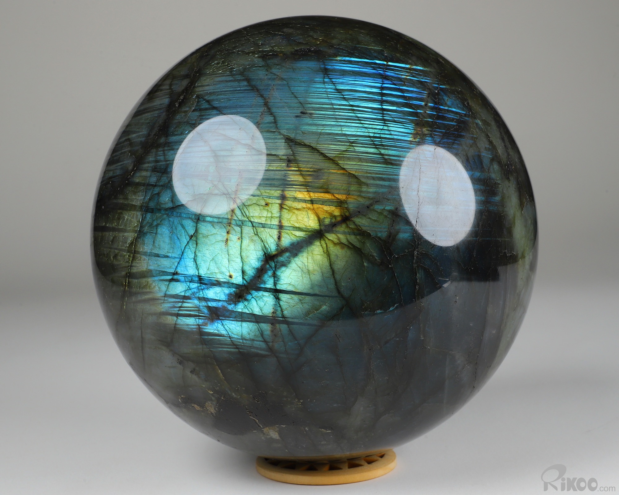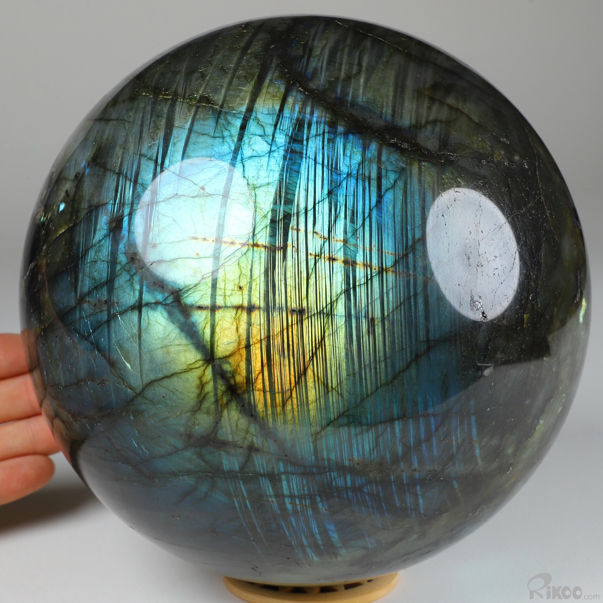 You are looking at a Labradorite Ball. The Ball is 6.1 inches long from front to back.