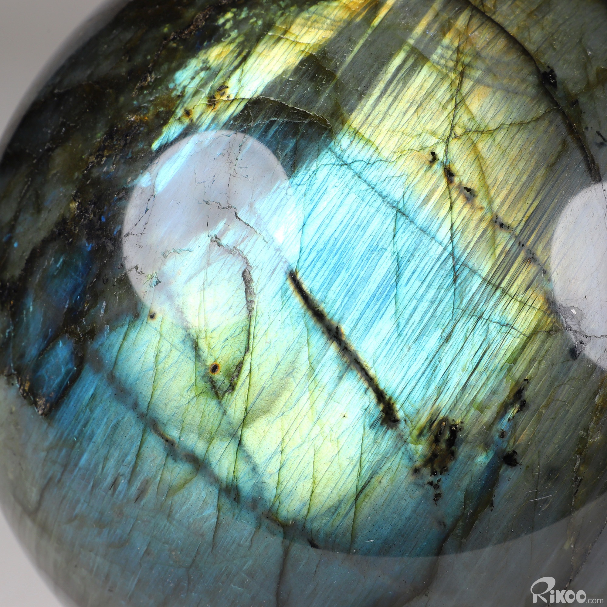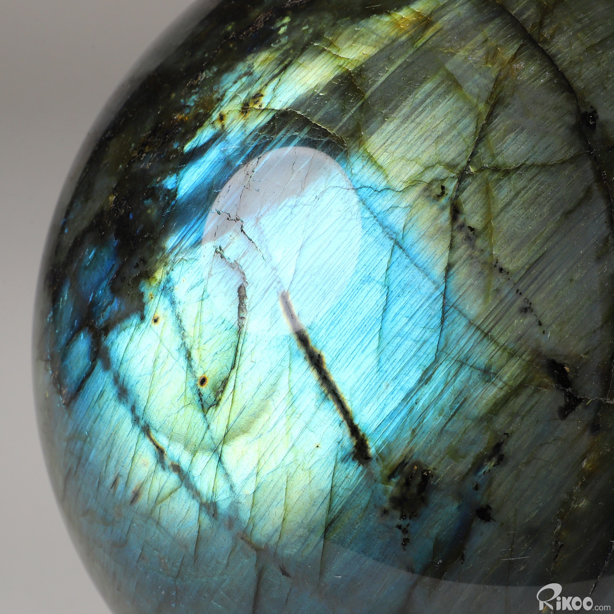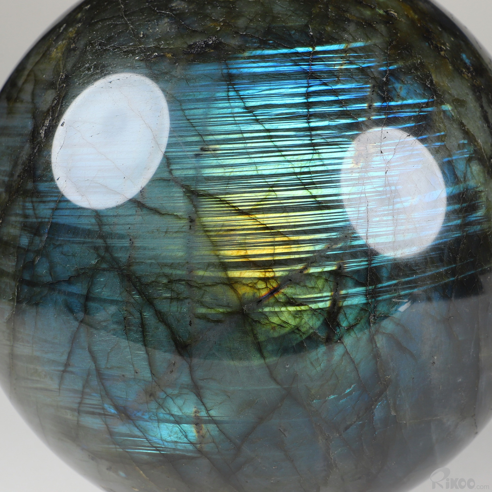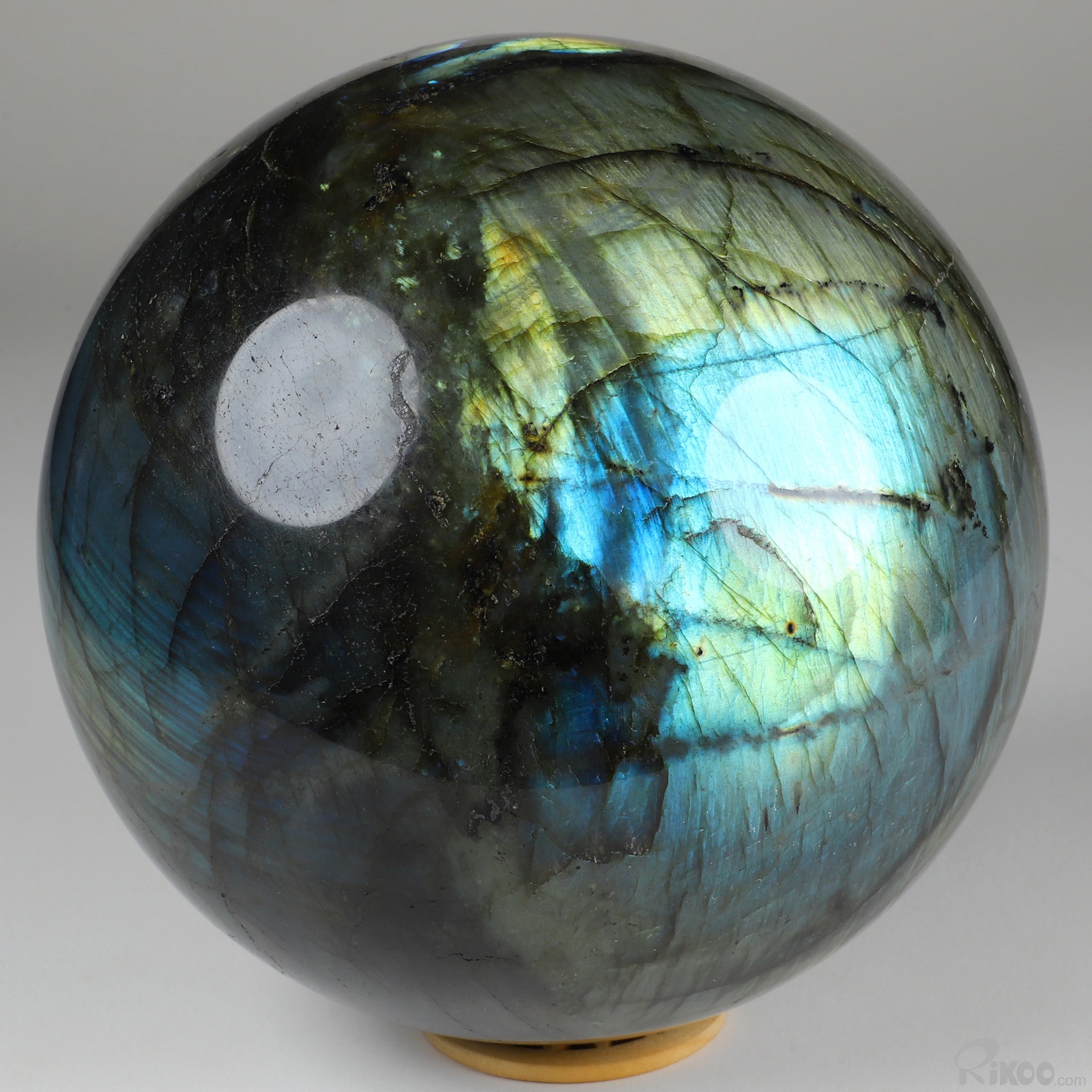 You are looking at a Labradorite Ball. The Ball is 6.1 inches long from front to back.