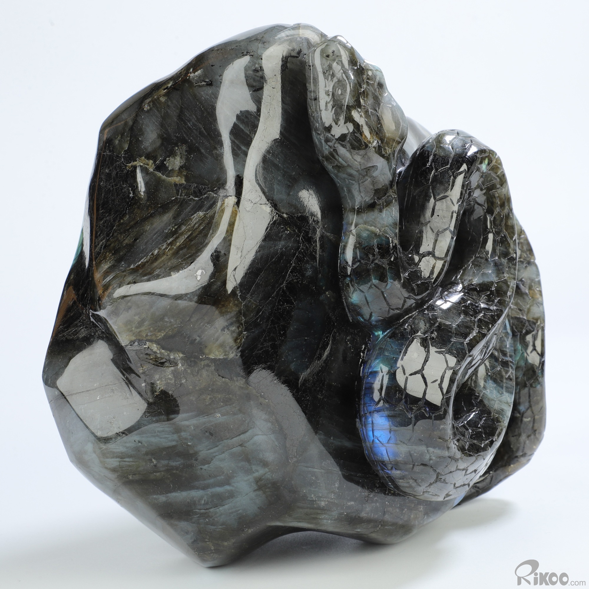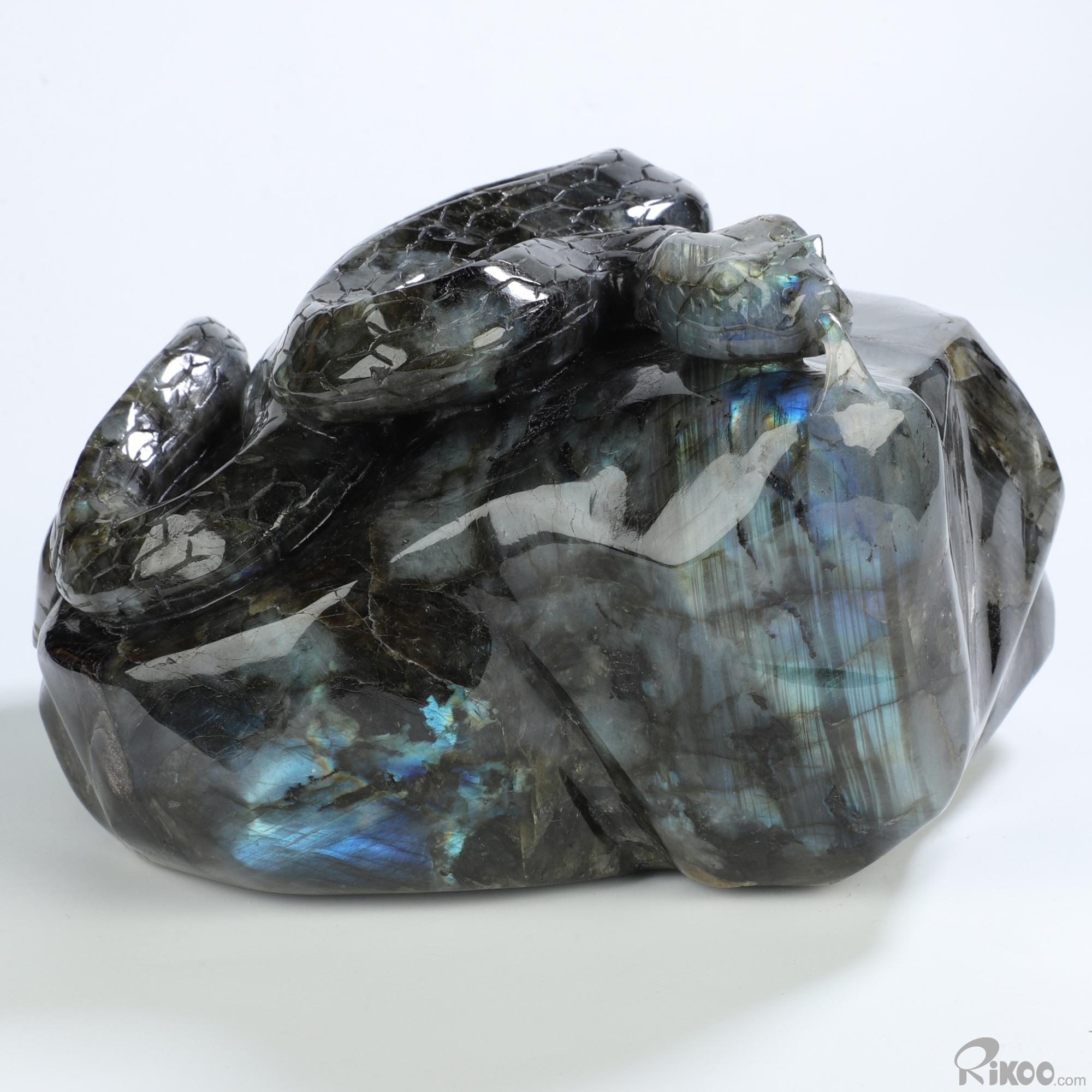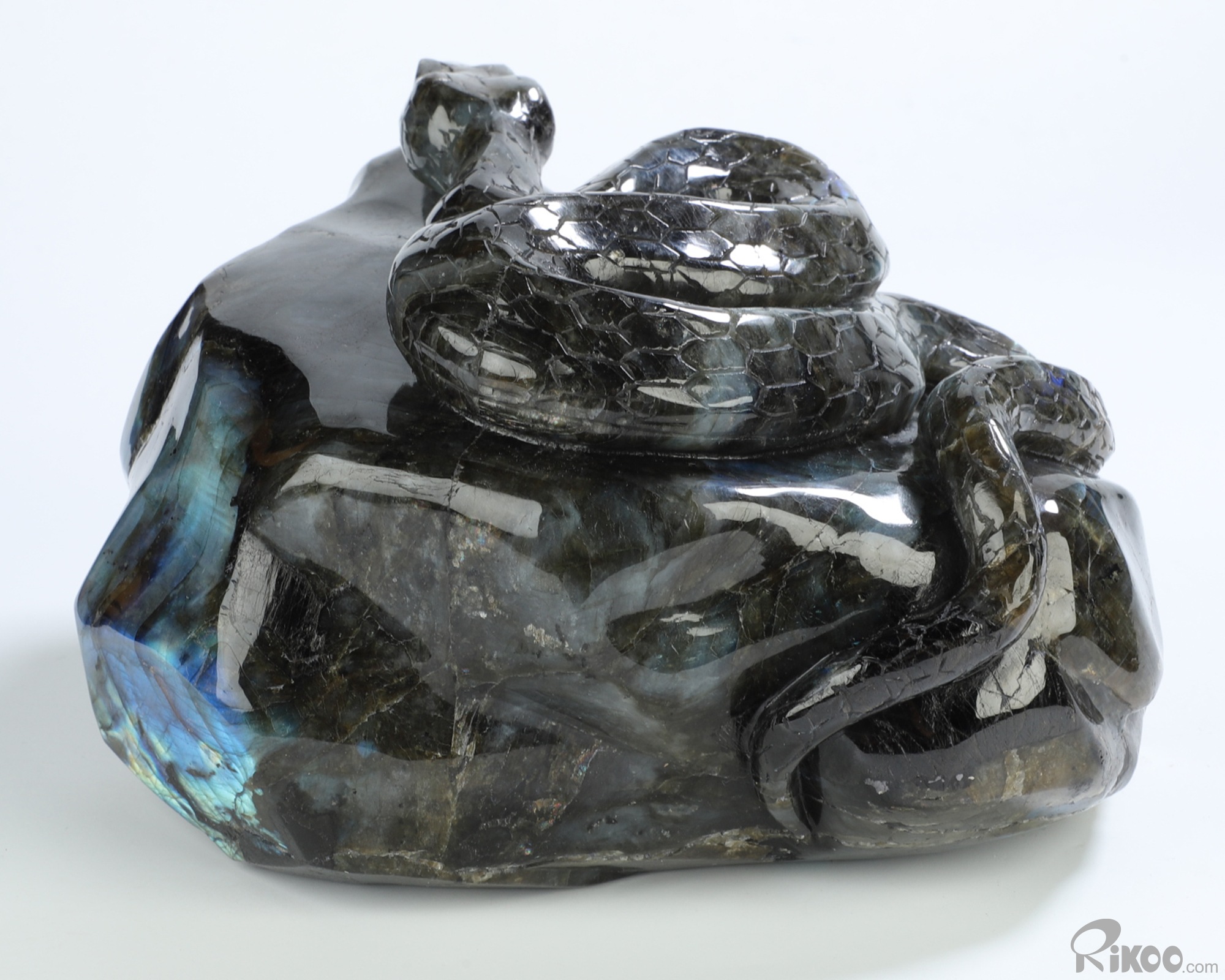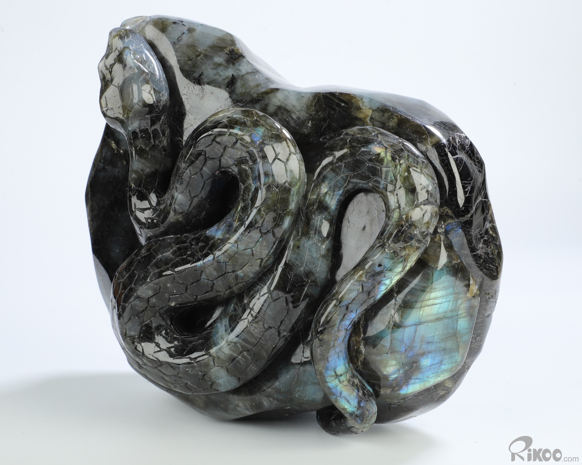6.1" Labradorite Hand Carved Crystal Snake Sculpture, Crystal Healing
