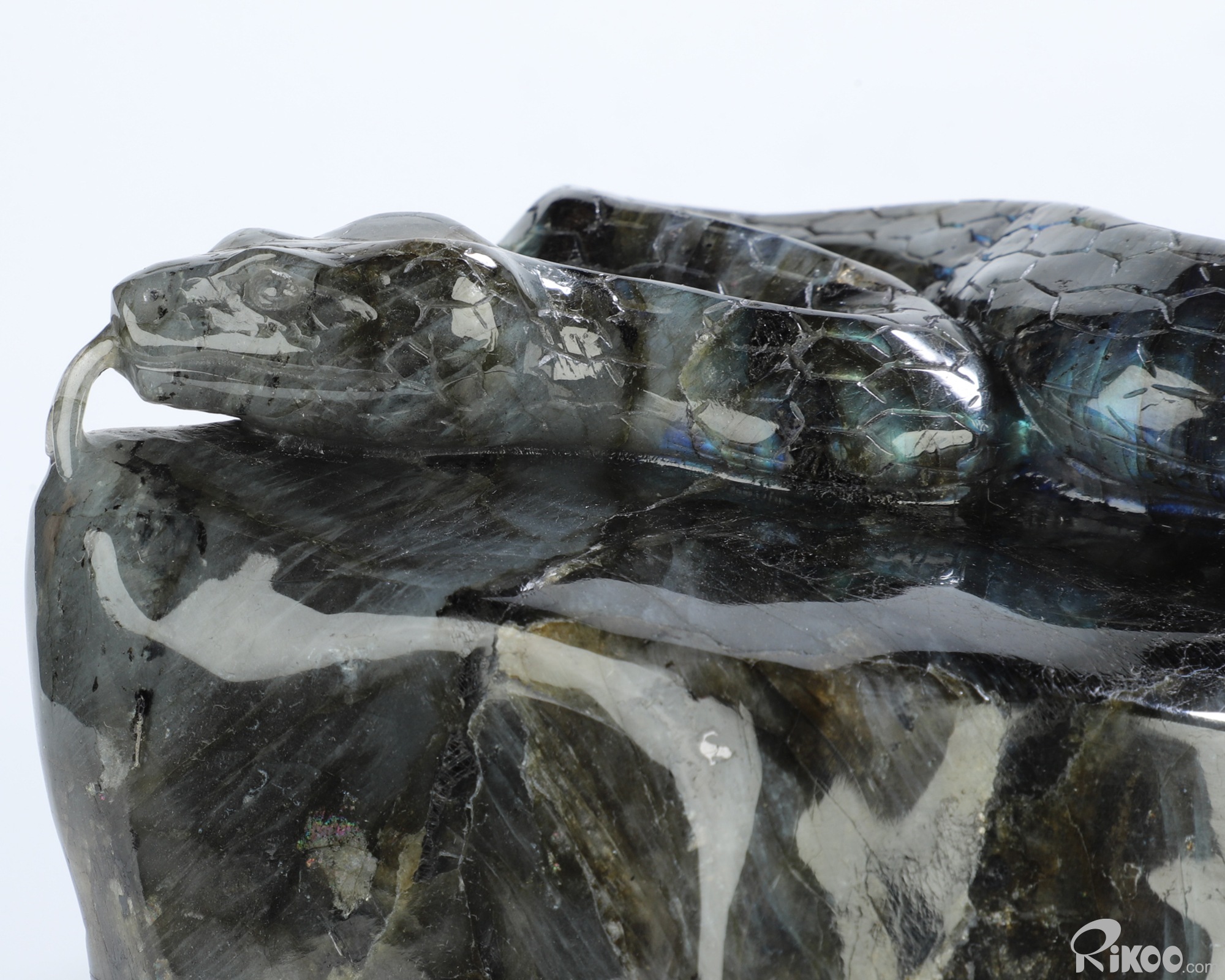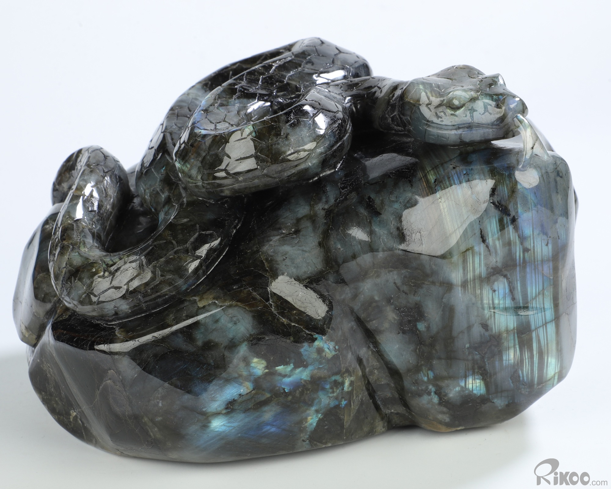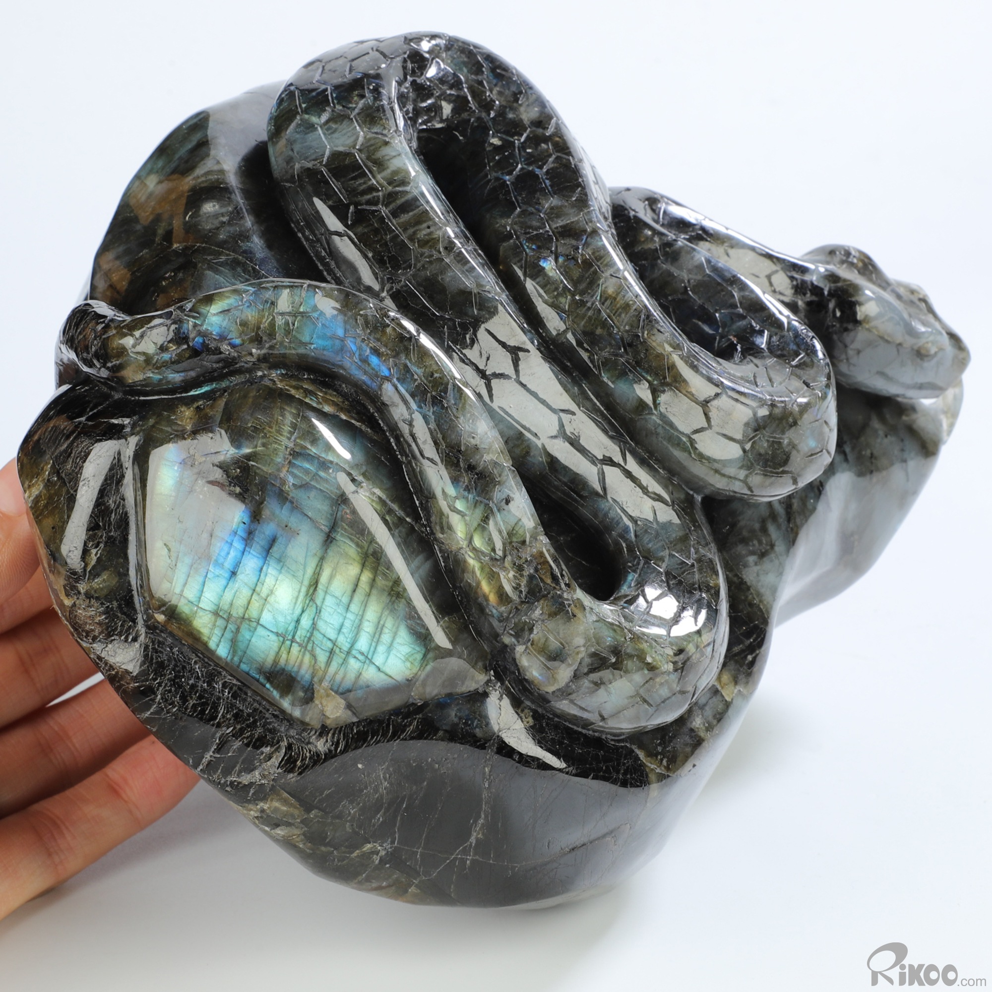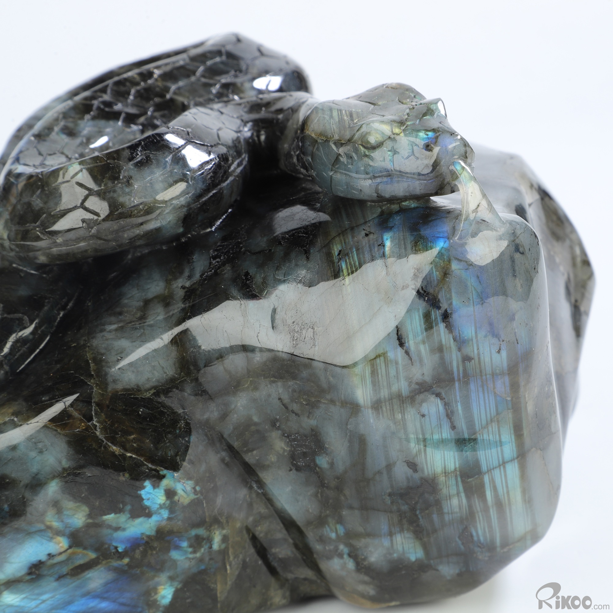 6.1" Labradorite Hand Carved Crystal Snake Sculpture, Crystal Healing