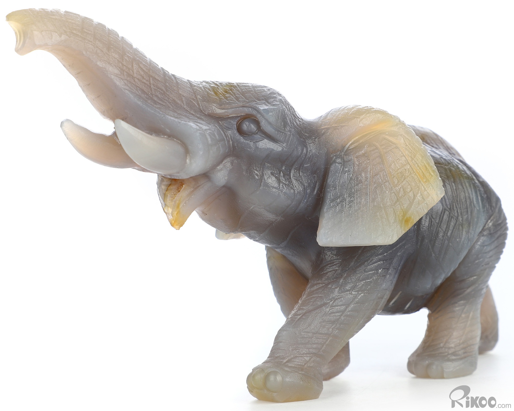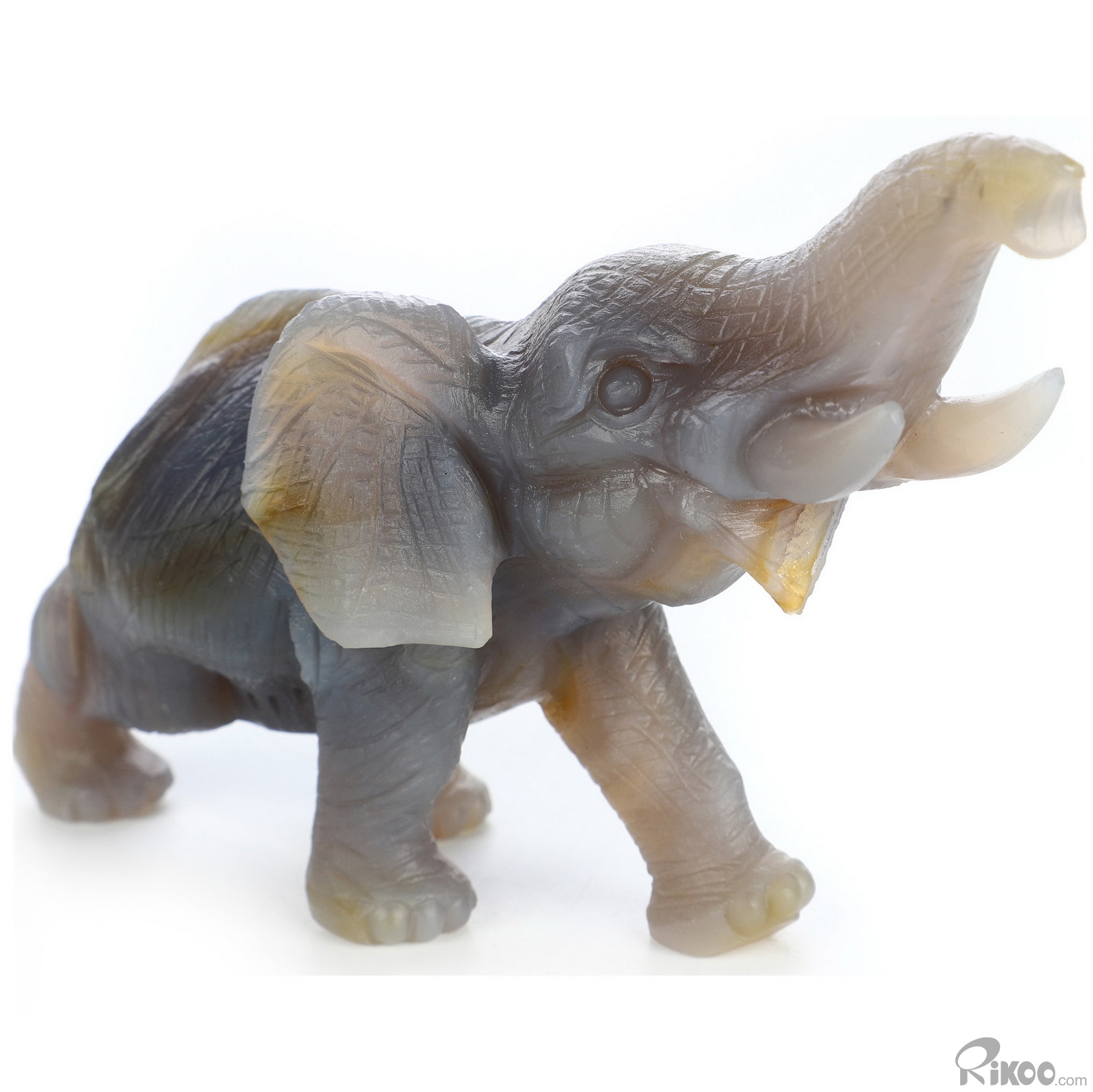 6.1" Premium Brazilian Agate Hand Carved Crystal Elephant Sculpture, Crystal Healing