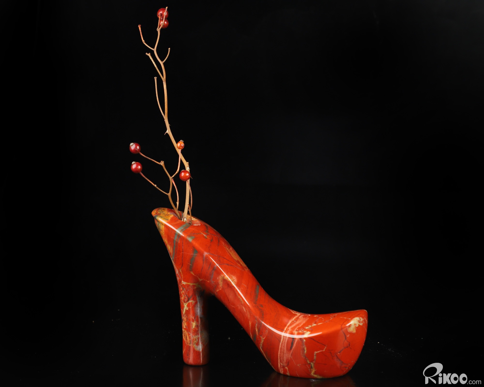6.1" Red Jasper Hand Carved Crystal Heel Vase Sculpture, Crystal Healing