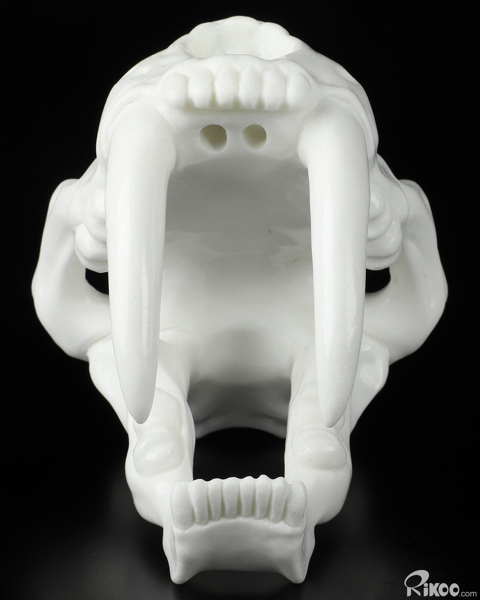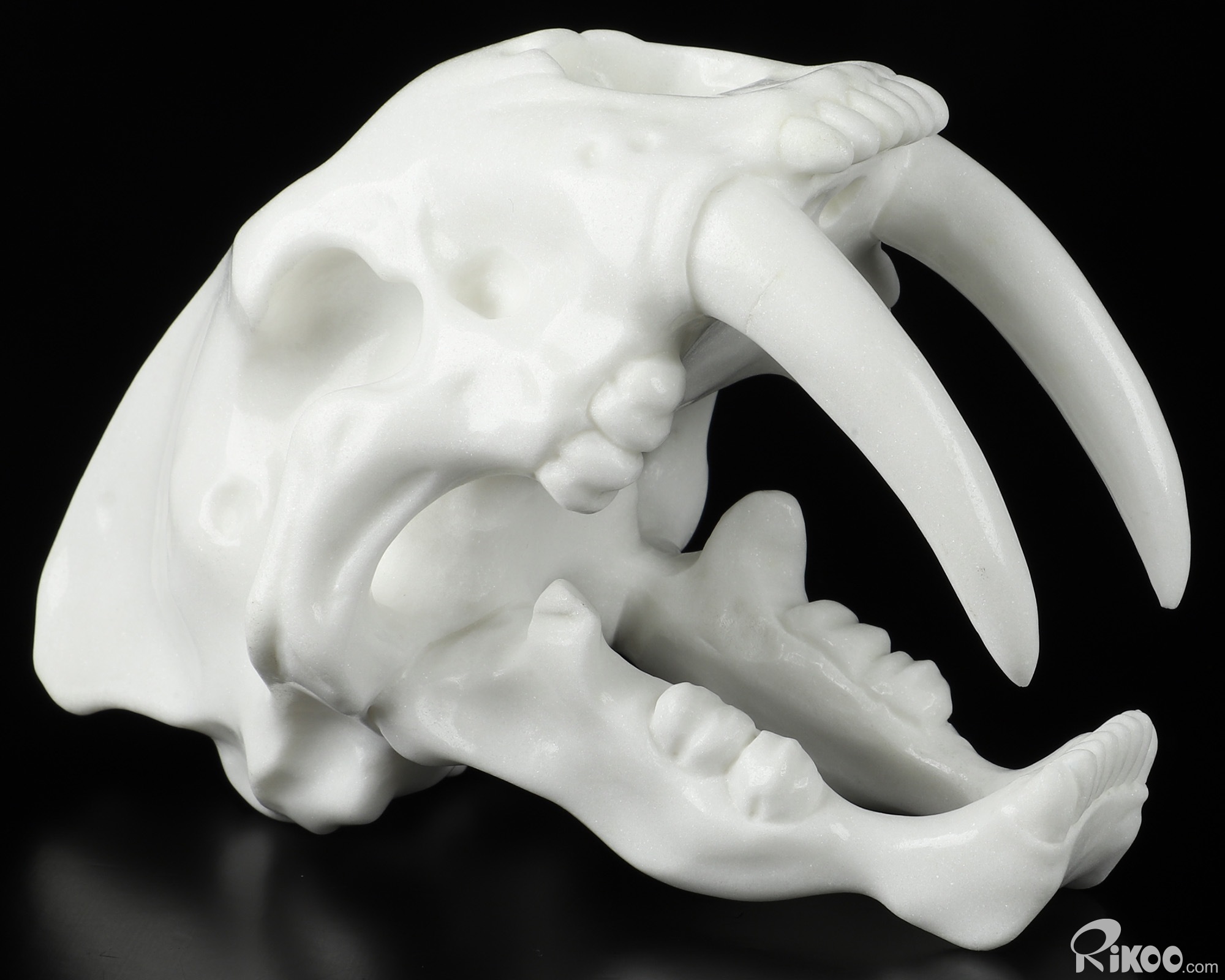 6.1" White Jade Carved Crystal SphereSmilodon SABER-TOOTHED Tiger/Cat Skull, Crystal Healing