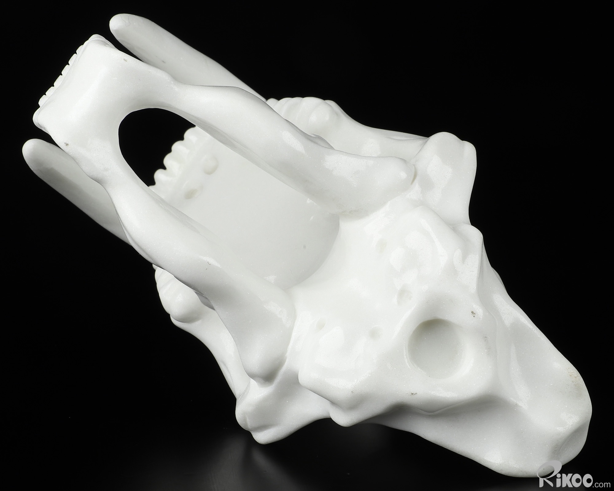 You are looking at a White Jade skull. The skull is 6.1 inches long from front to back.