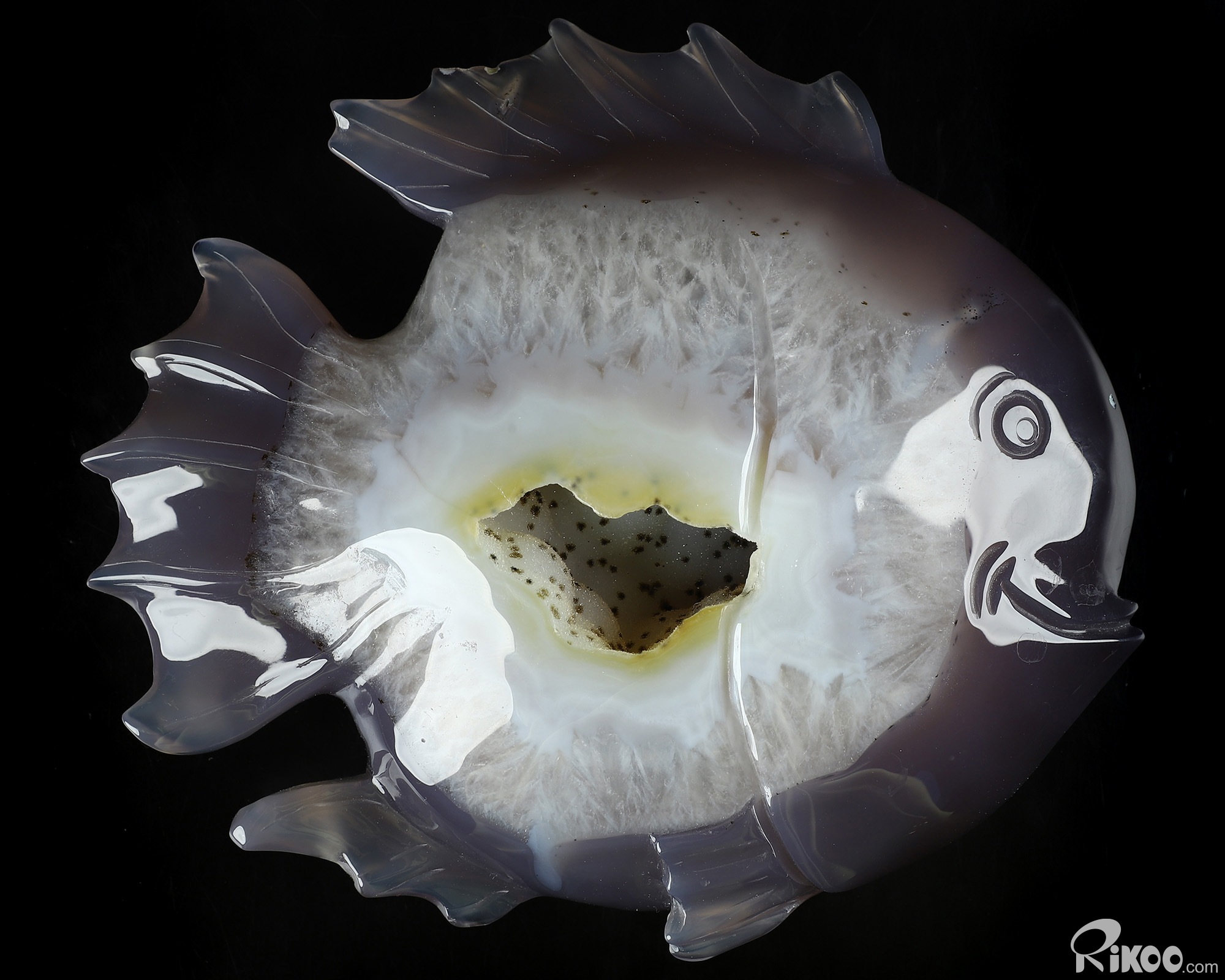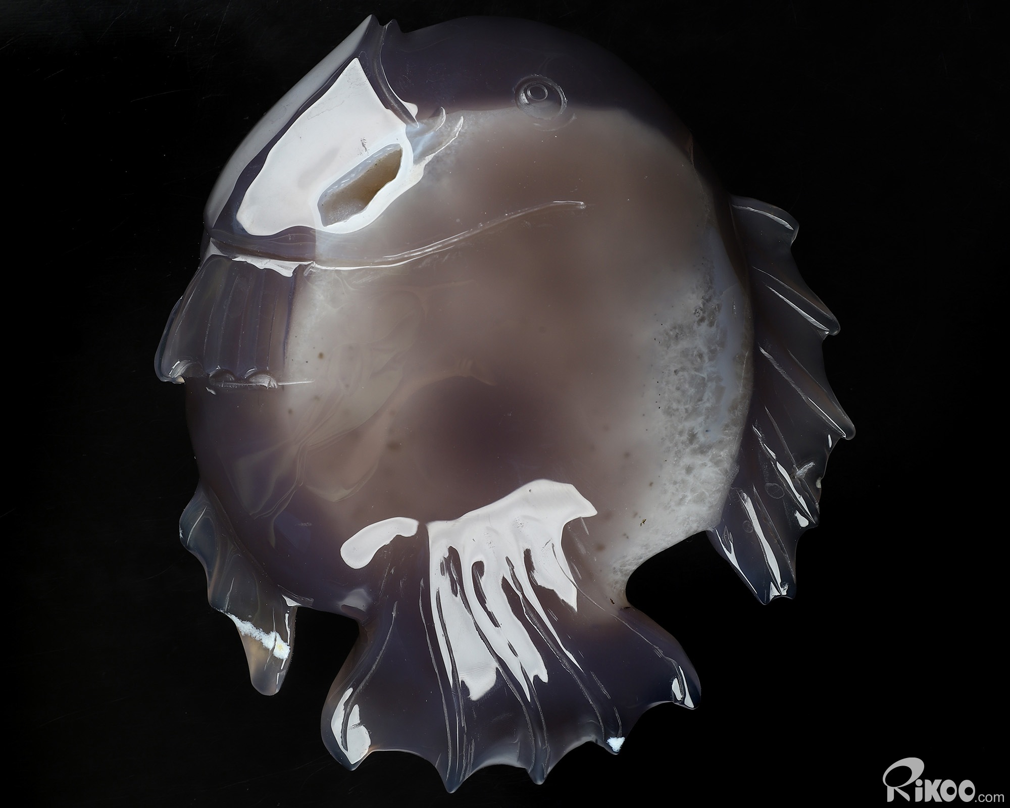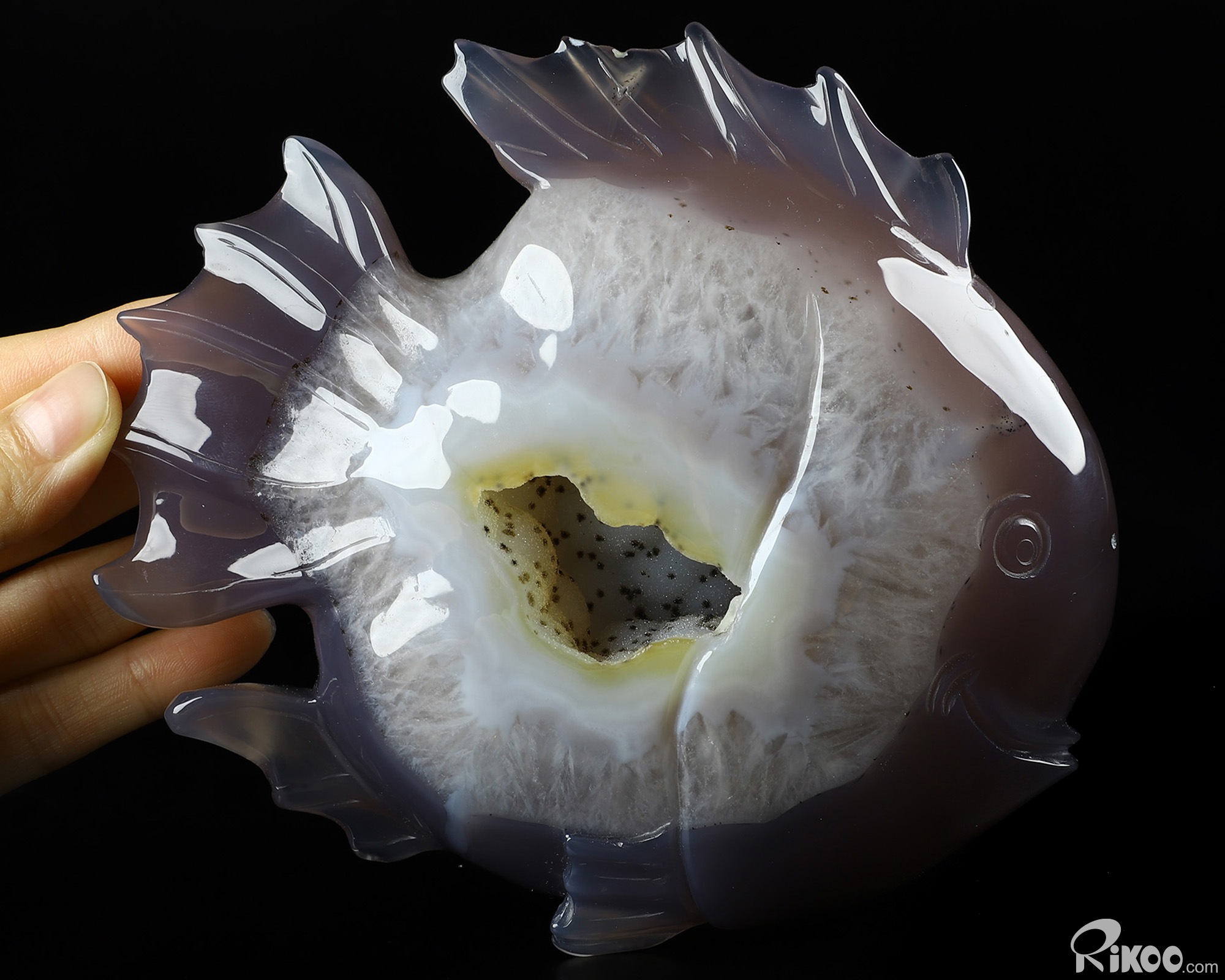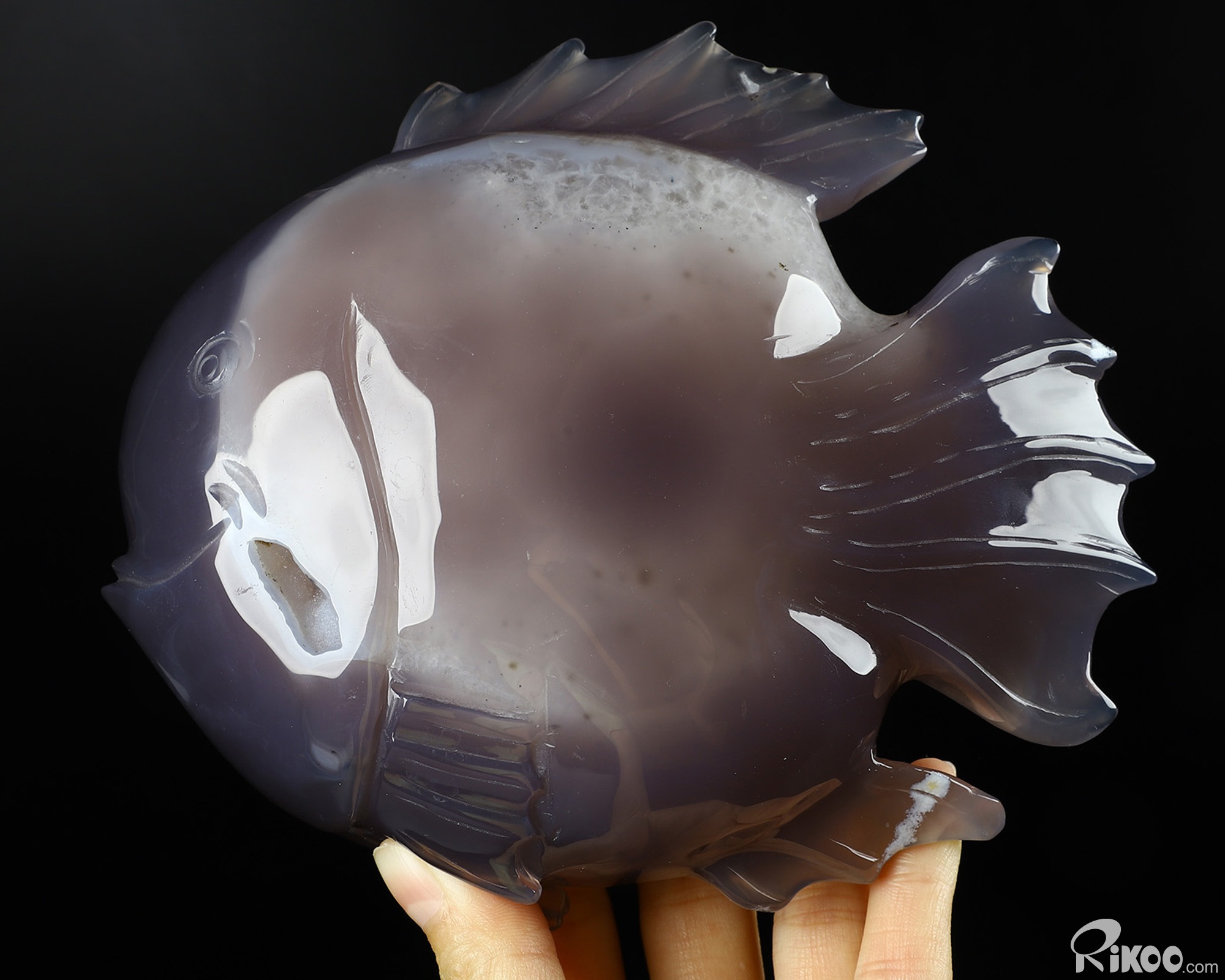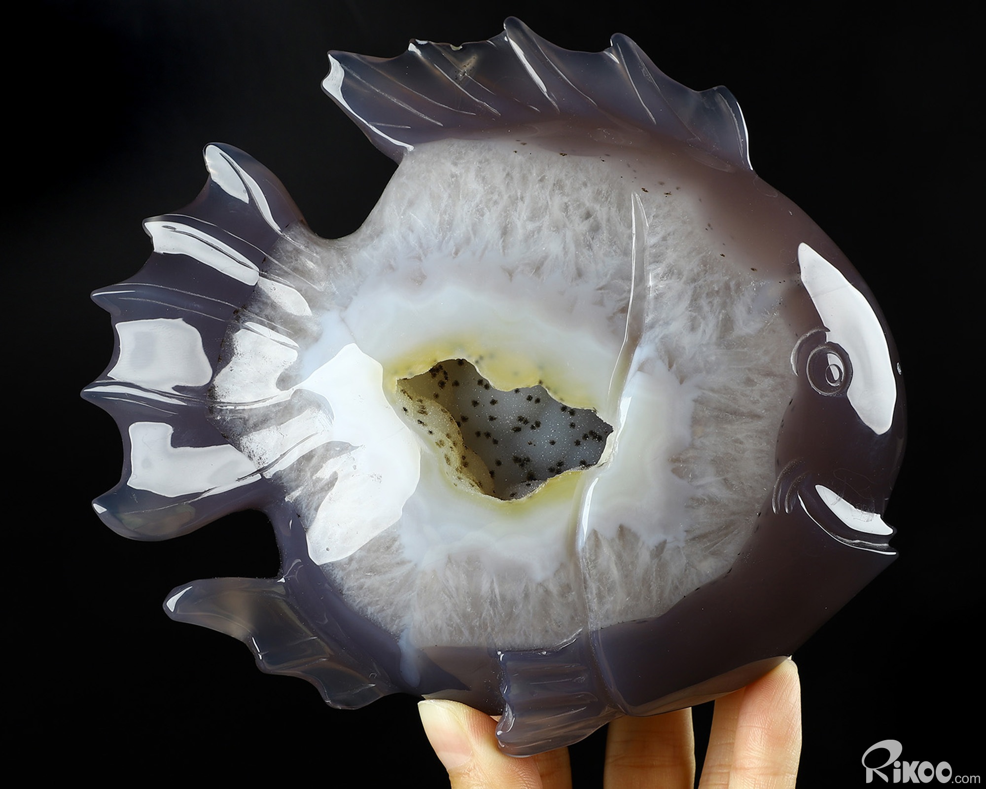 6.2" Agate Geode Hand Carved Crystal Fish Sculpture, Crystal Healing