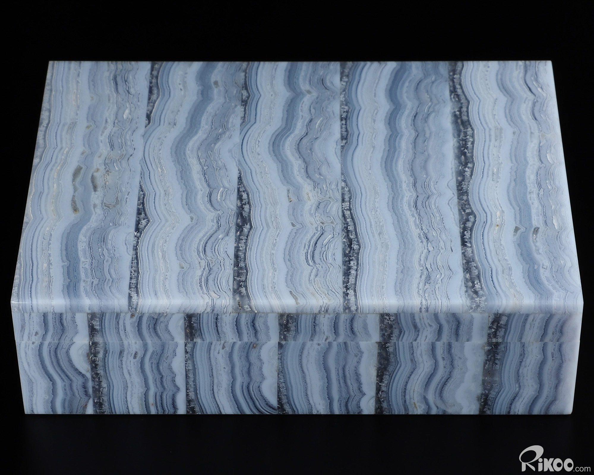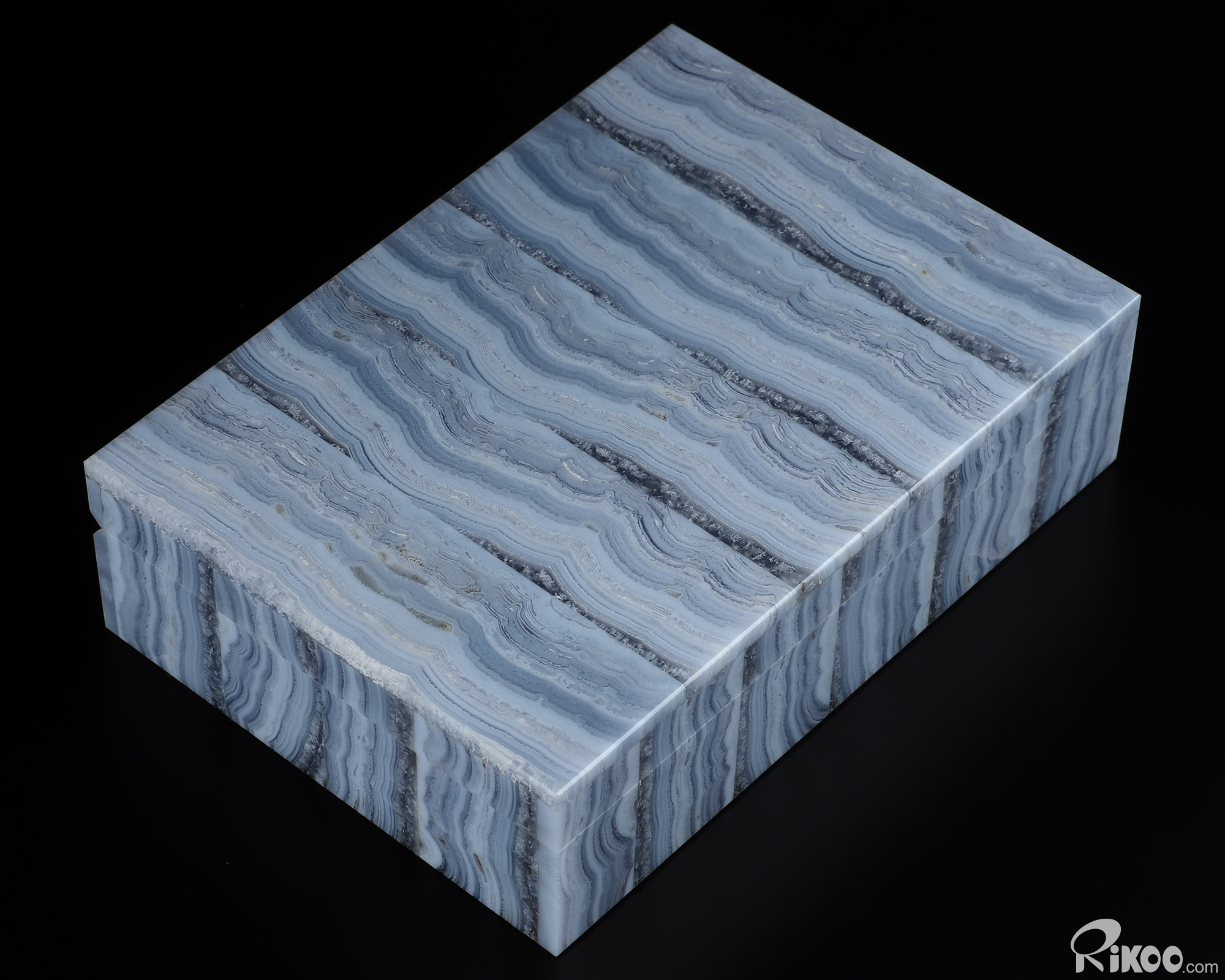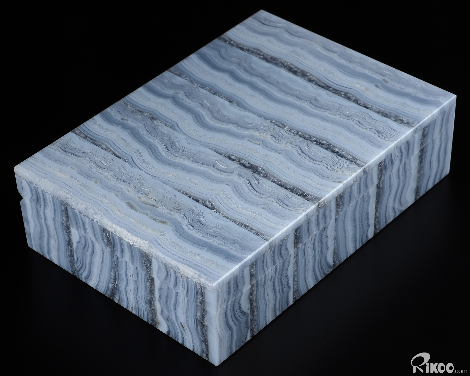 Gemstone 6.2" Blue Lace Agate Carved Crystal Gemstone Box, Crystal Healing