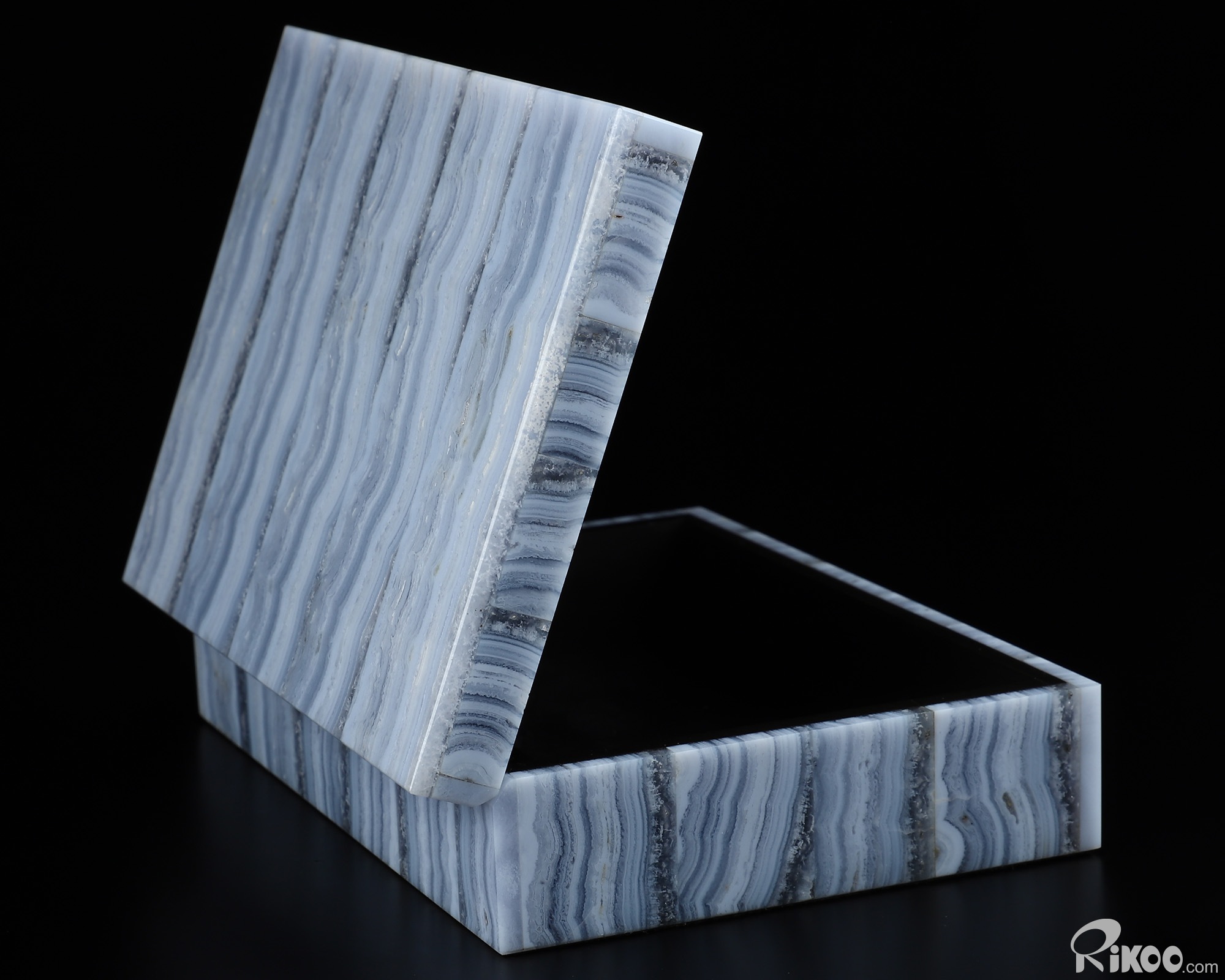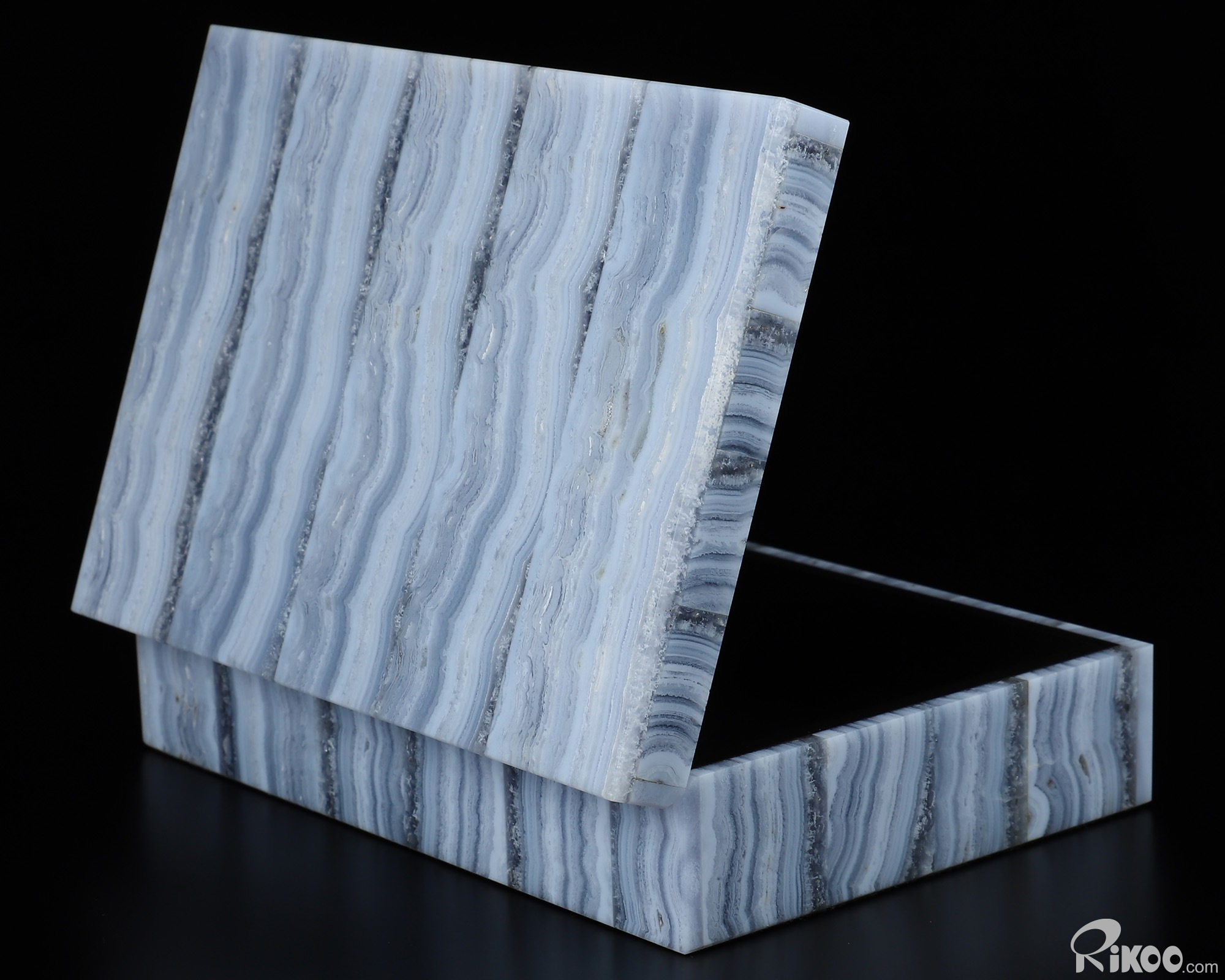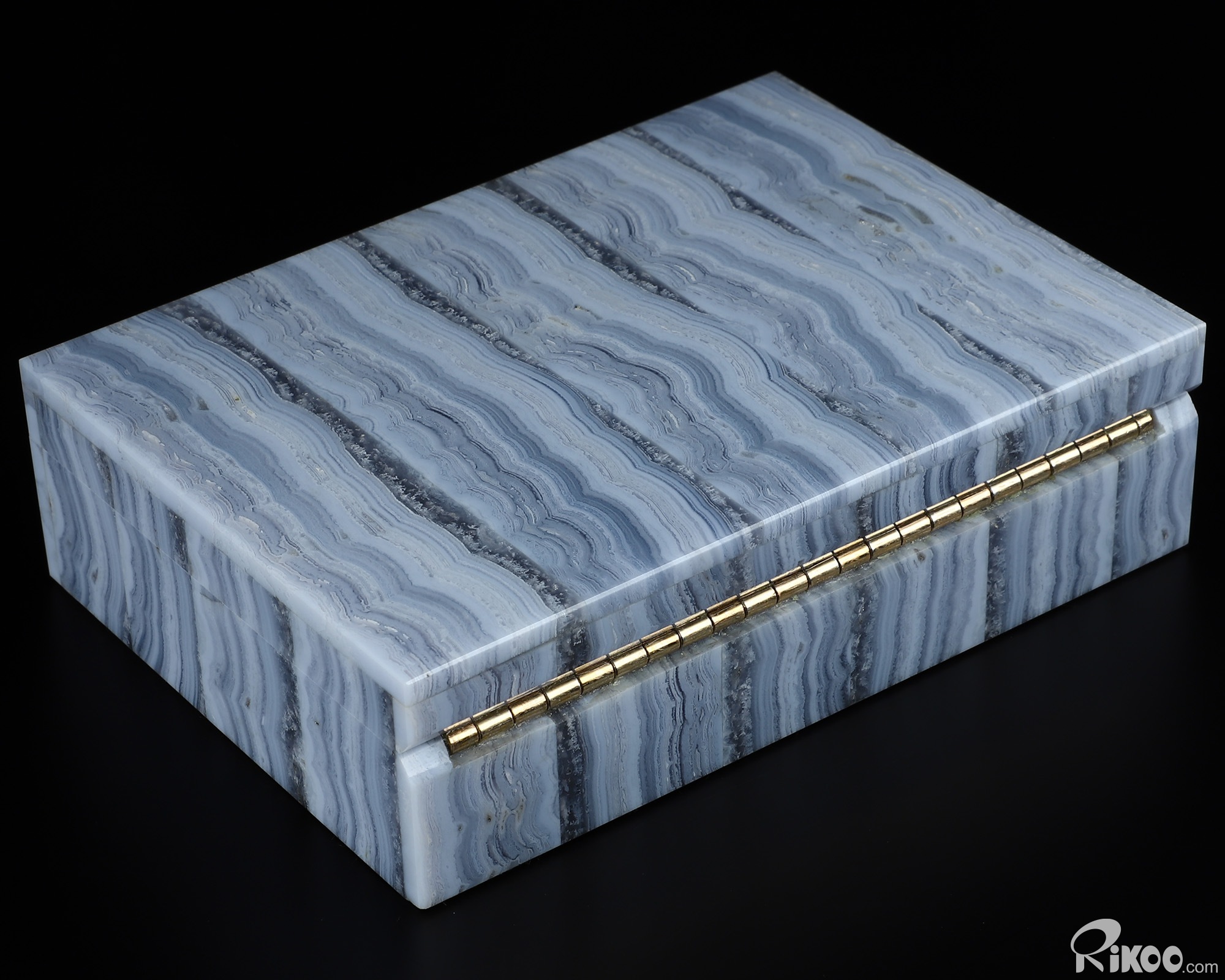 Gemstone 6.2" Blue Lace Agate Carved Crystal Gemstone Box, Crystal Healing