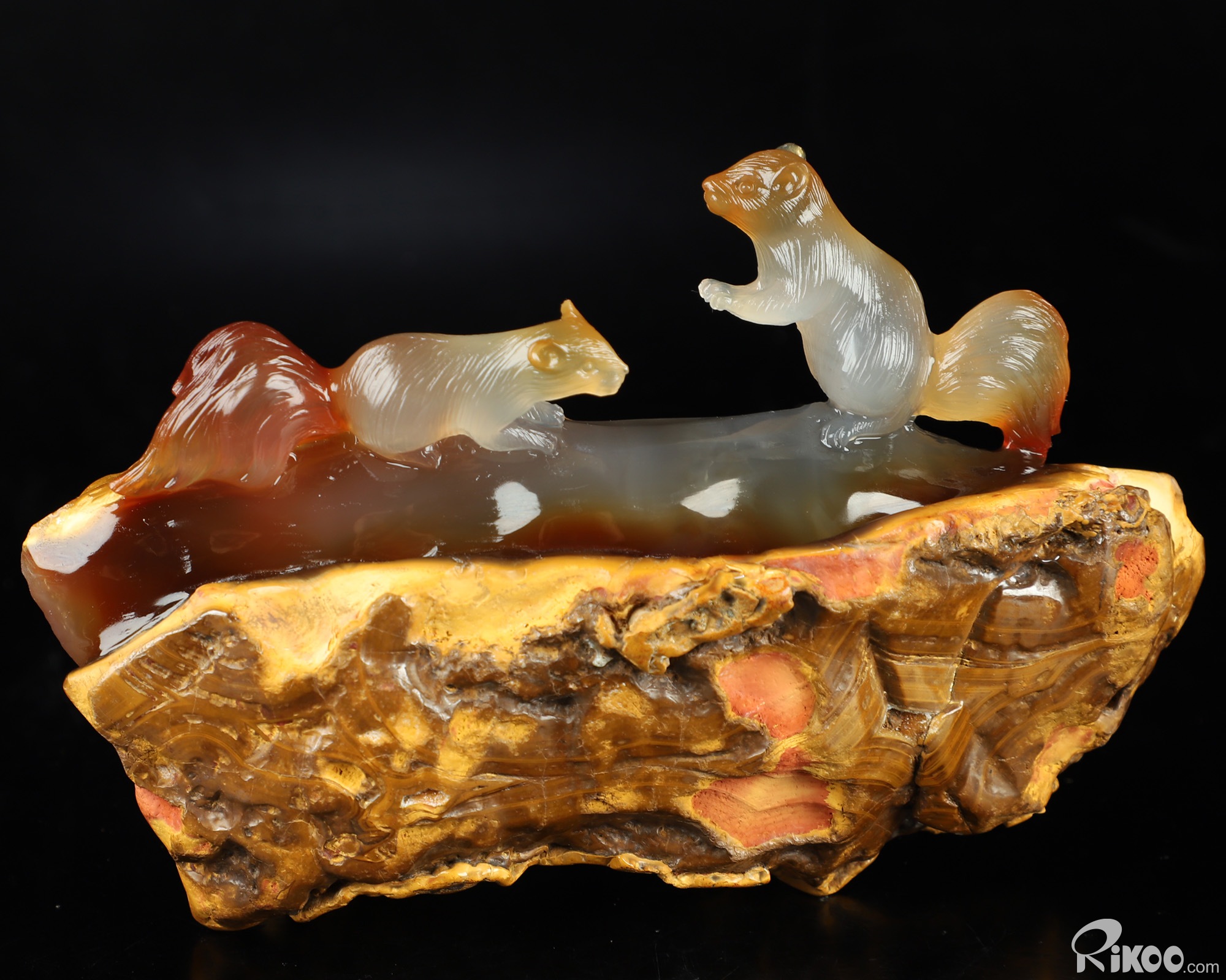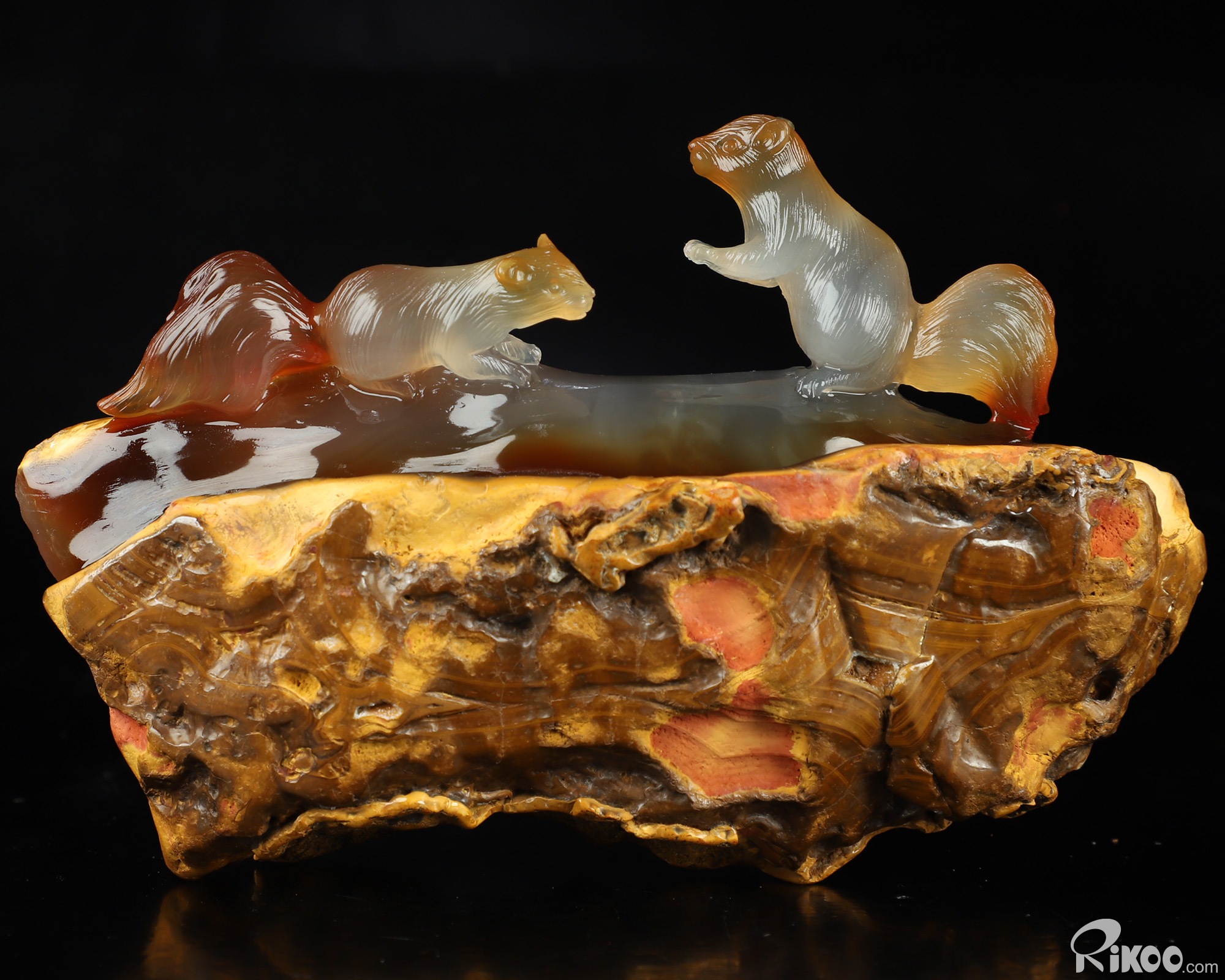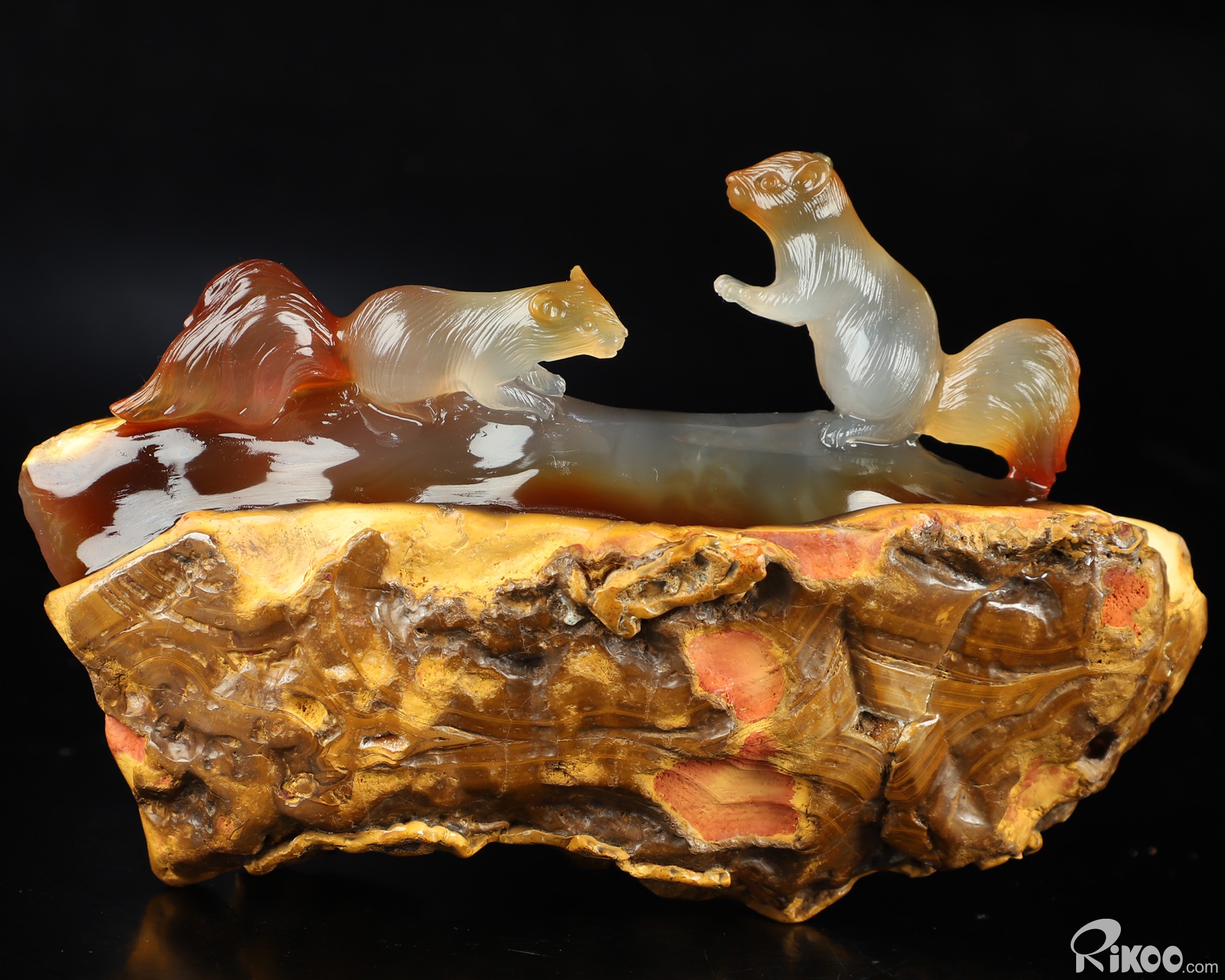 You are looking at a Carnelian Squirrels Sculpture. The sculpture is 6.2 inches long.