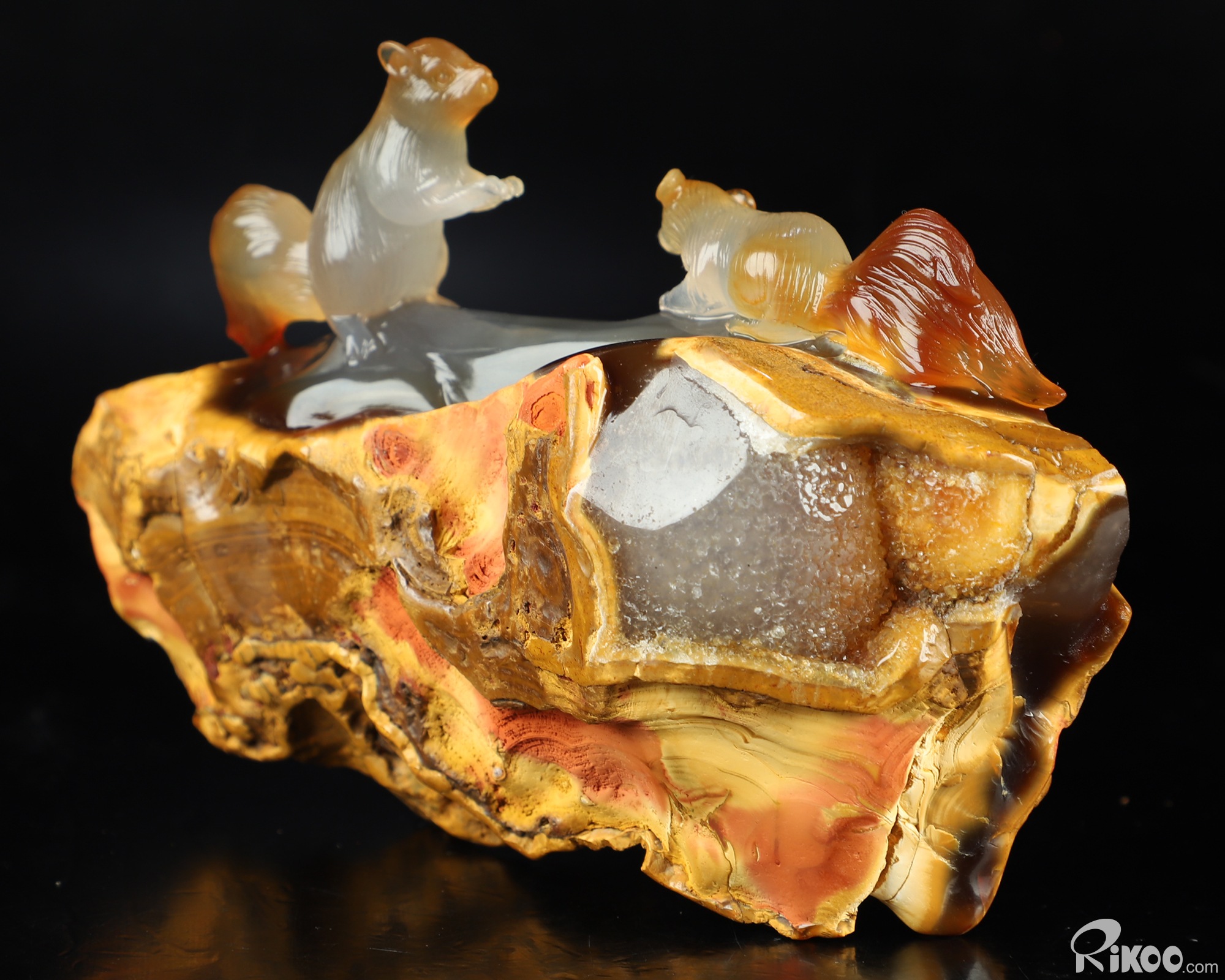 6.2" Carnelian Hand Carved Crystal Squirrels Sculpture, Crystal Healing